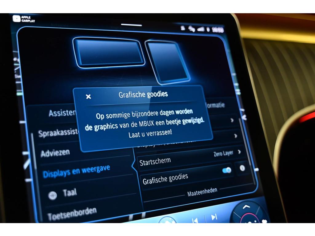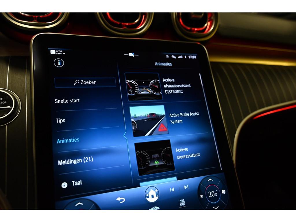 AMG-styling, Aanhanger-assistent, Accident Avoidance System, Achterbank elektrisch neerklapbaar, Achterbank in delen neerklapbaar, Achteruitrijcamera, Airbag(s) hoofd, Airbag(s) hoofd achter, Airbag(s) hoofd voor, Airbag(s) side voor, Airbag bestuurder, Airbag passagier, Airco automatisch, Airco separaat achter, Alarmsysteem, Aluminium delen exterieur, Anti Blokkeer Systeem (ABS), Audio installatie, Automatische snelheidsbegrenzing, Bandenspanningscontrolesysteem, Binnenspiegel automatisch dimmend, Bots waarschuwing systeem, Brake Assist System, Buitenspiegel(s) automatisch dimmend, Buitenspiegels elektrisch inklapbaar, Buitenspiegels elektrisch met geheugen, Buitenspiegels elektrisch verstelbaar, Buitenspiegels met verlichting, Buitenspiegels verwarmbaar, Centrale deurvergrendeling met afstandsbediening, Connected services, Cruise control, Cruise control adaptief met Stop&Go, DAB-ontvanger, Dakrails, Dodehoek detector, Electronic Stability Program (ESP), Elektrisch bedienbare achterklep, Elektrische ramen achter, Elektrische ramen voor, Elektrisch glazen panorama-dak, Elektrisch verstelb. passagiersstoel met geheugen, Elektrisch verstelbare bestuurdersstoel met geheugen, Elektrisch verstelbare voorstoel(en), Extra getint glas, Grootlicht-assistent, Head-up display, Houtafwerking interieur, Interieur voorverwarmingsinstallatie, Keyless entry, Keyless start, LED dagrijverlichting, Lederen bekleding, Lendesteunen (verstelbaar), Luxe lederen bekleding, Metallic lak, Multimedia-voorbereiding, Navigatie-systeem full map + hard disk, Oplaadmogelijkheid, Parkeer-assistent, Parkeersensor achter, Parkeersensor voor, Premium Plus-pakket, Premium kleur, Radio, Regensensor, Rijassistentiepakket Plus, Rijstrooksensor met correctie, Rondomzicht camera, Ruitensproeiers verwarmbaar, Speciale kleur, Sportonderstel, Sportstoelen, Sportstuur, Spraakbediening, Startblokkering, Stoel ventilatie voor, Stof/kunstlederen bekleding, Stuurhulp, Stuurwiel multifunctioneel, Stuurwiel verwarmd, Telefoonintegratie premium, Trekhaak, Verkeersbord detectie, Verlaagde carrosserie, Verwarmde voorstoelen, Volledig digitaal instrumentenpaneel, Winter-pack