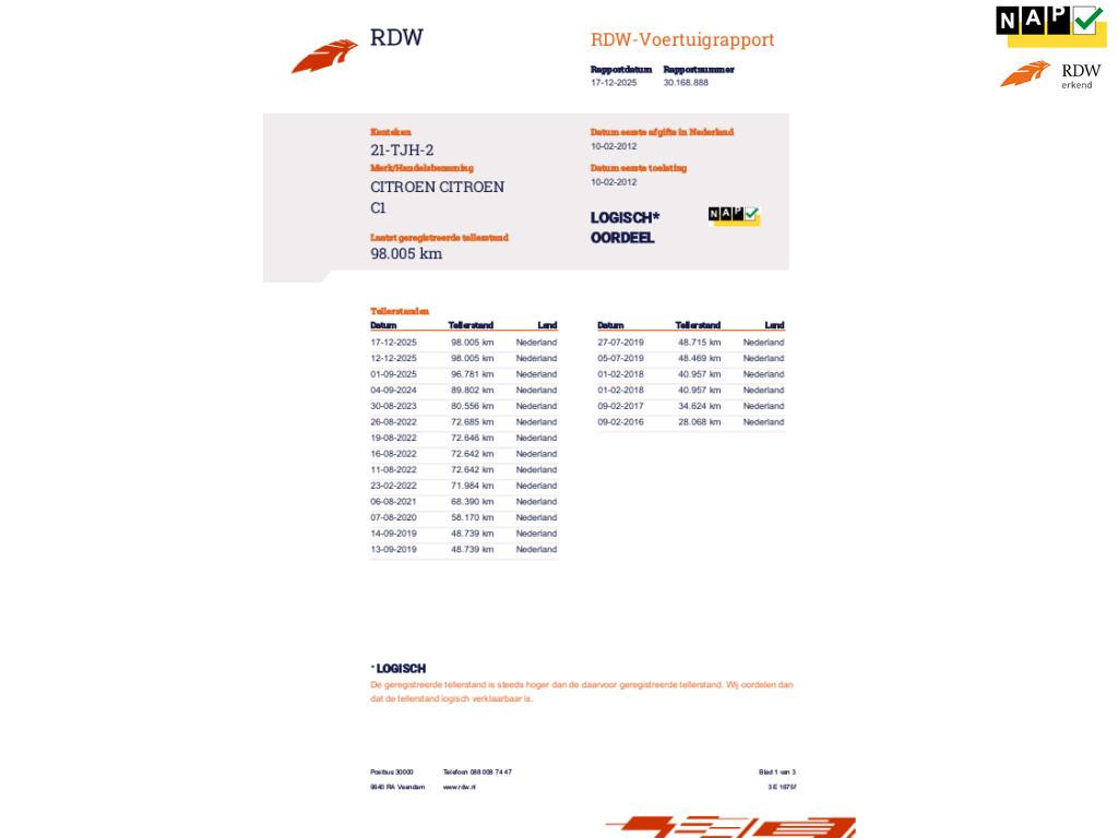 Mileage 98.005 NAP checked