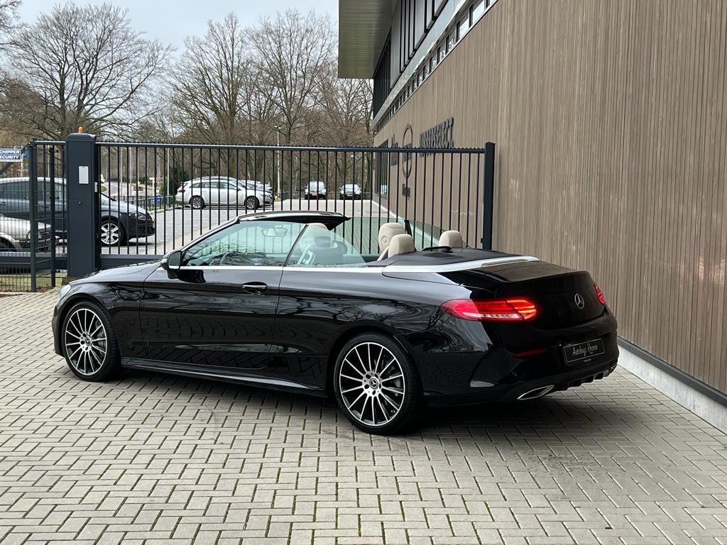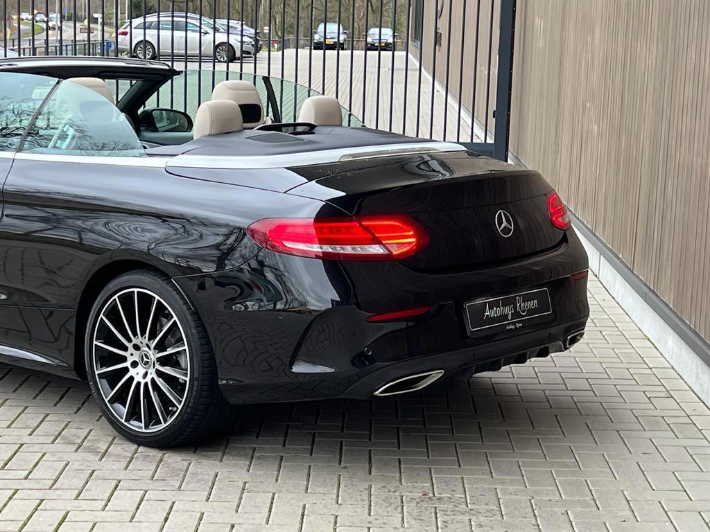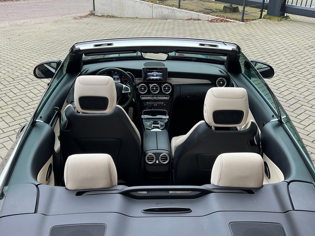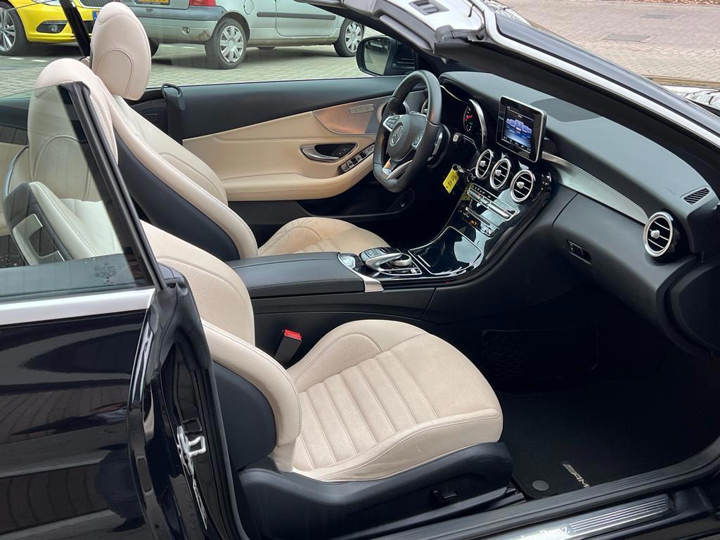 "Lichtmetalen velgen 18""", AMG-styling, AMG Line Exterieur, AMG Line Interieur, Accident Avoidance System, Achterbank in delen neerklapbaar, Achteruitrijcamera, Airbag(s) hoofd achter, Airbag(s) hoofd voor, Airbag(s) knie, Airbag(s) side voor, Airbag bestuurder, Airbag passagier, Alarm klasse 3, Aluminium interieur afwerking, Anti Blokkeer Systeem, Anti Blokkeer Systeem (ABS), Anti Slip Control, Armsteun voor, Audioinstallatie met CD-speler, Autotelefoonvoorbereiding met Bluetooth, Bandenspanningscontrolesysteem, Binnenspiegel automatisch dimmend, Bots herkenning en activatie, Brake Assist System, Buitenspiegel(s) automatisch dimmend, Buitenspiegels elektrisch inklapbaar, Buitenspiegels elektrisch verstelbaar, Buitenspiegels verwarmbaar, Cabrio-pakket, Centrale deurvergrendeling met afstandsbediening, Chroom delen exterieur, Connected services, Cruise control, Dimlichten automatisch, Dodehoek detector, Electronic Brake Distribution, Electronic Stability Program, Electronic Stability Program (ESP), Electronic climate controle, Elektrisch bedienbare kap, Elektrische ramen achter, Elektrische ramen voor, Hill hold-functie, Kruisend verkeer detectie, LED achterlichten, LED dagrijverlichting, LED koplampen, Lederen bekleding, Lederen stuurwiel, Metallic lak, Multimedia-voorbereiding, Navigatie-systeem full map, Nekverwarming, Parkeer-assistent, Parkeersensor voor en achter, Regensensor, Rijassistentiepakket, Rijstrooksensor met correctie, Schakelmogelijkheid aan stuurwiel, Sportstuur, Start/stop systeem, Stuur verstelbaar, Stuurwiel multifunctioneel, Tractie Controle Systeem (TCS), Vermoeidheids herkenning, Voorstoelen verwarmd, Warmtewerend glas, Windscherm