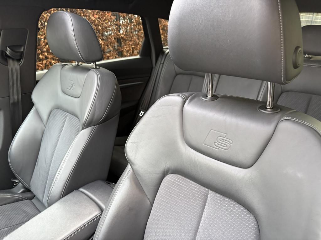 Achterbank in delen neerklapbaar, Achteruitrijcamera, Achteruitrijcamera (KA2), Adaptief demping systeem, Airbag(s) hoofd achter, Airbag(s) hoofd voor, Airbag(s) side voor, Airbag bestuurder, Airbag passagier, Alarm klasse 1(startblokkering), Alarmsysteem, Aluminium delen exterieur, Aluminium interieur afwerking, Anti-diefstal alarmsysteem (7AL), Anti Blokkeer Systeem, Anti doorSlip Regeling, Armsteun voor, Audio installatie, Audi smartphone interface (IU1), Audi sound system (9VD), Autonomous Emergency Braking, Bagage-scheidingsnet, Bagagedek, Bandenspanningscontrolesysteem, Binnenspiegel automatisch dimmend, Bluetooth, Bots herkenning systeem, Brake Assist System, Buitenspiegel(s) automatisch dimmend, Buitenspiegels elektr. met geheugen, Buitenspiegels elektrisch inklapbaar, Buitenspiegels elektrisch verstel- en verwarmbaar, Connected services, Cruise control adaptief met stop&go, Dab, Dakrails, Dakreling zwart (3S2), Decoratielijsten, mat geborsteld donker aluminium (5TG), Dimlichten automatisch, Elektrisch bedienbare achterklep, Elektrisch glazen panorama-dak, Elektrisch verstelb. bestuurdersstoel met geheugen, Elektrisch verstelbare passagiersstoel, Elektronisch Stabiliteits Programma, Elektronische remkrachtverdeling, File assistent, Interieurvoorverwarming / -ventilatie (GA1), LED achterlichten, LED dagrijverlichting, LED koplampen, LED koplampen (8G9), Lederen/stof bekleding, Lichtmetalen velgen 5-spaaks 20", Lichtmetalen velgen 5-spaaks 21", Luchtvering, Metaalkleur, Multimedia-voorbereiding, Navigatiesysteem full map, Oplaadmogelijkheid, Parkeersensor achter, Parkeersensor voor, Privacy glas (QL5), Regensensor, Rijstrooksensor met correctie, S Line exterieur, Sportstoelen, Sportstoelen voor (Q1D), Spraakbediening, Stoelverwarming vóór (4A3), Stuurbekrachtiging snelheidsafhankelijk, Stuur verstelbaar, Variabele stuuroverbrenging, Volledig digitaal instrumentenpaneel, Voorstoelen verwarmd, Warmtewerend glas, WiFi, bots waarschuwing systeem, centrale vergrendeling met afstandsbediening, electronic climate control, extra getint glas achter, interieur voorverwarming/(koeling), lendesteun(en) verstelbaar, schakelpaddles, smartphone integratie, stuur leder, stuur multifunctioneel, uitwijk assistent