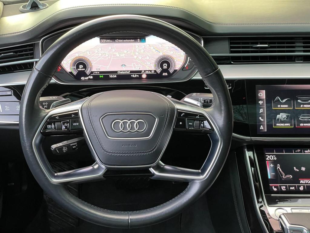 "Lichtmetalen velgen 19""", Accident Avoidance System, Achterbank elektrisch verstelbaar, Achterbank verwarmd, Achterstoelen elektrisch verstelbaar, Achterstoelen verwarmd, Achteruitrij assistent, Achteruitrijcamera, Adaptief Demping Systeem (ADS), Airbag(s) side achter, Airbag(s) side voor, Airbag bestuurder, Airbag passagier, Airco separaat achter, Alarm klasse 3, Anti Blokkeer Systeem (ABS), Armsteun voor, Audio installatie premium, Automatische niveauregeling, Autotelefoonvoorbereiding met Bluetooth, Bandenspanningscontrolesysteem, Binnenspiegel automatisch dimmend, Bots waarschuwing systeem, Buitenspiegel(s) automatisch dimmend, Buitenspiegels elektrisch inklapbaar, Buitenspiegels elektrisch met geheugen, Buitenspiegels elektrisch verstelbaar, Buitenspiegels verwarmbaar, Chroom delen exterieur, Comfortstoel(en), Connected services, Cruise control, Cruise control adaptief met Stop&Go, DAB-ontvanger, Dimlichten automatisch, Dodehoek detector, Draadloze telefoonlader, Electronic climate controle, Elektrisch bedienbare achterklep met sensorsturing, Elektrisch glazen panorama-dak, Elektrisch verstelbare stoel(en) met geheugen, Elektrisch verstelbare stuurkolom met geheugen, Elektrisch zonnescherm achterruit, Extra getint glas, Grootlicht-assistent, Head-up display, Houtafwerking interieur, Interieur voorverwarmingsinstallatie, Keyless entry, Koplampen adaptief, LED achterlichten, LED dagrijverlichting, LED koplampen met laser, Lederen bekleding, Lederen stuurwiel, Lederen versnellingspook, Lendesteunen (verstelbaar), Luchtvering, Luxe lederen bekleding, Luxe lederen interieur, Matrix LED koplampen, Multimedia-voorbereiding, Navigatie-systeem full map + hard disk, Oplaadmogelijkheid, Parkeersensor achter, Parkeersensor voor, Pianolak interieur afwerking, Regensensor, Rijstrooksensor, Rondomzicht camera, Schakelmogelijkheid aan stuurwiel, Sluitbekrachtiging, Spraakbediening, Stoel ventilatie achter, Stoel ventilatie voor, Stuurhulp, Stuurwiel multifunctioneel, Stuurwiel verwarmd, Telefoonintegratie, Verkeersbord detectie, Verwarmde voorstoelen, Volledig digitaal instrumentenpaneel, Warmtewerende voorruit, Warmtewerend glas, WiFi voorbereiding, Zonnescherm zijruiten