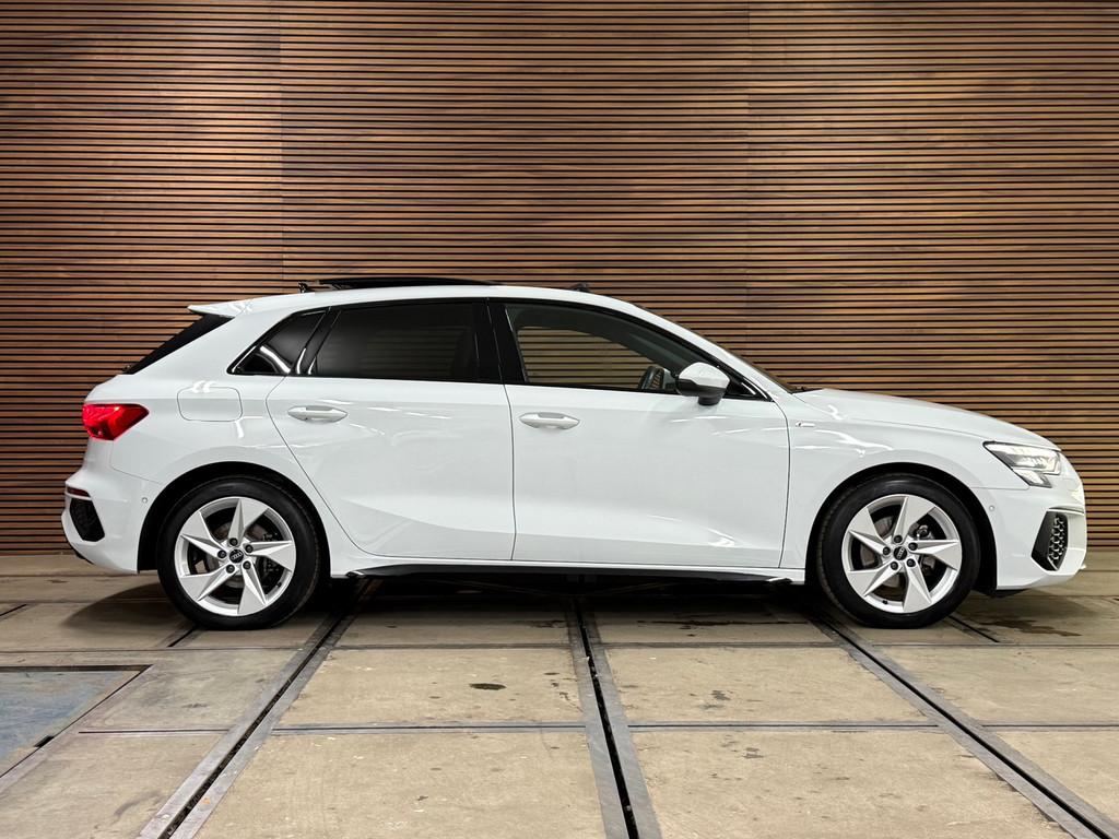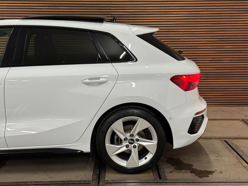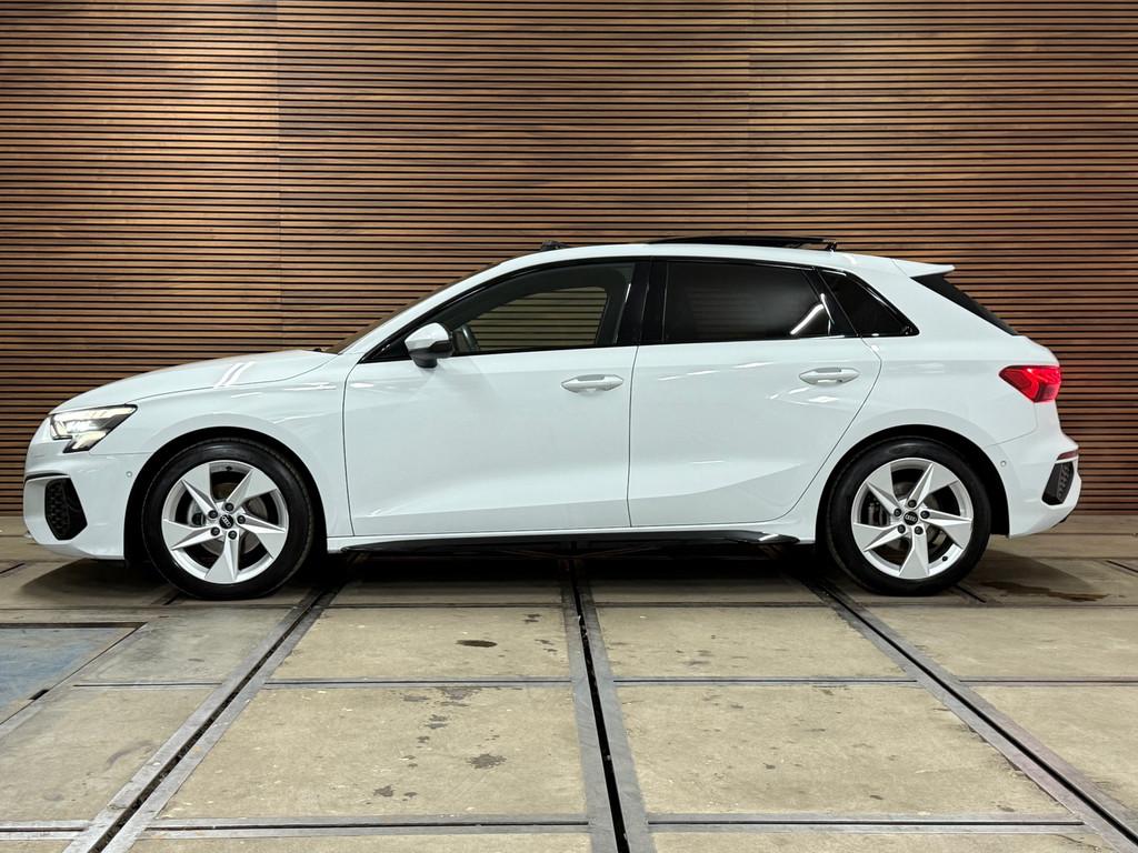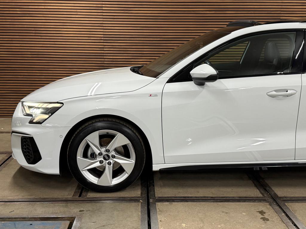 Accident Avoidance System, Achterbank in delen neerklapbaar, Achteruitrijcamera, Airbag(s) hoofd achter, Airbag(s) hoofd voor, Airbag(s) side voor, Airbag bestuurder, Airbag passagier, Aluminium delen exterieur, Aluminium interieur afwerking, Anti Blokkeer Systeem (ABS), Armsteun voor, Audio installatie, Bandenspanningscontrolesysteem, Bestuurdersstoel in hoogte verstelbaar, Brake Assist System, Buitenspiegels elektrisch verstelbaar, Buitenspiegels in carrosseriekleur, Buitenspiegels verwarmbaar, Centrale deurvergrendeling met afstandsbediening, Connected services, Cruise control, Cruise control adaptief met Stop&Go, DAB-ontvanger, Dakspoiler, Dimlichten automatisch, Dodehoek detector, Draadloze telefoonlader, Electronic Brake Distribution (EBD), Electronic Stability Program (ESP), Electronic climate controle, Elektrisch glazen panorama-dak, Elektrisch verstelbare bestuurdersstoel, Keyless entry, Keyless start, Kleur wit, Koplampen adaptief, Koplampreiniging, LED-lichtpakket, LED achterlichten, LED dagrijverlichting, Lederen stuurwiel, Matrix LED koplampen, Multimedia-voorbereiding, Navigatie full map, Parkeersensor achter, Passagiersstoel in hoogte verstelbaar, Radio, Regensensor, Rijstrooksensor, Ruitensproeiers verwarmbaar, S Line exterieur, Sportonderstel, Sportstoelen, Sportstuur, Start/stop systeem, Startblokkering, Stof/kunstlederen bekleding, Stuurbekrachtiging, Stuurhulp, Stuurwiel multifunctioneel, Telefoonintegratie premium, Tractie Controle Systeem (TCS), Uitwijk assistent, Verkeersbord detectie, Verwarmde voorstoelen, Volledig digitaal instrumentenpaneel, Warmtewerende voorruit, WiFi voorbereiding, Wis-/was installatie voor koplampen