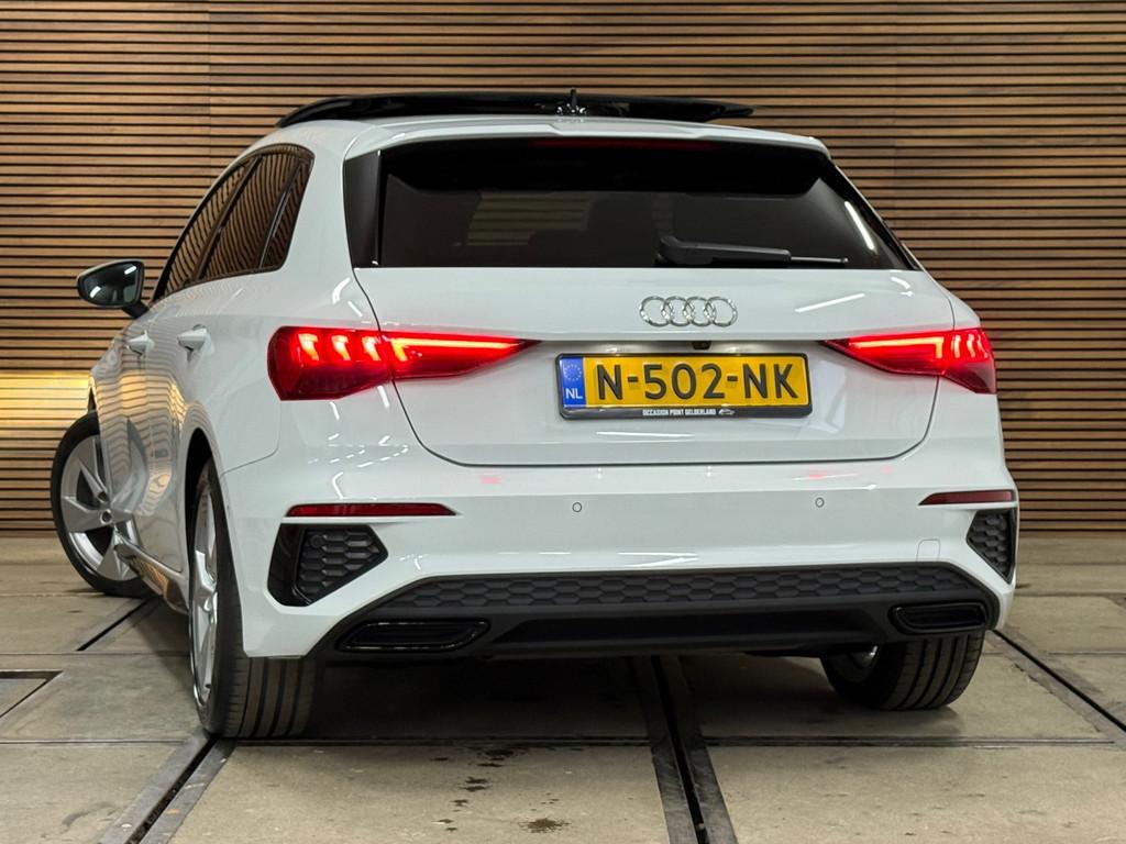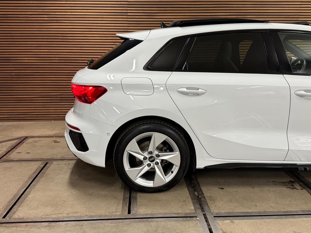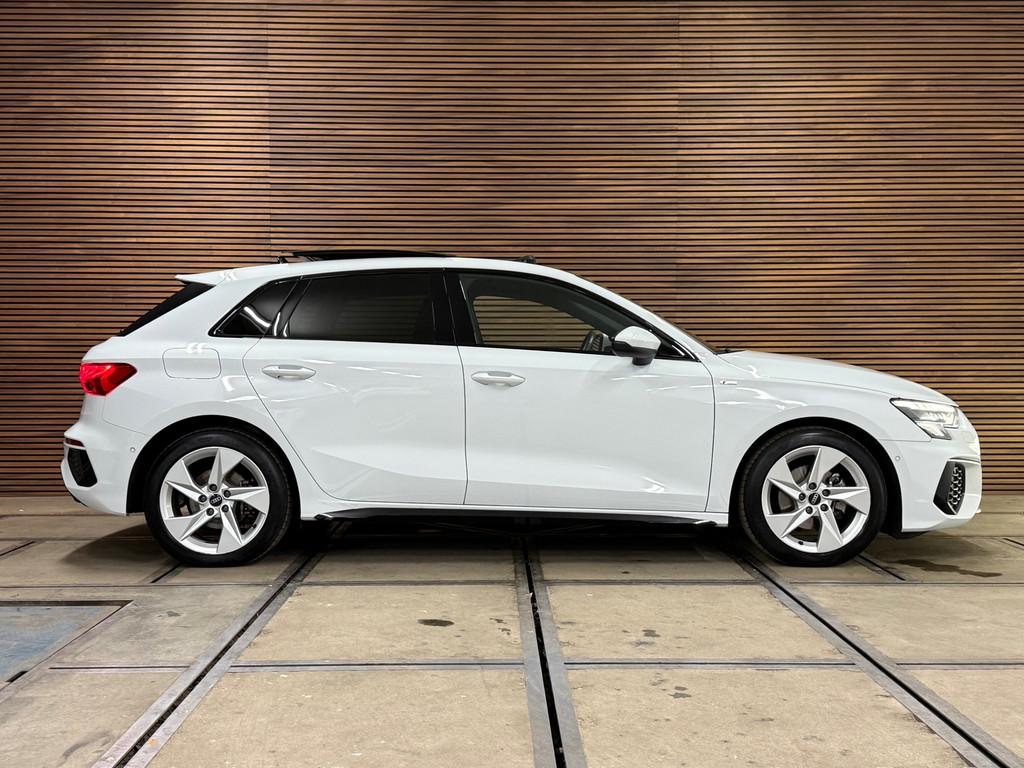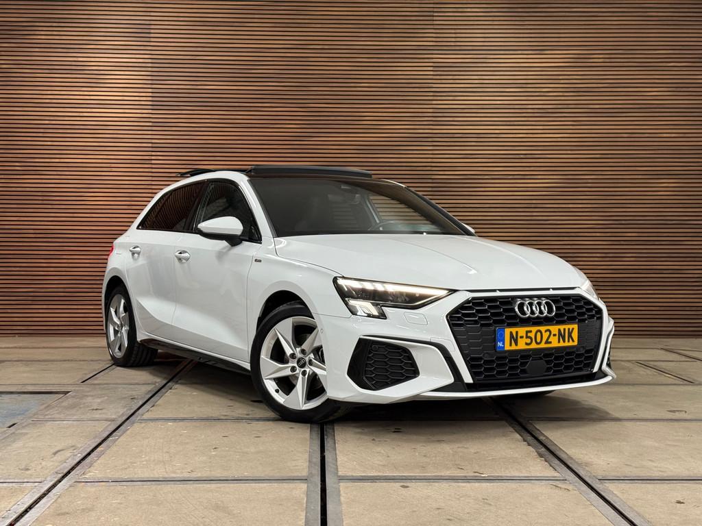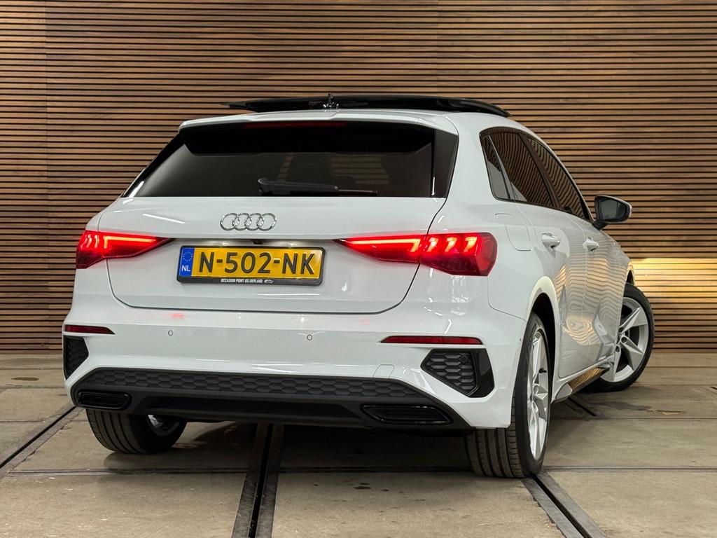 Accident Avoidance System, Achterbank in delen neerklapbaar, Achteruitrijcamera, Airbag(s) hoofd achter, Airbag(s) hoofd voor, Airbag(s) side voor, Airbag bestuurder, Airbag passagier, Aluminium delen exterieur, Aluminium interieur afwerking, Anti Blokkeer Systeem (ABS), Armsteun voor, Audio installatie, Bandenspanningscontrolesysteem, Bestuurdersstoel in hoogte verstelbaar, Brake Assist System, Buitenspiegels elektrisch verstelbaar, Buitenspiegels in carrosseriekleur, Buitenspiegels verwarmbaar, Centrale deurvergrendeling met afstandsbediening, Connected services, Cruise control, Cruise control adaptief met Stop&Go, DAB-ontvanger, Dakspoiler, Dimlichten automatisch, Dodehoek detector, Draadloze telefoonlader, Electronic Brake Distribution (EBD), Electronic Stability Program (ESP), Electronic climate controle, Elektrisch glazen panorama-dak, Elektrisch verstelbare bestuurdersstoel, Keyless entry, Keyless start, Kleur wit, Koplampen adaptief, Koplampreiniging, LED-lichtpakket, LED achterlichten, LED dagrijverlichting, Lederen stuurwiel, Matrix LED koplampen, Multimedia-voorbereiding, Navigatie full map, Parkeersensor achter, Passagiersstoel in hoogte verstelbaar, Radio, Regensensor, Rijstrooksensor, Ruitensproeiers verwarmbaar, S Line exterieur, Sportonderstel, Sportstoelen, Sportstuur, Start/stop systeem, Startblokkering, Stof/kunstlederen bekleding, Stuurbekrachtiging, Stuurhulp, Stuurwiel multifunctioneel, Telefoonintegratie premium, Tractie Controle Systeem (TCS), Uitwijk assistent, Verkeersbord detectie, Verwarmde voorstoelen, Volledig digitaal instrumentenpaneel, Warmtewerende voorruit, WiFi voorbereiding, Wis-/was installatie voor koplampen