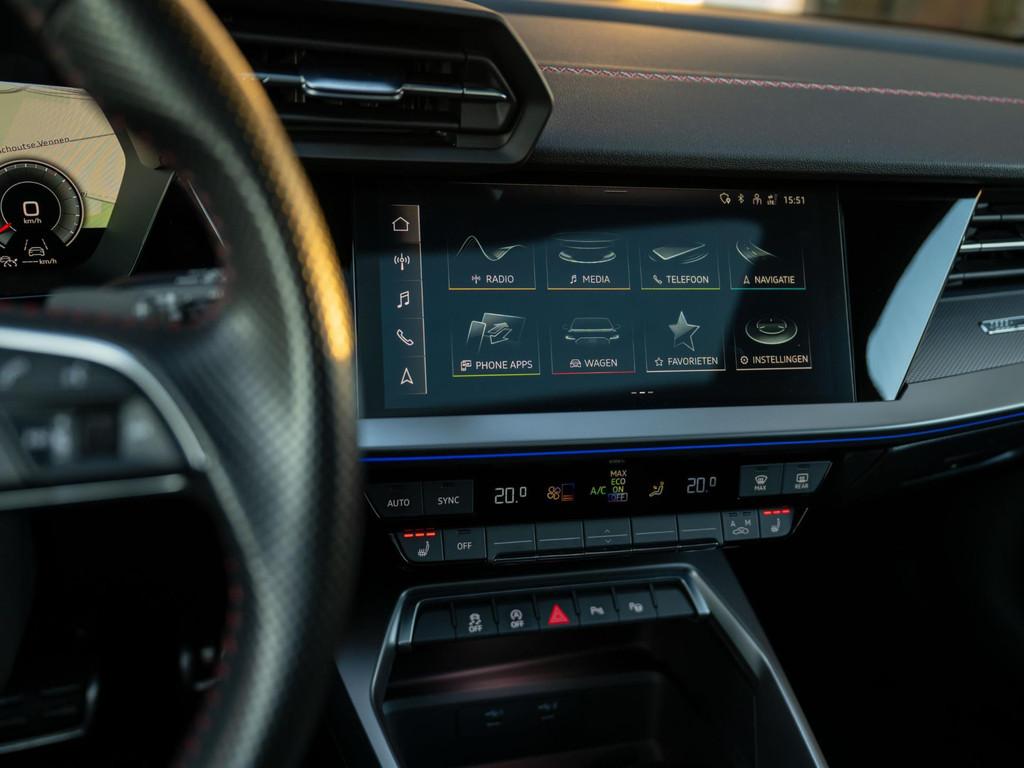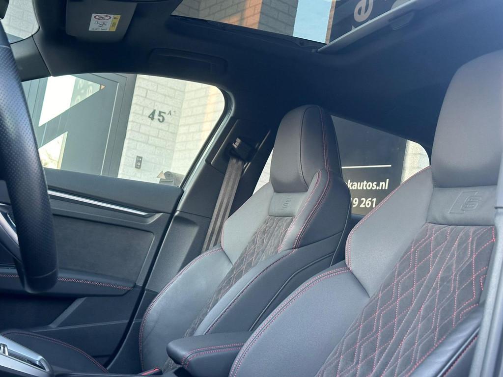 - Stoelbekleding/kussens: Leer / Kunstleer mono.pur 550 Combinatie met Logo-afdruk, Accident Avoidance System, Achterbank in delen neerklapbaar, Achteruitrijcamera, Actieve parkeerassistent, Adaptieve Cruise control ( ACC ), Advanced key Comfort-pakket, Aluminium delen exterieur, Aluminium interieur afwerking, Ambienteverlichtings-pakket (plus), Anti Blokkeer Systeem (ABS), Apple Carplay/Android Auto, Armsteun voor, Audi Connect, Audi Drive Select, Audi Music interface, Audio installatie premium, Bang & Olufsen Sound system, Bestuurdersstoel in hoogte verstelbaar, Binnenspiegel automatisch dimmend, Bluetooth-Audio stream, Bluetooth-interface voor mobiele telefoon, Bots herkenning en activatie, Brake Assist System, Buitenspiegels elektrisch inklapbaar, Buitenspiegels elektrisch verstelbaar, Buitenspiegels verwarmbaar, Centrale deurvergrendeling met afstandsbediening, Connected services, Connectivity Box in de middenconsole incl. Wireless charger, Cruise control adaptief met Stop&Go, DAB-ontvanger, Dakhemel antraciet, Dakspoiler, Dashboard Black met rode stikstels, Digital Dashboard (Instrumentendisplay Digital), Dimlichten automatisch, Dodehoek detector, Draadloze telefoonlader, Electronic Brake Distribution (EBD), Electronic Stability Program (ESP), Electronic climate controle, Elektrisch bedienbare achterklep met sensorsturing, Elektrisch glazen panorama-dak, Elektrisch verstelbare bestuurdersstoel, Elektrisch verstelbare voorstoel(en), Extra getint glas, F1 schakeling, Frontcamera, Half lederen RS sportstoelen met geïntegreerd S-line, ruitenstiksel met logo afdruk, Handsfree bellen, Hill hold-functie, Hulppakket, Intelligent Light systeem LED, Isofix bevestiging voor kinderzitjes, Keyless start, Koplampen adaptief, LED Achterlichten met dynamisch knipperlicht, LED Sfeerverlichting (Verschillende kleuren), LED achterlichten, LED dagrijverlichting, Lederen/alcantara bekleding, Lederen stuurwiel, Lendesteunen (verstelbaar), Lichtmetalen velgen 20 inch ABT, Licht pakket, Matrix LED koplampen, Metallic lak, Multi-functioneel sport stuur S-line, Multimedia-voorbereiding, Navigatie MMI Plus Touch Audi, Navigatie full map, Optiek-pakket Zwart Audi Exclusive, Panoramadak, Parkeer-assistent, Parkeer pakket, Parkeersensor achter, Parkeersensor voor, Passagiersstoel in hoogte verstelbaar, RS sportstoelen met stickels, Regensensor, Rijassistent-systeem Botsingwaarschuwingssysteem, Rijassistent-systeem Emergency-Assist met automatisch noodoproep, Rijassistent-systeem Grootlicht assistent, Rijassistent-systeem Uitwijk-assistent, Rijassistent Audi pre sense front, Rijstrooksensor, Ruitensproeiers verwarmbaar, S-Line Exterieur, S-Line interieur, S-line-sportpakket, Schuif-/kanteldak, Speciale lak Daytonagrijs parelmoereffect, Sport-chassis S-line, Sport modus, Sportonderstel, Sportstoelen, Sportstuur, Spraaksturingssysteem, Start/stop systeem, Stof/kunstlederen bekleding, Stuurhulp, Stuurwiel multifunctioneel, Telefoonintegratie premium, Touchscreen ipad in kleur, Transmissie 7 versnellingen - Dubbelkoppeltransmissie S-tronic, Uitwijk assistent, Variabele stuuroverbrenging, Verkeersbord detectie, Verwarmde voorstoelen, Virtual cockpit plus, Volledig digitaal instrumentenpaneel, Voorstoelen verwarmd, Warmtewerende voorruit, WiFi voorbereiding, Zicht pakket