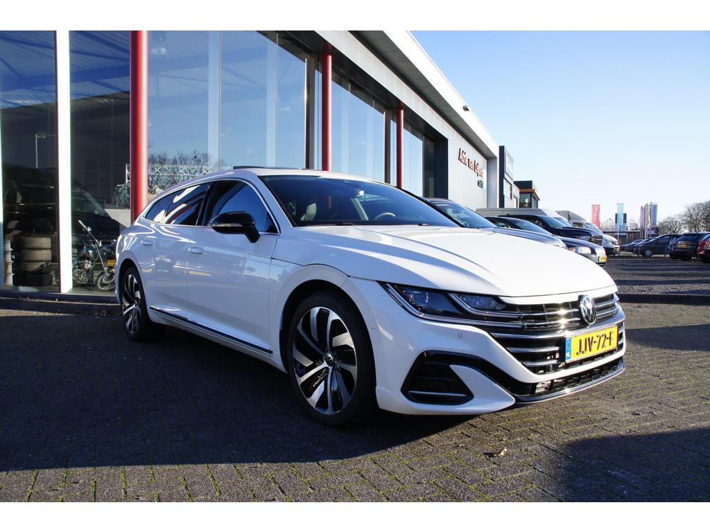 "Lichtmetalen velgen 19""", Accident Avoidance System, Achterbank in delen neerklapbaar, Achteruitrijcamera, Airbag(s) hoofd achter, Airbag(s) hoofd voor, Airbag(s) knie, Airbag bestuurder, Airbag passagier, Airco automatisch, Airco separaat achter, Android Auto, Anti Blokkeer Systeem (ABS), Apple Carplay, Armsteun achter, Armsteun voor, Audio installatie, Audio installatie premium, Autotelefoonvoorbereiding met Bluetooth, Bandenspanningscontrolesysteem, Binnenspiegel automatisch dimmend, Boordcomputer, Bots waarschuwing systeem, Brake Assist System, Buitenspiegels elektrisch inklapbaar, Buitenspiegels elektrisch verstelbaar, Buitenspiegels in carrosseriekleur, Buitenspiegels met verlichting, Buitenspiegels verwarmbaar, Chroom delen exterieur, Cruise control adaptief, DAB-ontvanger, Electronic Stability Program (ESP), Elektrisch glazen panorama-dak, Elektrisch verstelbare bestuurdersstoel met geheugen, Extra getint glas, Grootlicht-assistent, Hill hold-functie, Hoofdsteunen actief, Keyless entry, Keyless start, Kleur wit, Koplampen adaptief, LED achterlichten, LED dagrijverlichting, Lederen bekleding, Lederen stuurwiel, Lederen versnellingspook, Lendesteunen (verstelbaar), Matrix LED koplampen, Multimedia-voorbereiding, Navigatie-systeem full map, Navigatie full map, Navigatiesysteem, Oplaadmogelijkheid, Parkeersensor achter, Parkeersensor voor, R-Line Exterieur, Regensensor, Rijstrooksensor met correctie, Ruitensproeiers verwarmbaar, Schakelmogelijkheid aan stuurwiel, Sportstoelen, Stuurbekrachtiging, Stuurwiel multifunctioneel, Telefoonintegratie premium, Tractie Controle Systeem (TCS), Trekhaak elektrisch uitklapbaar, Verkeersbord detectie, Vermoeidheids herkenning, Vervolgbotsing preventie, Verwarmde voorstoelen, Volledig digitaal instrumentenpaneel, Voorstoel(en) met massagefunctie, Voorstoelen in hoogte verstelbaar, isofix