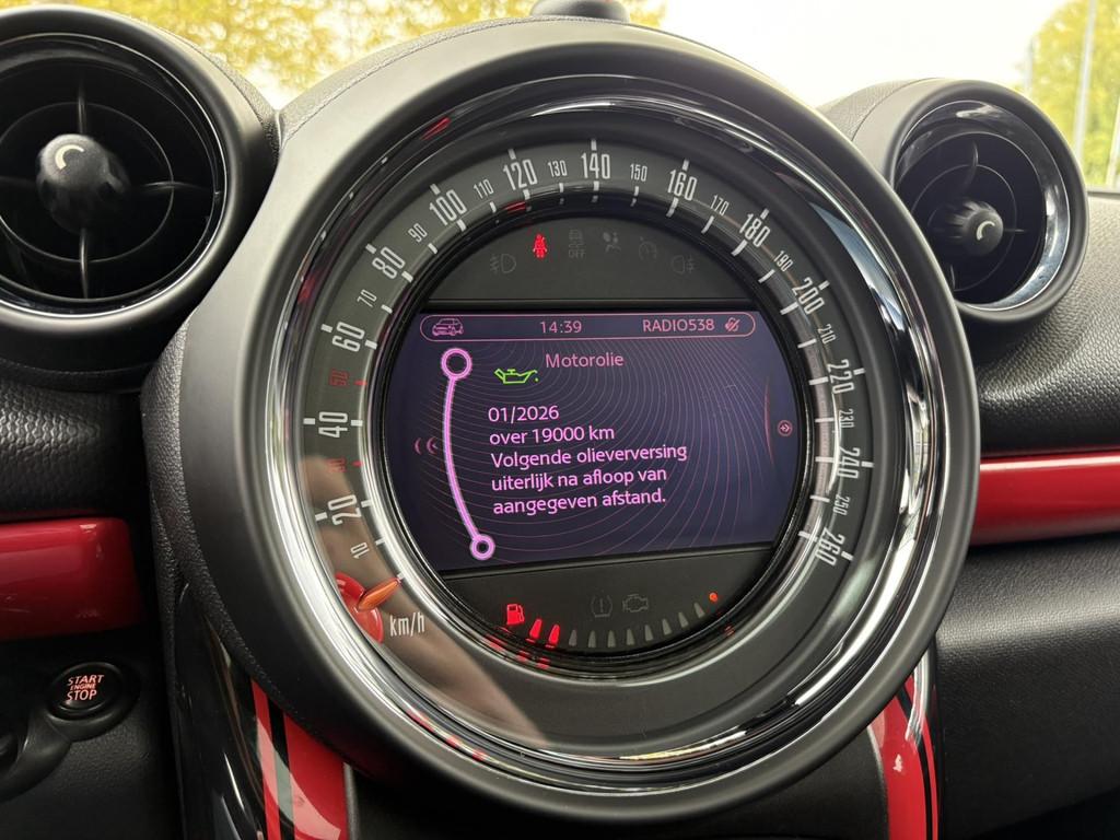 "Lichtmetalen velgen 18""", Airbag(s) hoofd voor, Airbag(s) side voor, Airbag bestuurder, Airbag passagier, Airco automatisch, Ambient lighting, Anti Blokkeer Systeem, Anti Blokkeer Systeem (ABS), Armsteun voor, Audioinstallatie met CD-speler, Audio installatie premium, Autotelefoonvoorbereiding met Bluetooth, Bandenspanningscontrolesysteem, Bi-xenon koplampen, Binnenspiegel automatisch dimmend, Boordcomputer, Buitenspiegels elektrisch verstelbaar, Buitentemperatuurmeter, Centrale deurvergrendeling met afstandsbediening, Cruise control, Dakspoiler, Dimlichten automatisch, Electronic Brake Distribution, Electronic Stability Program, Electronic Stability Program (ESP), Elektrische ramen achter, Elektrische ramen voor, Elektrisch glazen panorama-dak, Essential pakket, Extra getint glas, Halogeen mistlampen, Harman-Kardon Soundsystem, JCW-Pakket, JCW-Remklauwen, JCW-Stuurwiel, JCW-Velgen, Lederen bekleding, Lederen stuurwiel, Luxe lederen bekleding, Metallic lak, Multimedia-voorbereiding, Navigatie-systeem full map, Navigatie full map, Open Dak, Parkeersensor achter, Passagiersstoel in hoogte verstelbaar, Regensensor, Sfeer-verlichting, Sport-pakket, Sport-stoelen, Sport-stuur, Sportonderstel, Sportstoelen, Sportstuur, Spraakbediening, Startblokkering, Stuurwiel multifunctioneel, Trekhaak afneembaar, Verwarmde voorstoelen, Wired pakket, Wis-/was installatie voor koplampen, isofix, trekhaak