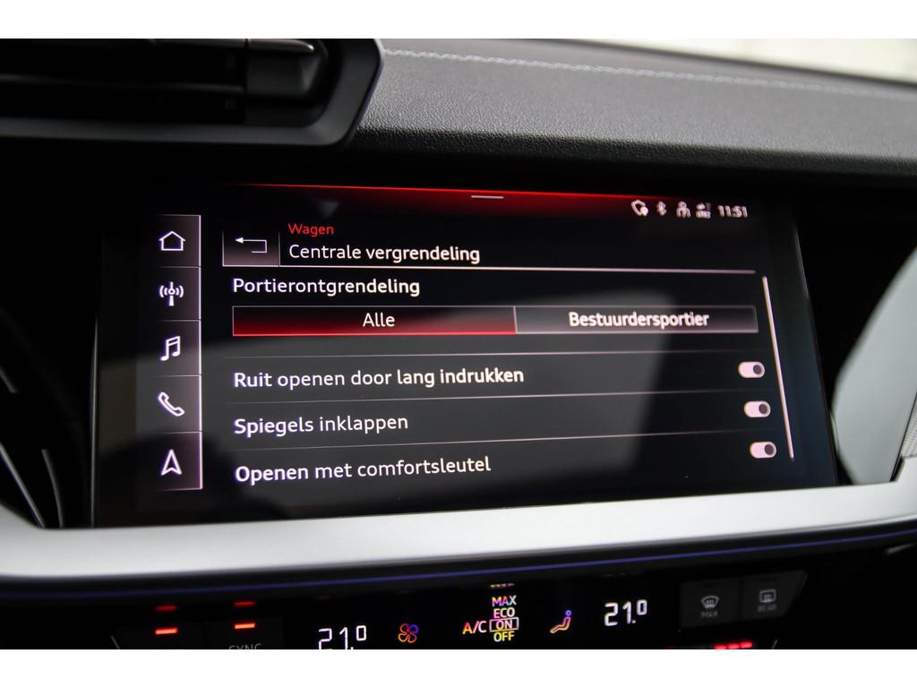 3D knipperlichten, 8 inch Navigatiesysteem, 17inch S-Line velgen, 17inch lichtmetalen velgen, 18inch S-Line velgen, 18inch S3 velgen, 18inch lichtmetalen velgen, ACC (Adaptive Cruise Control), Accident Avoidance System, Achterbank in delen neerklapbaar, Achteruitrijcamera, Achteruitrijcamera (Rear View), Active Info Display, Adaptieve verlichting, Agility Select, Airbag(s) hoofd achter, Airbag(s) hoofd voor, Airbag(s) side voor, Airbag bestuurder, Airbag passagier, Airconditioning, Alcantara stuurdelen, Aluminium interieur afwerking, Ambiance verlichting, Android Auto, Anti Blokkeer Systeem (ABS), App connect, Apple CarPlay, Armsteun voor, Attention Assist, Audi Drive Select, Audi Exclusive interieur, Audi Soundsystem, Audi active lane assist, Audio installatie, Audio installatie premium, Audi pre sense, Automaat, Automatisch dimmende binnenspiegel, Automatische airconditioning, Bandenspanningscontrolesysteem, Bestuurdersstoel in hoogte verstelbaar, Binnenspiegel automatisch dimmend, Bluetooth, Bots herkenning en activatie, Brake Assist System, Buitenspiegel(s) automatisch dimmend, Buitenspiegels elektrisch inklapbaar, Buitenspiegels elektrisch verstelbaar, Buitenspiegels verwarmbaar, Camera achterzijde, Carbonafwerking interieur, Carbon interieur details, Centrale deurvergrendeling met afstandsbediening, City Safe Drive, Climate Control, Climate Control Dual-Zone, Coming- / Leaving Home functie, Connected services, Cruise control, Cruise control adaptief met Stop&Go, DAB+, DAB-ontvanger, DSG F1 schakelflippers, Dakspoiler, Dealeronderhouden, Digitaal instrumentenpaneel, Dimlichten automatisch, Discover Media navigatiesysteem, Discover Pro navigatie, Draadloze telefoonlader, Driving Mode Selection, Driving Profiles, Driving Select, Dynamic Light Assist, Dynamic Select, Dynamische knipperlichten, Electronic Brake Distribution (EBD), Electronic Stability Program (ESP), Electronic climate controle, Elektrisch bedienbare achterklep met sensorsturing, Elektrische achterklep, Elektrische ramen, Elektrische ramen voor- & achterzijde, Elektrisch glazen panorama-dak, Elektrisch panoramisch schuif-/kanteldak, Elektrisch schuif-/kanteldak, Extra getint glas, F1 schakelpaddles, Front Assist (Pre-Crash), Geluidwerend glas, Grootlicht-assistent, Grootlicht Assistent, Halflederen S-Line sportstoelen, Hill hold-functie, Inductief opladen telefoon QI, Keyless Entry & Keyless GO, Keyless Go, Keyless entry, Keyless start, Klein lederpakket, Kleur parelmoer, Koplampen adaptief, Koplampreiniging, Kuipstoelen, LED-lichtpakket, LED Matrix koplampen, LED achterlichten, LED dagrijverlichting, LED koplampverlichting, LED mistlampen, LED verlichting interieur & exterieur, Lane Assist (Rijstrookbegeleiding), Lederen bekleding, Lederen interieur, Lederen stuur, Lederen stuurwiel, Licht- & Regensensor, Lichtmetalen 19inch velgen, Lichtmetalen velgen, Lichtmetalen velgen 5-spaaks 17", Lichtmetalen velgen 18", Luxe lederen bekleding, Matrix LED koplampen, Metallic lak, Middenarmsteun, Multibeam LED verlichting, Multimedia-voorbereiding, Navigatie full map, Navigatiesysteem, Night pakket, Oplaadmogelijkheid, Panoramadak, Parkeer-assistent, Parkeer pakket, Parkeersensor achter, Parkeersensoren achterzijde, Parkeersensor voor, Passagiersstoel in hoogte verstelbaar, Performance schaalstoelen, Performance uitlaatsysteem, Premium kleur, Privacy glas, RVS Instaplijsten, Radio, Radio-/CD-/USB-speler, Recaro kuipstoelen, Regensensor, Remassistent, Rijprofiel instellingen, Rijstrooksensor, Ruitensproeiers verwarmbaar, S-Line interieur & S-Line exterieur, S3 Kuipstoelen, S Line exterieur, Schaalstoelen, Schalensitze, Sfeerverlichting interieur, Soundsystem, Speciale kleur, Spiegelpakket - Elektrisch inklapbaar, Sportstoelen, Sportstuur, Sportuitlaatsyteem, Standkachel, Standkachel fabrieksaf, Start/stop systeem, Startblokkering, Stoelverwarming, Stof/kunstlederen bekleding, Stuurbekrachtiging, Stuurhulp, Stuurwielbediening, Stuurwiel multifunctioneel, Subwoofer, Supersport kuipstoelen, Telefoonintegratie premium, Tractie Controle Systeem (TCS), Uitwijk assistent, Variabele stuuroverbrenging, Verkeersbord detectie, Verkeersborden herkenning, Verkeersbordenherkenning, Verwarmde voorstoelen, Virtual Cockpit, Volledig digitaal instrumentenpaneel, Warmtewerende voorruit, WiFi voorbereiding, Widescreen Cockpit, Xenon verlichting, Zwarte hemelbekleding, parkeer sensoren v+a