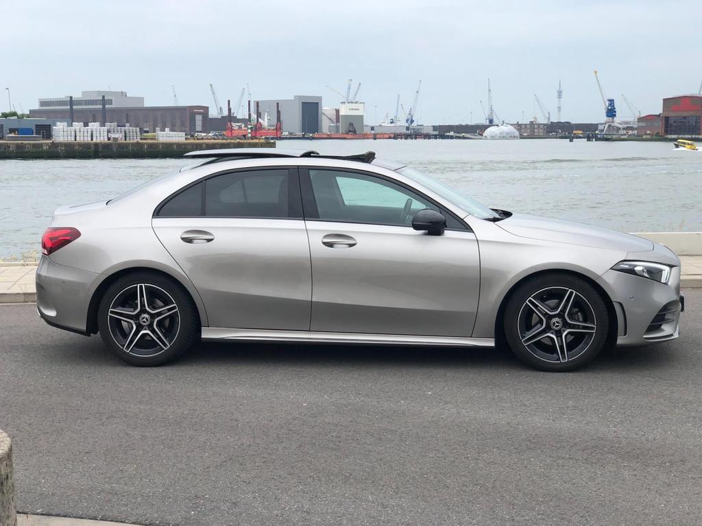 AMG-styling, Accident Avoidance System, Achterbank in delen neerklapbaar, Achteruitrijcamera, Airbag(s) hoofd achter, Airbag(s) hoofd voor, Airbag(s) knie, Airbag(s) side voor, Airbag bestuurder, Airbag passagier, Airco automatisch, Anti Blokkeer Systeem, Anti Blokkeer Systeem (ABS), Armsteun voor, Autotelefoonvoorbereiding met Bluetooth, Bandenspanningscontrolesysteem, Bestuurdersstoel in hoogte verstelbaar, Binnenspiegel automatisch dimmend, Brake Assist System, Buitenspiegel(s) automatisch dimmend, Buitenspiegels elektrisch inklapbaar, Comfortstoel(en), Connected services, Cruise control, Dimlichten automatisch, Extra getint glas, Keyless start, LED achterlichten, LED dagrijverlichting, LED koplampen, Lederen stuurwiel, Lendesteunen (verstelbaar), Lichtmetalen velgen 18", Metallic lak, Multimedia-voorbereiding, Navigatie-systeem full map + hard disk, Panoramadak, Parkeer-assistent, Parkeersensor voor en achter, Passagiersstoel in hoogte verstelbaar, Radio, Regensensor, Rijstrooksensor met correctie, Side-skirts, Sportstoelen, Sportstuur, Spraakbediening, Start/stop systeem, Startblokkering, Stof/kunstlederen bekleding, Stuurwiel multifunctioneel, Variabele stuuroverbrenging, Verkeersbord detectie, Volledig digitaal instrumentenpaneel, Voorstoelen verwarmd, WiFi voorbereiding
