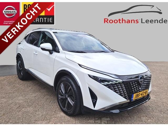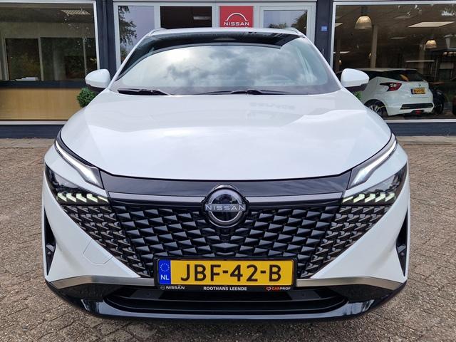 2x USB laadpoorten achter (1x type A, 1x type C), 2x USB laadpoorten voor, 3-punts veiligheidsgordels voor en achter, 9" NissanConnect Navigatie- en infotainmentsysteem, 12,3'' TFT digitaal instrumentenpaneel, 12V aansluitingen voor en in de bagageruimte, 19" diamant-geslepen lichtmetalen velgen, A-IVC Navigatie services, A-IVI NissanConnect Navigatiesysteem (9'' TFT touchscreen), ABS (Anti-blokkeersysteem), Achterbankleuning in delen neerklapbaar (60/40), Achteruitrijcamera met dynamische afstandsmarkering, Adaptive Front Lighting System (AFS), Alarmsysteem, Apple Carplay® & Android Auto® met kabel, Around View Monitor (AVM), Audiosysteem met Apple Carplay® & Android Auto®, USB-aansluiting, stuurwielbediening, 6 luidsprekers, Auto Speed Control Device (ASCD), Auto Speed Limit (ASL), Automatisch dimmende binnenspiegel, Automatische achterklep met voetsensor, Automatisch in- / uitschakelende koplampen, Back-up Collission intervention (BCI), Bandenreparatieset, Bandenspanningscontrolesysteem (TPMS), Bekerhouder achter (2x), Bekerhouder voor (2x), Blind Junction View (BJV), Blind Spot Warning & Intervention (BSW + BSI), Bluetooth® (telefoon en audio), Breakdown call, Buitenspiegelbehuizing en deurgrepen in carrosseriekleur, Buitenspiegels elektrisch inklapbaar, Buitenspiegels elektrisch verstelbaar en verwarmbaar, Centrale deurvergrendeling met afstandsbediening, Chromen raamomlijsting, Chromen sierstrip achterbumper, Chromen strip achterklep, Cross Traffic Alert (CTA), DRIVE ASSIST, Dakrails, Dakspoiler achter, Digitale radio-ontvangst (DAB+), Draadloos Apple Carplay®, Draadloze smartphone oplader (15w), Drive modus functie (3 modi), Driver Attention Alert (DAA), EBD (Elektronische Remkrachtverdeler), ESP (Electronic Stability Program), Elektrische lendensteunverstelling bestuurdersstoel (2-way), Elektrische lendensteunverstelling passagiersstoel (2-way), Elektrisch verstelbare bestuurdersstoel, Elektronische handrem, Elektronische stuurbekrachtiging, Emergency Stop Signal (Autohazard), Extra getint glas (achterste zijruiten en achterruit), Flexibele bagageruimte indeling (2 scheidingsplanken), Frontal Collision Warning (FCW), Gescheiden automatische airconditioning (2 zones), Gordelspanners en melding voor veiligheidsgordels, Haaienvin-antenne, Haken in de bagageruimte (4 op de bodem, 2 aan de zijkanten), Head-up display (10.8'' projectie), High Beam Assist (HBA), Hill Start Assist (HSA), Hill Start Assist + AutoHold functie, Hoedenplank, ISOFIX-bevestigingspunten achter (2x), In hoogte en diepte verstelbaar stuurwiel, In hoogte verstelbare passagiersstoel, Intelligent Cruise Control (ICC), Interieur ambianceverlichting uitgebreid (middenconsole en deuren), Interieurlijsten metaallook, LED achterlichten, LED achteruitrijlicht en knipperlicht achter, LED matrix koplampen met LED dagrijverlichting en geintegreerd knipperlicht, Lane Departure Warning & Prevention (LDW + LDP), Lane Side Support (LSS), Lichtsensor, Limited Slip Differential (LSD), Metallic lak, Middenarmsteun achter met 2 bekerhouders, Middenarmsteun vóór met opbergvak, Middenconsole en armsteunen in PVC, Moving Object Detection (MOD), NBAS (Nissan Brake Assist System), Parkeersensoren voor- en achterzijde, Portiergrepen met ontgrendelknop (Easy Access), Predictive Forward Collision Warning (PFCW), Predictive Front Emergency Braking met voetgangers- en fietsersherkenning (P-FEB), ProPILOT, Regensensor, START/STOP-systeem, Stuurwielbediening, Stuurwiel en versnellingspookknop met leder bekleed, Tankdeksel zonder dop, Traffic Sign Recognition (TSR), Vehicle Dynamic Control (VDC), Verlichting aan beide kanten in de bagageruimte, Verwarmbaar stuurwiel, Verwarmbare voorruit, Verwarmbare voorstoelen, Voor-, zij- en gordijnairbags (uitschakelbare passagiersairbag), Zachte kniesteun (PVC), Zonnebrillenhouder in hemelbekleding, Zonnekleppen met make-up spiegel, Zonnekleppen met make-up spiegel, verlicht, eCall, i-Key (openen en sluiten zonder sleutel)
