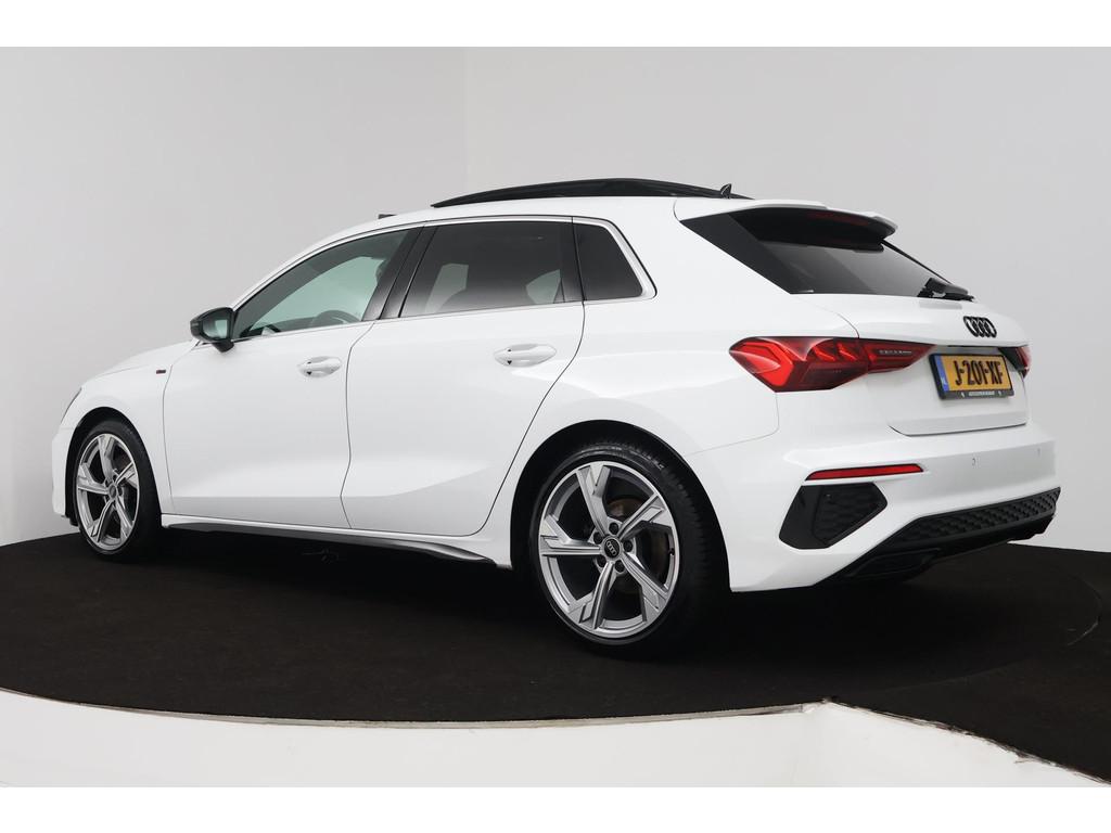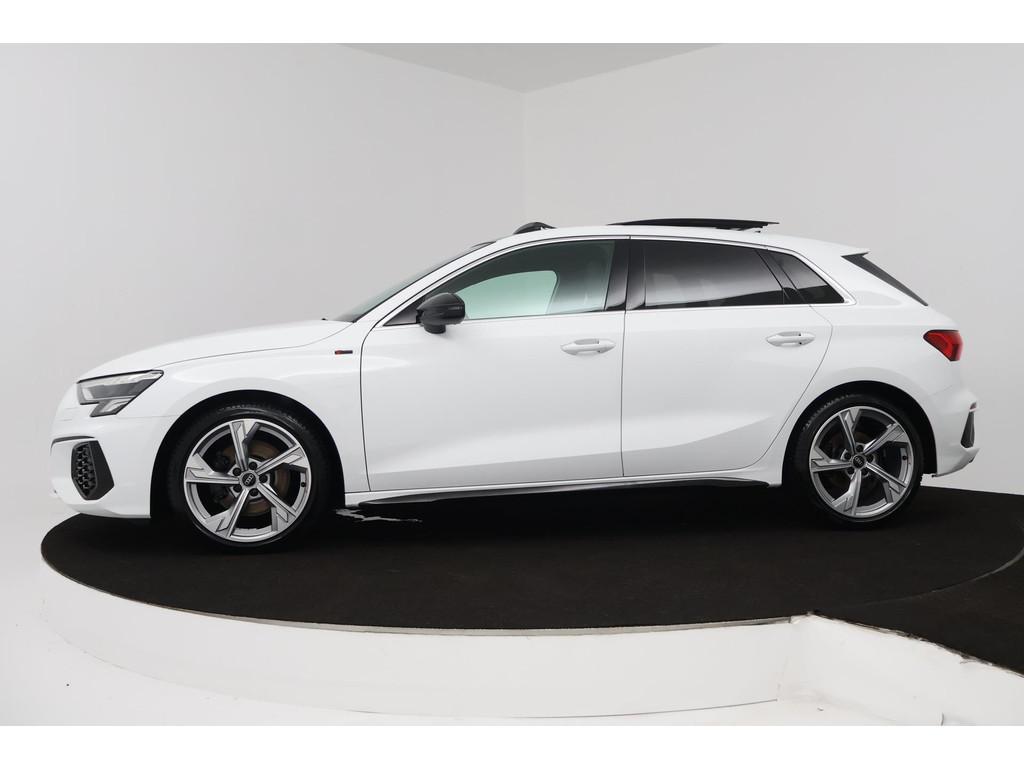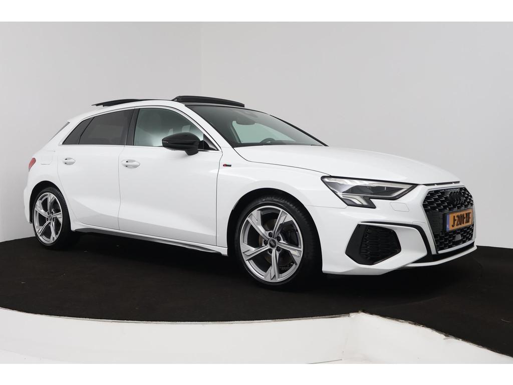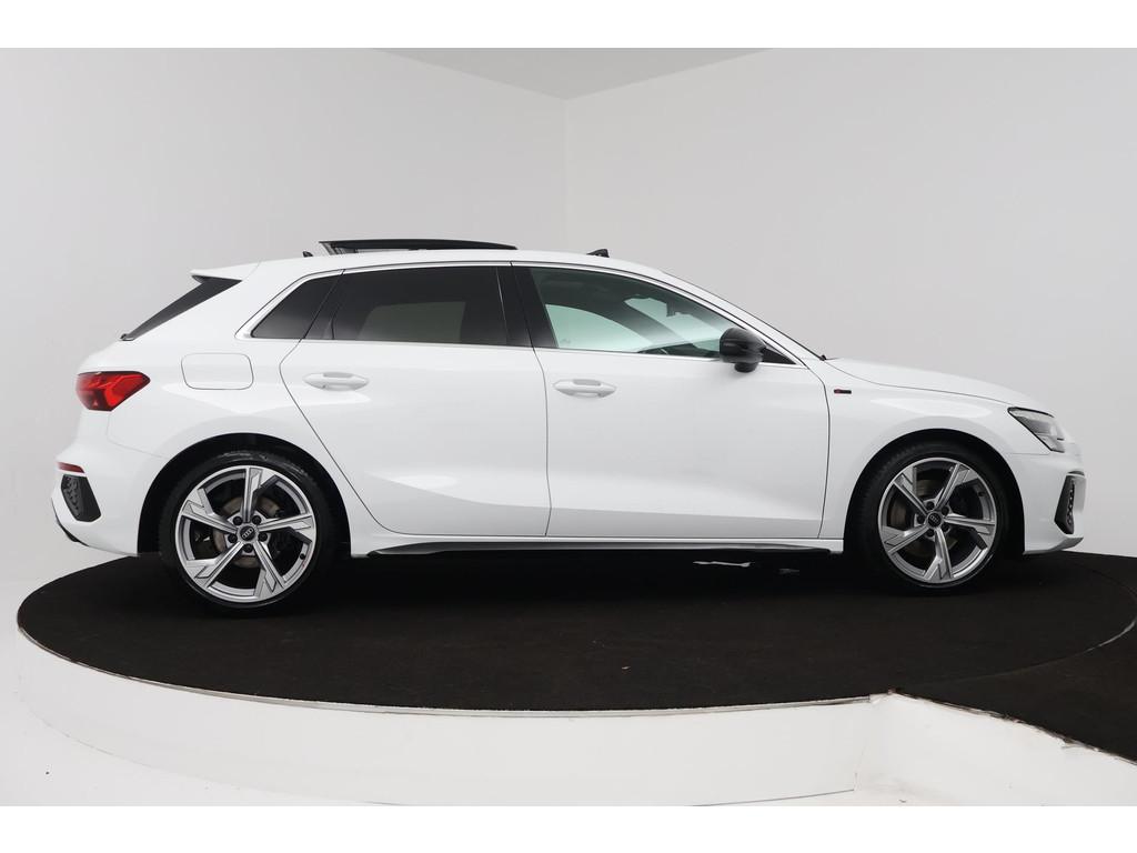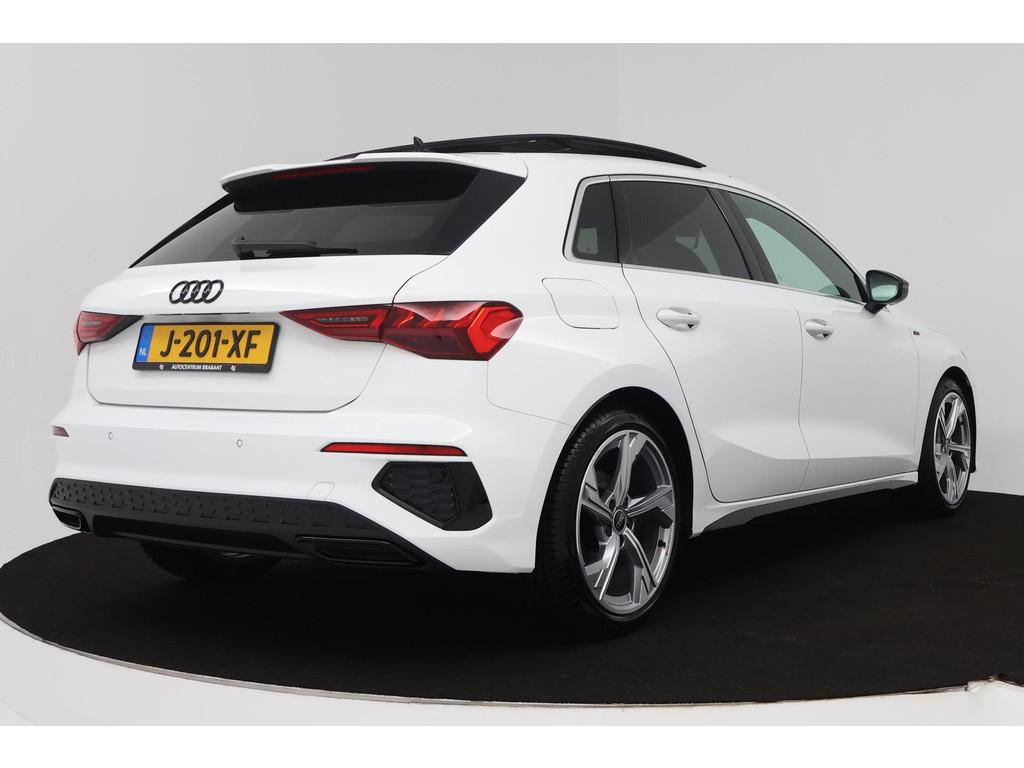 "Lichtmetalen velgen 5-spaaks 17""", Accident Avoidance System, Achterbank in delen neerklapbaar, Airbag(s) hoofd achter, Airbag(s) hoofd voor, Airbag(s) side voor, Airbag bestuurder, Airbag passagier, Aluminium delen exterieur, Aluminium interieur afwerking, Anti Blokkeer Systeem (ABS), Apple CarPlay, Armsteun voor, Audio installatie premium, Bandenspanningscontrolesysteem, Bestuurdersstoel in hoogte verstelbaar, Bluetooth telefoonvoorbereiding, Brake Assist System, Buitenspiegels elektrisch verstelbaar, Buitenspiegels in carrosseriekleur, Buitenspiegels verwarmbaar, Carplay, Centrale deurvergrendeling met afstandsbediening, Connected services, Cruise control, Cruise control adaptief met Stop&Go, DAB-ontvanger, Dakspoiler, Dimlichten automatisch, Draadloze telefoonlader, Electronic Brake Distribution (EBD), Electronic Stability Program (ESP), Electronic climate controle, Elektrisch glazen panorama-dak, Elektrisch verstelbare bestuurdersstoel, Isofix, Isofix-bevestigingssysteem voor kinderzitjes, Kleur parelmoer, Koplampen adaptief, LED achterlichten, LED dagrijverlichting, Lederen stuurwiel, Matrix LED koplampen, Metallic lak, Mirror-Link, Multimedia-voorbereiding, Navigatie full map, Navigatiesysteem Professional, Panoramadak, Parkeersensor achter, Parkeersensor voor, Passagiersstoel in hoogte verstelbaar, Radio, Regensensor, Rijstrooksensor, Ruitensproeiers verwarmbaar, S Line exterieur, Sportonderstel, Sportstoelen, Sportstuur, Start/stop systeem, Startblokkering, Stof/kunstlederen bekleding, Stuurbekrachtiging, Stuurhulp, Stuurwiel multifunctioneel, Telefoonintegratie premium, Tractie Controle Systeem (TCS), Uitwijk assistent, Verkeersbord detectie, Volledig digitaal instrumentenpaneel, Warmtewerende voorruit, WiFi voorbereiding, achterbank in delen neerklapbaar, electronic climate controle, onderhoudsboekjes aanwezig, parkeersensor voor en achter