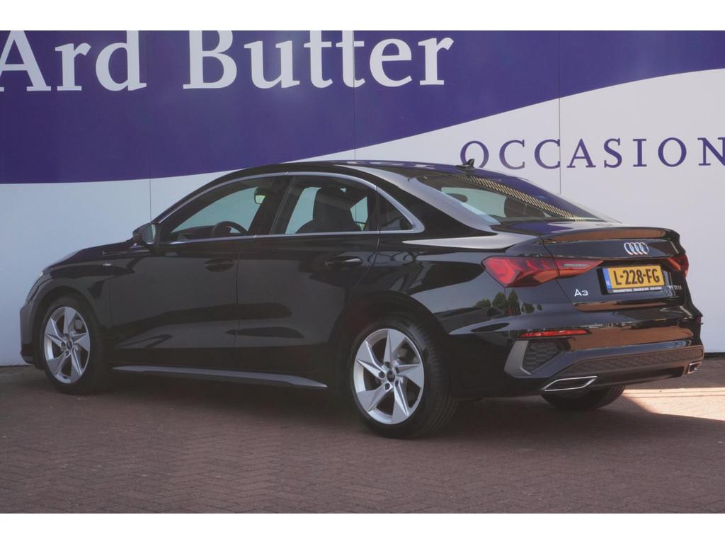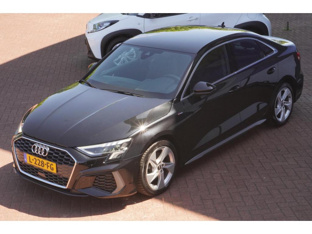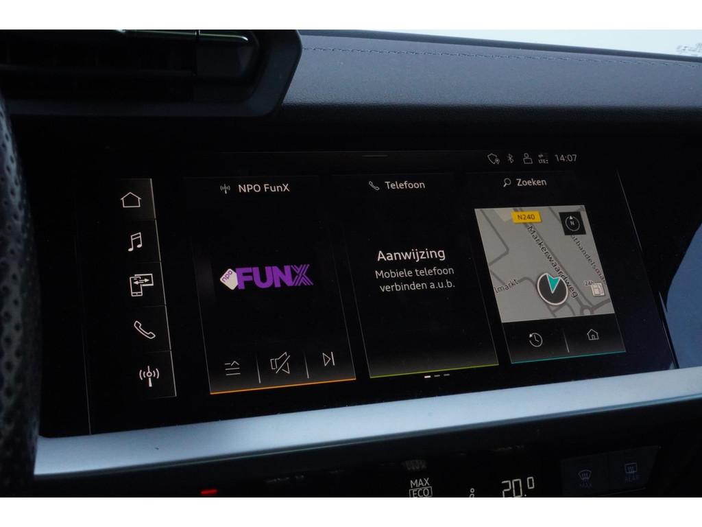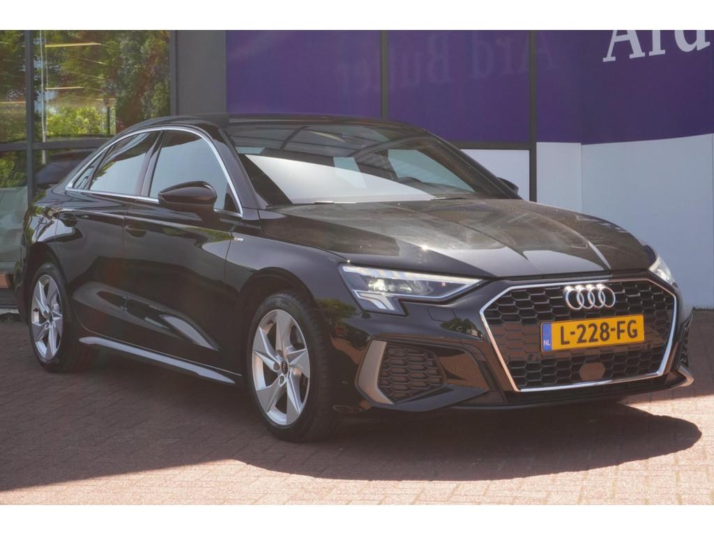 "Lichtmetalen velgen 5-spaaks 17""", Accident Avoidance System, Achterbank in delen neerklapbaar, Airbag(s) hoofd achter, Airbag(s) hoofd voor, Airbag(s) side voor, Airbag bestuurder, Airbag passagier, Aluminium delen exterieur, Aluminium interieur afwerking, Anti Blokkeer Systeem (ABS), Armsteun voor, Bandenspanningscontrolesysteem, Bestuurdersstoel in hoogte verstelbaar, Brake Assist System, Buitenspiegels elektrisch verstelbaar, Buitenspiegels in carrosseriekleur, Buitenspiegels verwarmbaar, Centrale deurvergrendeling met afstandsbediening, Connected services, Cruise control, Cruise control adaptief met Stop&Go, DAB-ontvanger, Dimlichten automatisch, Draadloze telefoonlader, Electronic Brake Distribution (EBD), Electronic Stability Program (ESP), Electronic climate controle, Kleur parelmoer, Koplampen adaptief, LED achterlichten, LED dagrijverlichting, Lederen stuurwiel, Multimedia-voorbereiding, Navigatie full map, Parkeersensor achter, Passagiersstoel in hoogte verstelbaar, Radio, Regensensor, Rijstrooksensor, Ruitensproeiers verwarmbaar, S Line exterieur, Schakelmogelijkheid aan stuurwiel, Sportonderstel, Sportstoelen, Sportstuur, Start/stop systeem, Startblokkering, Stof/kunstlederen bekleding, Stuurbekrachtiging, Stuurhulp, Stuurwiel multifunctioneel, Telefoonintegratie premium, Tractie Controle Systeem (TCS), Uitwijk assistent, Verkeersbord detectie, Volledig digitaal instrumentenpaneel, Warmtewerende voorruit, WiFi voorbereiding