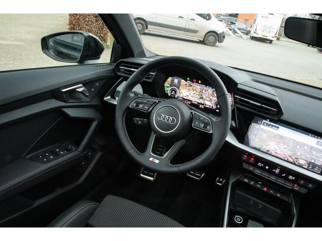 3D knipperlichten, 8 inch Navigatiesysteem, 17inch S-Line velgen, 17inch lichtmetalen velgen, 18inch LM Rotor velgen, 18inch S-Line velgen, 18inch S3 velgen, 18inch lichtmetalen velgen, ACC (Adaptive Cruise Control), Accident Avoidance System, Achterbank in delen neerklapbaar, Achterspoiler, Achteruitrijcamera, Achteruitrijcamera (Rear View), Active Info Display, Adaptieve verlichting, Agility Select, Airbag(s) hoofd achter, Airbag(s) hoofd voor, Airbag(s) side voor, Airbag bestuurder, Airbag passagier, Airconditioning, Aluminium interieur afwerking, Android Auto, Anti Blokkeer Systeem (ABS), App connect, Apple CarPlay, Armsteun voor, Attention Assist, Audi Drive Select, Audi Soundsystem, Audi active lane assist, Audio installatie, Audio installatie premium, Audi pre sense, Audi side assist, Automaat, Automatische airconditioning, Bandenspanningscontrolesysteem, Bestuurdersstoel in hoogte verstelbaar, Blind Spot Detection, Bluetooth, Bots herkenning en activatie, Brake Assist System, Buitenspiegels elektrisch verstelbaar, Buitenspiegels verwarmbaar, Camera achterzijde, Carbonafwerking interieur, Centrale deurvergrendeling met afstandsbediening, City Safe Drive, Climate Control, Climate Control Dual-Zone, Coming- / Leaving Home functie, Connected services, Cruise control, Cruise control adaptief met Stop&Go, DAB+, DAB-ontvanger, DSG F1 schakelflippers, Dealeronderhouden, Digitaal instrumentenpaneel, Dimlichten automatisch, Discover Media navigatiesysteem, Discover Pro navigatie, Dodehoek detector, Dodehoeksensor, Driving Mode Selection, Driving Profiles, Driving Select, Dynamic Light Assist, Dynamic Select, Dynamische knipperlichten, Electronic Brake Distribution (EBD), Electronic Stability Program (ESP), Electronic climate controle, Elektrisch bedienbare achterklep met sensorsturing, Elektrische achterklep, Elektrische ramen, Elektrische ramen voor- & achterzijde, Elektrisch glazen panorama-dak, Elektrisch panoramisch schuif-/kanteldak, Elektrisch schuif-/kanteldak, Extra getint glas, F1 schakelpaddles, Filehulp, Front Assist (Pre-Crash), Halflederen S-Line sportstoelen, Hill hold-functie, Inductief opladen telefoon QI, Keyless Entry & Keyless GO, Keyless Go, Keyless entry, Keyless start, Klein lederpakket, Koplampen adaptief, Koplampreiniging, Kuipstoelen, LED Matrix koplampen, LED achterlichten, LED dagrijverlichting, LED koplampverlichting, LED mistlampen, LED verlichting interieur & exterieur, Lane Assist (Rijstrookbegeleiding), Lederen bekleding, Lederen interieur, Lederen stuur, Lederen stuurwiel, Licht- & Regensensor, Lichtmetalen velgen, Lichtmetalen velgen 5-spaaks 17", Luxe lederen bekleding, Matrix LED koplampen, Metallic lak, Metallic zwart, Middenarmsteun, Multibeam LED verlichting, Multimedia-voorbereiding, Navigatie full map, Navigatiesysteem, Night pakket, Oplaadmogelijkheid, Panoramadak, Parkeer-assistent, Parkeer pakket, Parkeersensor achter, Parkeersensoren achterzijde, Parkeersensor voor, Passagiersstoel in hoogte verstelbaar, Performance schaalstoelen, Privacy glas, RVS Instaplijsten, Radio, Radio-/CD-/USB-speler, Recaro kuipstoelen, Regensensor, Remassistent, Rijprofiel instellingen, Rijstrooksensor, Rijstrooksensor met correctie, Ruitensproeiers verwarmbaar, S-Line interieur & S-Line exterieur, S Line exterieur, Schaalstoelen, Schalensitze, Sfeerverlichting interieur, Side Assist, Soundsystem, Sportstoelen, Sportstuur, Standkachel, Standkachel fabrieksaf, Start/stop systeem, Startblokkering, Stof/kunstlederen bekleding, Stuurbekrachtiging, Stuurwielbediening, Stuurwiel multifunctioneel, Subwoofer, Supersport kuipstoelen, Telefoonintegratie premium, Tractie Controle Systeem (TCS), Uitwijk assistent, Variabele stuuroverbrenging, Verkeersbord detectie, Verkeersborden herkenning, Verkeersbordenherkenning, Virtual Cockpit, Volledig digitaal instrumentenpaneel, Warmtewerende voorruit, Warmtewerend glas, WiFi voorbereiding, Widescreen Cockpit, Xenon verlichting, Zwarte hemelbekleding, parkeer sensoren v+a