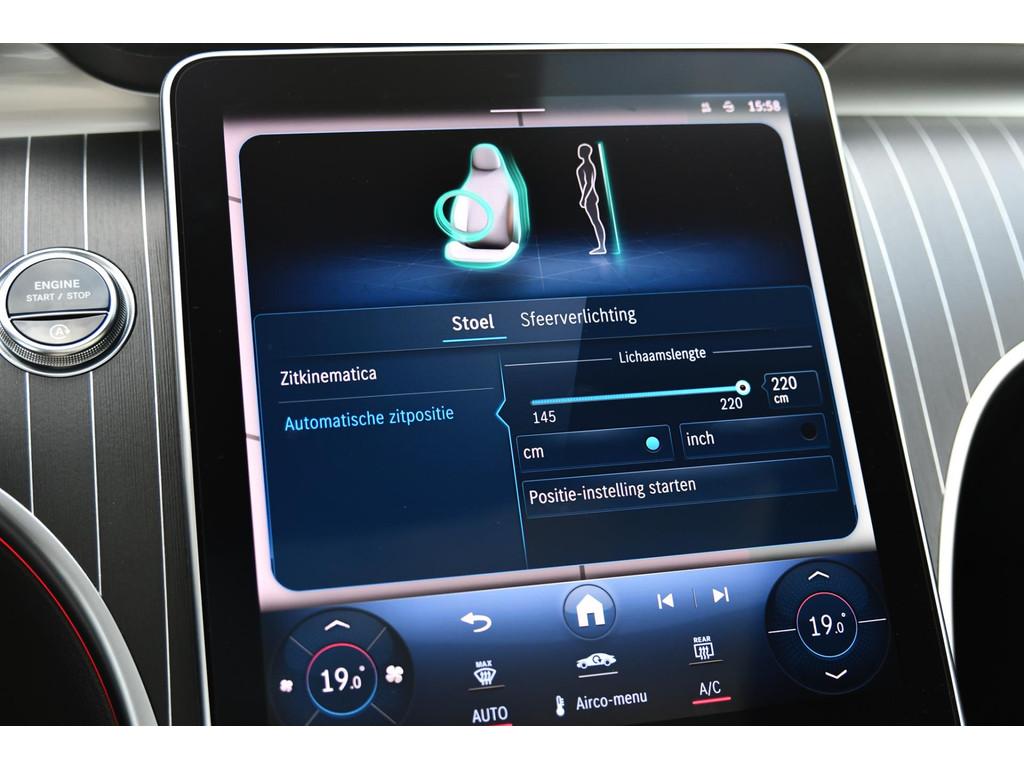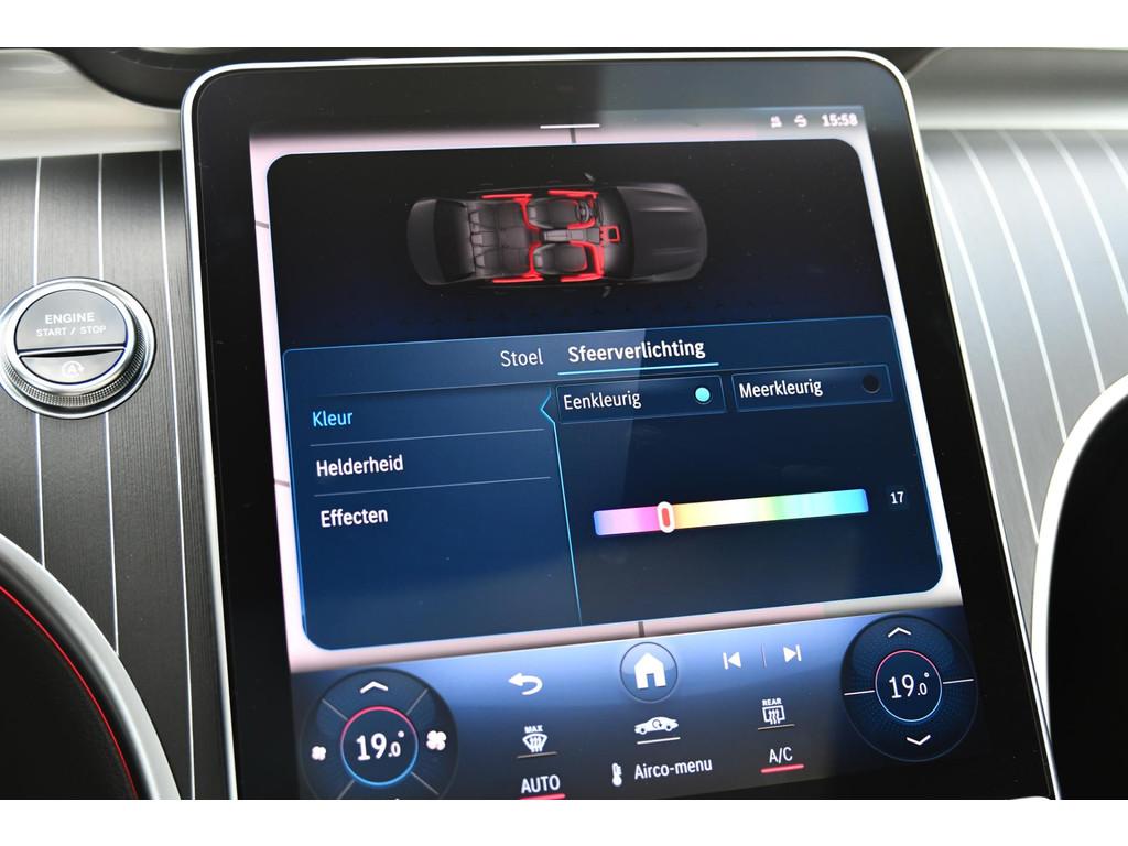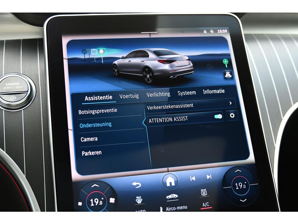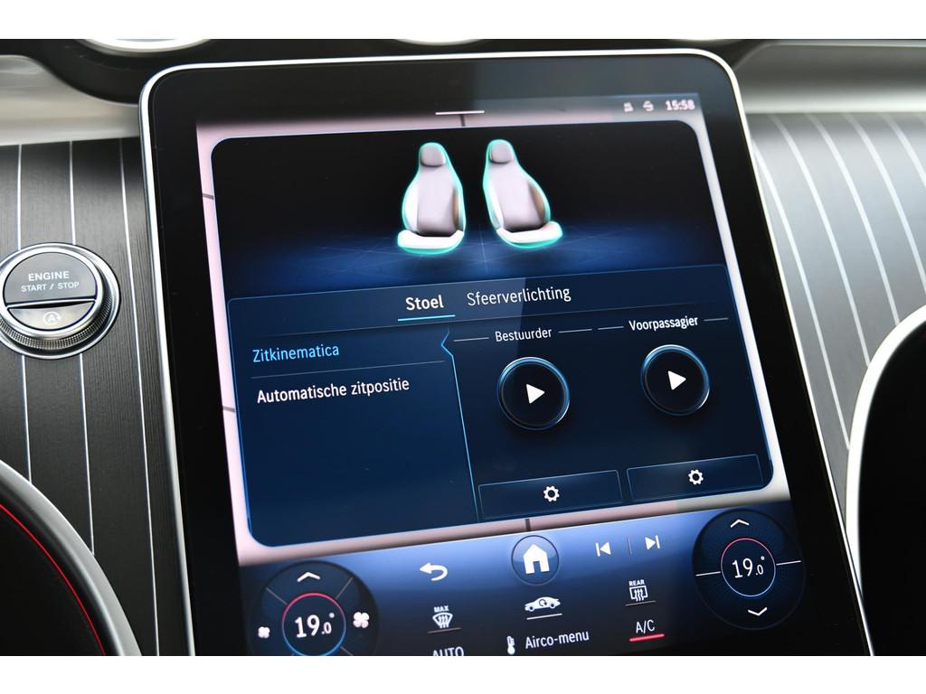 "Lichtmetalen velgen multi-spaaks 19""", AMG-styling, Accident Avoidance System, Achterbank in delen neerklapbaar, Achteruitrijcamera, Airbag(s) hoofd, Airbag(s) hoofd achter, Airbag(s) hoofd voor, Airbag(s) side voor, Airbag bestuurder, Airbag passagier, Airco automatisch, Aluminium delen exterieur, Anti Blokkeer Systeem (ABS), Audio installatie, Bandenspanningscontrolesysteem, Binnenspiegel automatisch dimmend, Bots waarschuwing systeem, Brake Assist System, Buitenspiegel(s) automatisch dimmend, Buitenspiegels elektrisch inklapbaar, Buitenspiegels elektrisch verstelbaar, Buitenspiegels met verlichting, Buitenspiegels verwarmbaar, Centrale deurvergrendeling met afstandsbediening, Connected services, Cruise control, DAB-ontvanger, Dodehoek detector, Draadloze telefoonlader, Electronic Stability Program (ESP), Elektrische ramen achter, Elektrische ramen voor, Elektrisch glazen panorama-dak, Elektrisch verstelbare voorstoel(en), Extra getint glas, Grootlicht-assistent, Keyless start, LED dagrijverlichting, Lederen/alcantara bekleding, Lendesteunen (verstelbaar), Metallic lak, Multimedia-voorbereiding, Navigatie-systeem full map + hard disk, Panoramadak, Parkeer-assistent, Parkeersensor achter, Parkeersensor voor, Radio, Regensensor, Rijstrooksensor met correctie, Rondomzicht camera, Sportonderstel, Sportstoelen, Sportstuur, Spraakbediening, Startblokkering, Stuurwiel multifunctioneel, Telefoonintegratie premium, Verkeersbord detectie, Verwarmde voorstoelen, Volledig digitaal instrumentenpaneel