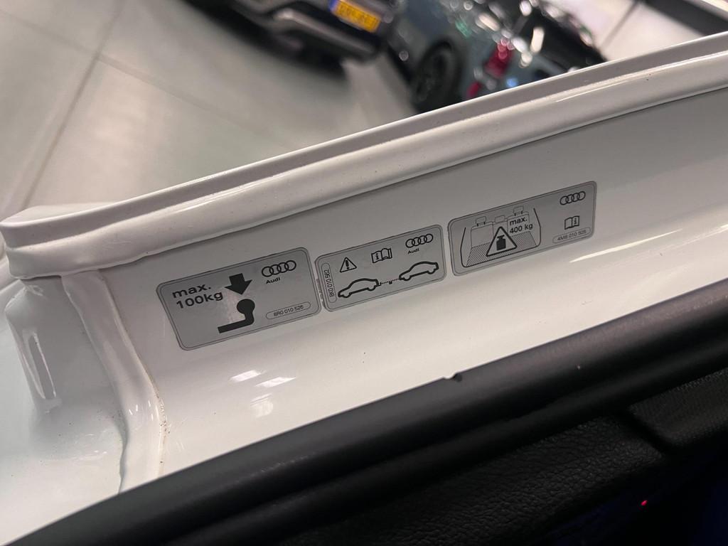 1e eigenaar, Accident Avoidance System, Achterbank in delen neerklapbaar, Achterbank verstelbaar, Achterbank verwarmd, Achteruitrij assistent, Achteruitrijcamera, Airbag(s) hoofd achter, Airbag(s) hoofd voor, Airbag(s) side voor, Airbag bestuurder, Airbag passagier, Airco automatisch, Airco separaat achter, Alarmsysteem, Anti Blokkeer Systeem (ABS), Apple CarPlay, Armsteun achter, Assistentie Pakket, Audio installatie, Autotelefoonvoorbereiding met Bluetooth, B&O SOUNDSYSTEM, Bagage-scheidingsnet, Bandenspanningscontrolesysteem, Binnenspiegel automatisch dimmend, Boordcomputer, Bots herkenning en activatie, Bots waarschuwing systeem, Brake Assist System, Buitenspiegel(s) automatisch dimmend, Buitenspiegel elektrisch inklapbaar en automatisch dimmend, Buitenspiegels elektrisch inklapbaar, Buitenspiegels elektrisch met geheugen, Buitenspiegels elektrisch verstelbaar, Buitenspiegels in carrosseriekleur, Buitenspiegels verwarmbaar, Centrale deurvergrendeling met afstandsbediening, City-pakket, Cruise control, Cruise control adaptief met Stop&Go, DAB-ontvanger, Dakrails, Dimlichten automatisch, Dodehoek detector, Draadloze telefoonlader, Electronic Brake Distribution (EBD), Electronic Stability Program (ESP), Elektrisch bedienbare achterklep, Elektrische ramen achter, Elektrische ramen voor, Elektrisch glazen panorama-dak, Elektrisch verstelbare bestuurdersstoel met geheugen, Elektrisch verstelbare passagiersstoel, Extra getint glas, Head-up display, Hill hold-functie, Interieur voorverwarmingsinstallatie, Kleur wit, Koplampreiniging, LED achterlichten, LED dagrijverlichting, Lederen stuurwiel, Lederen versnellingspook, Lendesteunen (verstelbaar), Luchtvering, Matrix LED koplampen, Metallic lak, Multimedia-voorbereiding, Navigatie full map, Oplaadmogelijkheid, Parkeer-assistent, Parkeersensor achter, Parkeersensor voor, RADIO MP3, Regensensor, Rijstrooksensor met correctie, Rondomzicht camera, Ruitensproeiers verwarmbaar, S Line exterieur, Schakelmogelijkheid aan stuurwiel, Sportstoelen, Start/stop systeem, Startblokkering, Stoelen-pakket, Stuurhulp, Stuur verstelbaar, Stuurwiel multifunctioneel, Telefoonintegratie, Telefoonintegratie premium, Tractie Controle Systeem (TCS), USB AANSLUITING ACHTERBANK, Uitwijk assistent, Verkeersbord detectie, Vervolgbotsing preventie, Verwarmde voorruit, Verwarmde voorstoelen, Volledig digitaal instrumentenpaneel, Voorstoel(en) met massagefunctie, Warmtewerend glas, Zonnescherm zijruiten, afleverkosten 350euro, ambient lighting, android auto, audi-connect, audi drive select, audi hold functie, audi music interface, audi pre-sense, audi smartfone interface, automaat, automatisch inparkeer hulp, black-optiek, dak hemel zwart, dealer onderhouden, dimlichten automatisch, draadloze iphone oplader, f1 flippers, isofix, led dagrijverlichting, leder/stof, massage stoelen, multimedia-input, nationale autopas, navigatie groot scherm, onderhoud digitaal, ruitenwisser achter, s-line interieur, s-line onderstel, s-line pakket, s-line sport remklauwen, servostuur, sfeer verlichting, speciaal extra verlaagd s-line onderstel, tft scherm, toerenteller, touchscreen, trekhaak electrisch inklapbaar, verwarmde en gekoelde beker houders, vierwielaandrijving (4x4), virtual cockpit