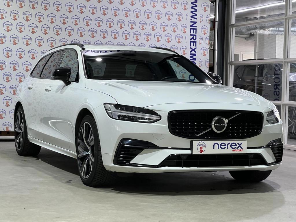 "Lichtmetalen velgen 5-spaaks 18""", Accident Avoidance System, Achterbank in delen neerklapbaar, Achterbank verwarmd, Achteropkomend verkeer waarschuwing, Achteruitrij assistent, Achteruitrijcamera, Airbag(s) hoofd achter, Airbag(s) hoofd voor, Airbag(s) knie, Airbag(s) side voor, Airbag bestuurder, Airbag passagier, Aluminium interieur afwerking, Anti Blokkeer Systeem (ABS), Armsteun achter, Armsteun voor, Audio installatie, Audio installatie premium, Autotelefoonvoorbereiding met Bluetooth, Bagagedek, Bandenspanningscontrolesysteem, Bestuurdersstoel in hoogte verstelbaar, Binnenspiegel automatisch dimmend, Boordcomputer, Bots herkenning en activatie, Bots waarschuwing systeem, Brake Assist System, Buitenspiegels elektrisch verstelbaar, Buitenspiegels verwarmbaar, Climate Pro Pack, Connected services, DAB-ontvanger, Dakrails, Dimlichten automatisch, Dodehoekdetectie met correctie, Electronic Brake Distribution (EBD), Electronic Stability Program (ESP), Electronic climate controle, Elektrisch bedienbare achterklep met sensorsturing, Elektrische ramen achter, Elektrische ramen voor, Elektrisch verstelb. passagiersstoel met geheugen, Elektrisch verstelbare bestuurdersstoel met geheugen, Geluidwerend glas, Hill hold-functie, Hoofdsteunen actief, Interieur voorverwarmingsinstallatie, Keyless Drive, Keyless Start, Keyless entry, Keyless start, Koplamp LED, Koplampen adaptief, Koplampreiniging, Kruisend verkeer detectie, LED achterlichten, LED dagrijverlichting, LED koplampen, Lederen/alcantara bekleding, Lederen interieurdelen, Lederen stuurwiel, Lederen versnellingspook, Lendesteunen (verstelbaar), Lighting Pack, Metallic lak, Multimedia-voorbereiding, Navigatie-systeem full map + hard disk, Oplaadmogelijkheid, Pack Audio, Panoramadak, Panoramaschuif-kanteldak, elektrisch bedienbaar, Panoramisch zonnedak elektrisch (volledig glazen dak), Parkeersensor achter, Parkeersensor voor, Passagiersstoel in hoogte verstelbaar, Pilot Assist, R-Design exterieur, Regensensor, Rijstrooksensor met correctie, Roll Stability Control, Ruitensproeiers verwarmbaar, Sportstoelen, Spraakbediening, Standverwarming, Start/stop systeem, Startblokkering, Stoelverwarming voor voorstoelen en achterstoelen, gescheiden regelbaar, Stuurverwarming, Stuurwiel multifunctioneel, Stuurwiel verwarmd, Tractie Controle Systeem (TCS), Verkeersbord detectie, Vermoeidheids herkenning, Verwarmde voorstoelen, Volledig digitaal instrumentenpaneel, Volvo on Call, WiFi voorbereiding, Winterpakket, Wis-/was installatie voor koplampen, Zonnescherm zijruiten