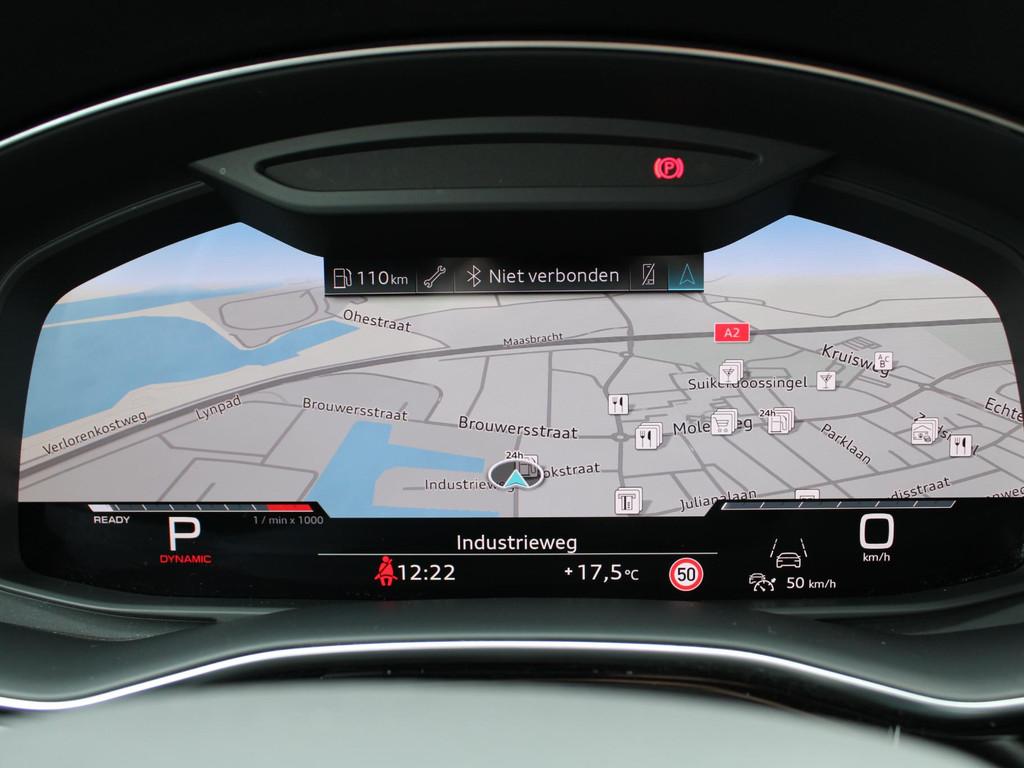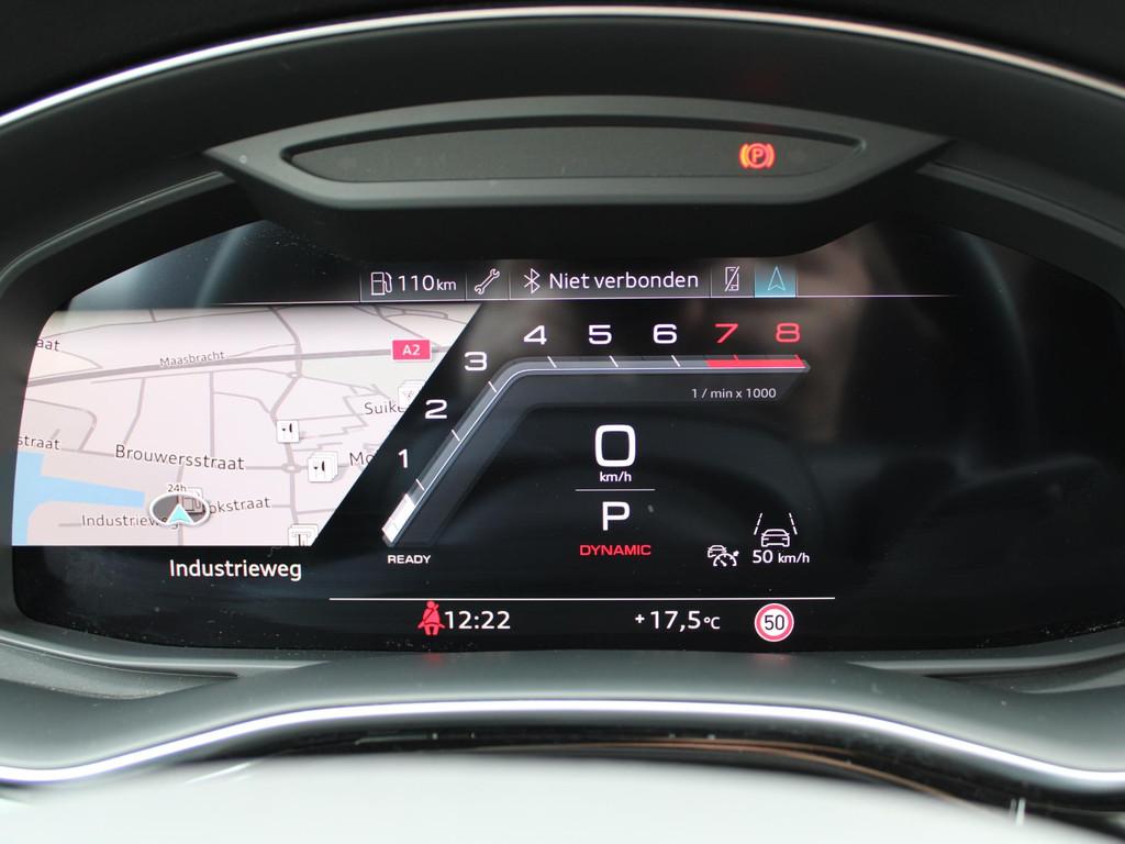 Achterbank plus (5KA), Anti Blokkeer Systeem, Anti doorSlip Regeling, Audi active lane assist incl file assistent (6I6), Audi smartphone interface (IU1), Automatische airconditioning met vier zones (9AE), Autonomous Emergency Braking, Blanke raamlijsten (4ZB), Buitenspiegelbuizing in carroseriekleur (6FA), Buitenspiegels, elektrisch inklapbaar met automatisch dimmende spiegels incl. geheugenfunctie (6XL), Comfortsleutel (PGC), Dakreling aluminium (3S1), Digitale radio ontvangst (QV3), Elektronisch Stabiliteits Programma, Head-up Display (KS1), LED achterlichten, LED dagrijverlichting, LED koplampen, Middenarmsteun vóór, comfort (6E6), Mythos zwart metallic (0E0E), Parkeerassistent (7X5), Privacy glas (QL5), RDW-leges, Rookvrij, Scheidingsnet (3CX), Stoelen, vóór en achter verwarmbaar (4A4), Stoelen vóór, elektrisch verstelbaar met geheugen voor bestuurdersstoel (PV3), WiFi voorbereiding, Zij-airbags achter (4X4), alarm klasse 3, audio installatie, bagagedek, bandenspanningscontrolesysteem, bestuurdersairbag, binnenspiegel automatisch dimmend, bots herkenning en activatie, buitenspiegels elektrisch inklapbaar, buitenspiegels elektrisch verstel- en verwarmbaar, centrale deurvergrendeling met afstandsbediening, connected services, cruise control, dakspoiler, dimlichten automatisch, electronic climate controle, elektrisch bedienbare achterklep, elektrisch bedienbare achterklep met sensorsturing, elektrische ramen voor en achter, elektrisch verstelbare bestuurdersstoel, elektrisch verstelbare passagiersstoel, grootlichtassistent (8G1), hill hold functie, hoofd airbag(s) achter, hoofd airbag(s) voor, hoofdsteunen actief, keyless entry, keyless start, lederen bekleding, lederen stuurwiel en versnellingspook, lendesteunen (verstelbaar), lichtmetalen velgen 18", luchtvering, multimedia-voorbereiding, navigatiesysteem full map, parkeersensor achter, passagiersairbag, regensensor, rijstrooksensor, ruitensproeiers verwarmbaar, schakelmogelijkheid aan stuurwiel, start/stop systeem, stuurbekrachtiging, stuur verstelbaar, stuurwiel multifunctioneel, verkeersbord detectie, volledig digitaal instrumentenpaneel, voorstoelen verwarmd, warmtewerend glas, zij airbag(s) voor