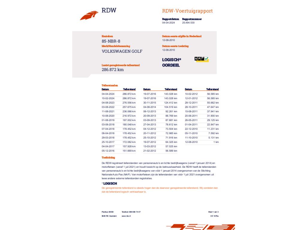 Mileage 286.872 NAP checked