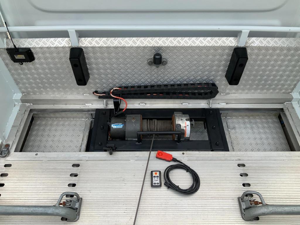 2 zitplaatsen rechtsvoor, 3 zitplaatsen, 1500 kilo laadvermogen, 3500 kilo geremd trekgewicht, Airbag bestuurder, Airco, All season banden, Aluminium rijplaten, Anti Blokkeer Systeem (ABS), Aux aansluiting, Buitenspiegels elektrisch verstelbaar, Centrale deurvergrendeling met afstandsbediening, Comfort-pakket, Cruise control, Elektrische ramen voor, Extra getint glas, Flyover met verlichting, Gereedschapskist, Lier met afstandbediening, Luchtvering, Power-pakket, Radio CD-speler, Rolego / Tijhof opbouw, Rookvrije auto, Startblokkering, Stoel met armsteun, Tomtom navigatie, Trekhaak, Werklampen, Wielstoppers 2x, Zwaaibalk