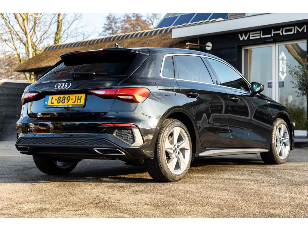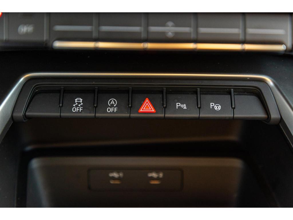 Accident Avoidance System, Achterbank in delen neerklapbaar, Airbag(s) hoofd achter, Airbag(s) hoofd voor, Airbag(s) side voor, Airbag bestuurder, Airbag passagier, Aluminium delen exterieur, Aluminium interieur afwerking, Anti Blokkeer Systeem (ABS), Armsteun voor, Audio installatie, Bandenspanningscontrolesysteem, Bestuurdersstoel in hoogte verstelbaar, Brake Assist System, Buitenspiegels elektrisch verstelbaar, Buitenspiegels in carrosseriekleur, Buitenspiegels verwarmbaar, Centrale deurvergrendeling met afstandsbediening, Connected services, Cruise control, DAB-ontvanger, Dakspoiler, Dimlichten automatisch, Draadloze telefoonlader, Electronic Brake Distribution (EBD), Electronic Stability Program (ESP), Electronic climate controle, Extra getint glas, Koplampen adaptief, LED achterlichten, LED dagrijverlichting, Lederen stuurwiel, Multimedia-voorbereiding, Navigatie full map, Parkeersensor achter, Passagiersstoel in hoogte verstelbaar, Radio, Regensensor, Rook en geurvrij interieur, Ruitensproeiers verwarmbaar, S Line exterieur, Sportonderstel, Start/stop systeem, Startblokkering, Stof/kunstlederen bekleding, Stuurbekrachtiging, Stuurhulp, Stuurwiel multifunctioneel, Telefoonintegratie premium, Tractie Controle Systeem (TCS), Verkeersbord detectie, Volledig digitaal instrumentenpaneel, Warmtewerende voorruit, WiFi voorbereiding
