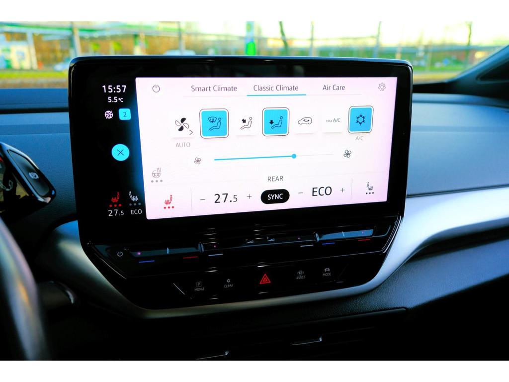 Bandenmaat: 235/50 R20; Laadvermogen: 636 kg; GVW: 2.660 kg; Max. trekgewicht: 1.000 kg (ongeremd 750 kg); LxBxH: 458 x 185 x 163 cm; Wielbasis: 277 cm; Accu: 77 kWh; Accu laden: Type 2, 3-fasen, 11 kW, 57 km actieradius per uur, compleet vol in 21 uur en 23 minuten; Accu snelladen: Combined Charging System, 403 km actieradius per uur, compleet vol in 3 uur en 30 minuten; Actieradius: 380 km; Acceleratie (0-100): 8,5 s; Topsnelheid: 160 km/u; Bekleding: Leder; Gemiddeld elektriciteitsverbruik: 20,263157894737 kWh/100km; Energielabel: A; Dealer onderhouden (onderhoudsboekjes aanwezig); 2 sleutels; Motorrijtuigenbelasting: € 270 - € 296 per kwartaal; Emissie: Zero emissie. Bijzonderheden: Tijdloos design en betrouwbare techniek zijn kernwaarden van het merk Volkswagen. Deze positieve eigenschappen ziet u allemaal terug in deze ID.4. Volkswagen-rijders weten het: een VW is gebouwd voor duurzaamheid en deze ID.4 ziet er dan ook uit als nieuw. Doe maar luxe! Neem plaats in de verwarmbare voorstoelen en voel hoe de massagefunctie zorgt voor verfrissende doorbloeding op de lange ritten. Zit u goed? De stoelen zijn eenvoudig instelbaar dankzij de elektrische bediening met geheugen. Met een druk op de knop gaat de elektrische achterklep open. Het glazen panoramadak laat meer licht binnen in het interieur en zorgt voor een magnifiek uitzicht naar buiten. Een verwarmd stuurwiel overbodige luxe? Wacht maar tot het kouder wordt! De koplampen met matrix LED-verlichting geven daglichtkwaliteit zonder tegenliggers te hinderen. Bij de uitrusting van deze auto horen onder meer 21 inch lichtmetalen velgen, warmtewerend glas, in delen neerklapbare achterbank, LED-achterlichten, verstelbare lendensteunen en verwarmde ruitensproeiers. De functie van de 360 graden camera in deze auto is om u een totaaloverzicht van de omgeving te geven, ongeacht hoe smal de straat of parkeerplek is. Met adaptive cruise control houdt de auto zelfstandig afstand tot uw voorligger. Een veiligheidsverhogende optie waarmee u comfortabel onderweg bent. Spraakbediening verhoogt de veiligheid en het gebruiksgemak. De auto luistert naar uw instructies en volgt ze op. Dankzij Connected Services weet u precies waar uw auto geparkeerd staat. Ook andere functies, zoals bandenspanning en brandstofniveau, zijn via de app altijd onder handbereik. De snelste of zuinigste weg? Het navigatiesysteem aan boord wijst de juiste weg! Deze Volkswagen is voorzien van achteropkomend verkeer waarschuwing, automatische airconditioning, draadloos opladen, DAB ontvangst, regensensor en keyless entry. De nieuwste veiligheidssystemen komen in deze Volkswagen ID.4 samen. Bij de veiligheidssystemen van deze auto hoort ook de verkeersbord-detectie. Die leest tijdens het rijden als het ware met u mee en attendeert u op de significante verkeersborden langs en boven de weg. Het Lane-keeping systeem garandeert dat u zich niet onverhoeds buiten de lijnen van de rijstrook begeeft. Mindert een voorligger onverwachts te veel vaart, dan komt de forward collision warning in actie en waarschuwt meteen. Ook helpen het head-up display, dodehoekdetectie, accident avoidance system, hill hold functie, vermoeidheidsherkenning en bandenspanningcontrolesysteem, uw rit tot een veilige rit te maken. U bent nieuwsgierig? Bel of mail ons dan direct om een proefrit met deze Volkswagen te reserveren. Bedrijfsinformatie: Wij hebben een handelsactie waarbij we werken met scherpe, vaste zo meeneemprijzen. Inruil is daarbij uiteraard mogelijk, tegen handelsprijzen. Heeft u vragen over deze of een van onze andere occasions? Wij helpen u graag verder. U kunt rechtstreeks contact opnemen met ons verkoopteam via tel. 0321-337296, whatsapp 06-82731846 of een e-mail sturen naar verkoop@flevomobiel.nl. Wij zijn u graag van dienst! Bij de aankoop van een auto gaat het niet alleen om de auto zelf, minstens zo belangrijk is de service en garantie. Wij weten bij Flevo Mobiel als geen ander dat de afweging voor service/garantie voor iedere klant anders ligt. Om deze reden vermelden wij onze zekerheidspakketten los van de verkoopprijs van de auto. U heeft als klant zelf de keuze voor één van onze zekerheidspakketten, elk met z’n specifieke kenmerken en bijbehorende prijs. Bekijk op onze website de kenmerken van de pakketten “Standaard”, ‘’Budget”, “Premium” of ”Deluxe”. Alle moeite is genomen om de informatie op deze internetsite zo accuraat en actueel mogelijk weer te geven. Fouten zijn echter nooit uit te sluiten. Vertrouw daarom niet alleen op deze informatie, maar controleer bij aankoop de zaken die uw beslissing zouden kunnen beïnvloeden. Aan de advertentie kunnen geen rechten ontleend worden.