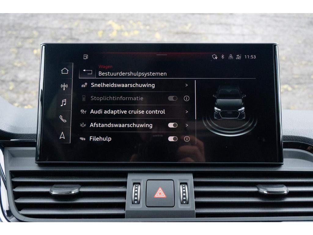 "Lichtmetalen velgen 5-spaaks 20""", Accident Avoidance System, Achterbank in delen neerklapbaar, Achterbank verstelbaar, Achteruitrijcamera, Airbag(s) hoofd achter, Airbag(s) hoofd voor, Airbag(s) side voor, Airbag bestuurder, Airbag passagier, Airco automatisch, Airco separaat achter, Alarmsysteem, Aluminium delen exterieur, Aluminium interieur afwerking, Anti Blokkeer Systeem (ABS), Armsteun achter, Armsteun voor, Audio installatie, Autotelefoonvoorbereiding met Bluetooth, Bandenspanningscontrolesysteem, Binnenspiegel automatisch dimmend, Boordcomputer, Bots waarschuwing systeem, Brake Assist System, Buitenspiegels elektrisch inklapbaar, Buitenspiegels elektrisch verstelbaar, Buitenspiegels in carrosseriekleur, Buitenspiegels verwarmbaar, Centrale deurvergrendeling met afstandsbediening, Cruise control, Cruise control adaptief met Stop&Go, DAB-ontvanger, Dakrails, Dimlichten automatisch, Electronic Brake Distribution (EBD), Electronic Stability Program (ESP), Elektrisch bedienbare achterklep, Elektrisch bedienbare achterklep met sensorsturing, Elektrische ramen achter, Elektrische ramen voor, Extra getint glas, File-assistent, Hill hold-functie, Interieur voorverwarmingsinstallatie, Keyless-pakket, Keyless entry, Koplampreiniging, LED achterlichten, LED dagrijverlichting, Lederen/stoffen bekleding, Lederen sportstuur, Lederen stuurwiel, Lederen versnellingspook, Matrix LED koplampen, Metallic lak, Multimedia-voorbereiding, Navigatie full map, Oplaadmogelijkheid, Parkeer-assistent, Parkeersensor achter, Parkeersensor voor, Regensensor, Rijstrooksensor met correctie, Ruitensproeiers verwarmbaar, S Line exterieur, Schakelmogelijkheid aan stuurwiel, Sportstoelen, Start/stop systeem, Startblokkering, Stuur verstelbaar, Stuurwiel multifunctioneel, Telefoonintegratie, Telefoonintegratie premium, Tour pakket, Tractie Controle Systeem (TCS), Uitwijk assistent, Verkeersbord detectie, Vervolgbotsing preventie, Verwarmde voorstoelen, Volledig digitaal instrumentenpaneel, Warmtewerend glas, WiFi voorbereiding