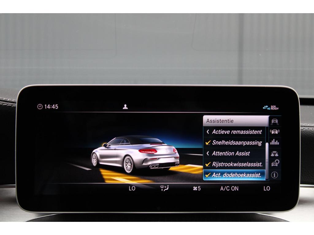 "Lichtmetalen velgen 18""", AMG-styling, Accident Avoidance System, Achteropkomend verkeer waarschuwing, Achterspoiler, Adaptief Demping Systeem (ADS), Airbag(s) hoofd voor, Airbag(s) side achter, Airbag(s) side voor, Airbag bestuurder, Airbag passagier, Airco automatisch, Aluminium interieur afwerking, Anti Blokkeer Systeem (ABS), Armsteun voor, Audio installatie premium, Autotelefoonvoorbereiding met Bluetooth, Bandenspanningscontrolesysteem, Binnenspiegel automatisch dimmend, Bots waarschuwing systeem, Buitenspiegel(s) automatisch dimmend, Buitenspiegels elektrisch inklapbaar, Buitenspiegels elektrisch verstelbaar, Buitenspiegels met verlichting, Buitenspiegels verwarmbaar, Connected services, Cruise control, Cruise control adaptief met Stop&Go, DAB-ontvanger, Dimlichten automatisch, Dodehoek detector, Draadloze telefoonlader, Electronic Brake Distribution (EBD), Electronic Stability Program (ESP), Elektrisch bedienbare kap, Elektrische ramen voor, Elektrisch verstelbare stoel(en) met geheugen, Grootlicht-assistent, Head-up display, Hill hold-functie, Keyless entry, Keyless start, LED achterlichten, LED dagrijverlichting, Lederen bekleding, Lederen stuurwiel, Lendesteunen (verstelbaar), Matrix LED koplampen, Multimedia-voorbereiding, Navigatie-systeem full map + hard disk, Nekverwarming, Parkeer-assistent, Parkeersensor achter, Parkeersensor voor, Regensensor, Rijstrooksensor, Rijstrooksensor met correctie, Rondomzicht camera, Schakelmogelijkheid aan stuurwiel, Speciale kleur, Sportstoelen, Sportstuur, Spraakbediening, Start/stop systeem, Startblokkering, Stoel ventilatie voor, Stof/kunstlederen bekleding, Stuurbekrachtiging snelheidsafhankelijk, Stuurhulp, Stuurwiel multifunctioneel, Telefoonintegratie premium, Tractie Controle Systeem (TCS), Variabele stuuroverbrenging, Verkeersbord detectie, Verwarmde voorstoelen, Volledig digitaal instrumentenpaneel, Warmtewerend glas, Windscherm