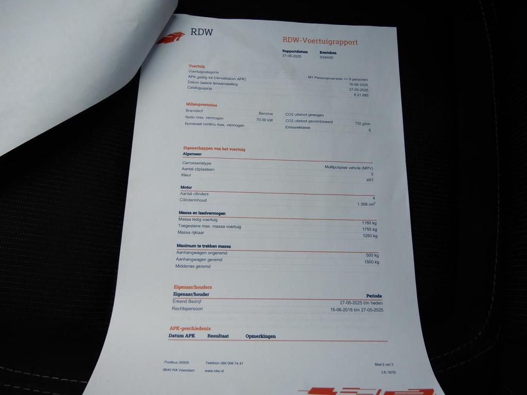 5 deurs, 6-versnellingen, Aanhanger-assistent, Achterbank in delen neerklapbaar, Airbag(s) hoofd achter, Airbag(s) hoofd voor, Airbag(s) side voor, Airbag bestuurder, Airbag passagier, Airco, Anti Blokkeer Systeem (ABS), Armsteun voor, Autotelefoonvoorbereiding met Bluetooth, Bestuurdersstoel in hoogte verstelbaar, Brake Assist System, Buitenspiegels elektrisch verstelbaar, Buitenspiegels in carrosseriekleur, Buitenspiegels verwarmbaar, Bumpers in carrosseriekleur, Centrale deurvergrendeling met afstandsbediening, Cruise control, Dakrails, Electronic Brake Distribution (EBD), Electronic Stability Program (ESP), Elektrische ramen achter, Elektrische ramen voor, Hill hold-functie, LED dagrijverlichting, Lederen stuurwiel, Lederen versnellingspook, Lichtmetalen velgen 16", Multimedia-voorbereiding, Radio, Startblokkering, Stuurbekrachtiging snelheidsafhankelijk, Stuur verstelbaar, Stuurwiel multifunctioneel, achterbank, incl boekjes, isofix, trekhaak