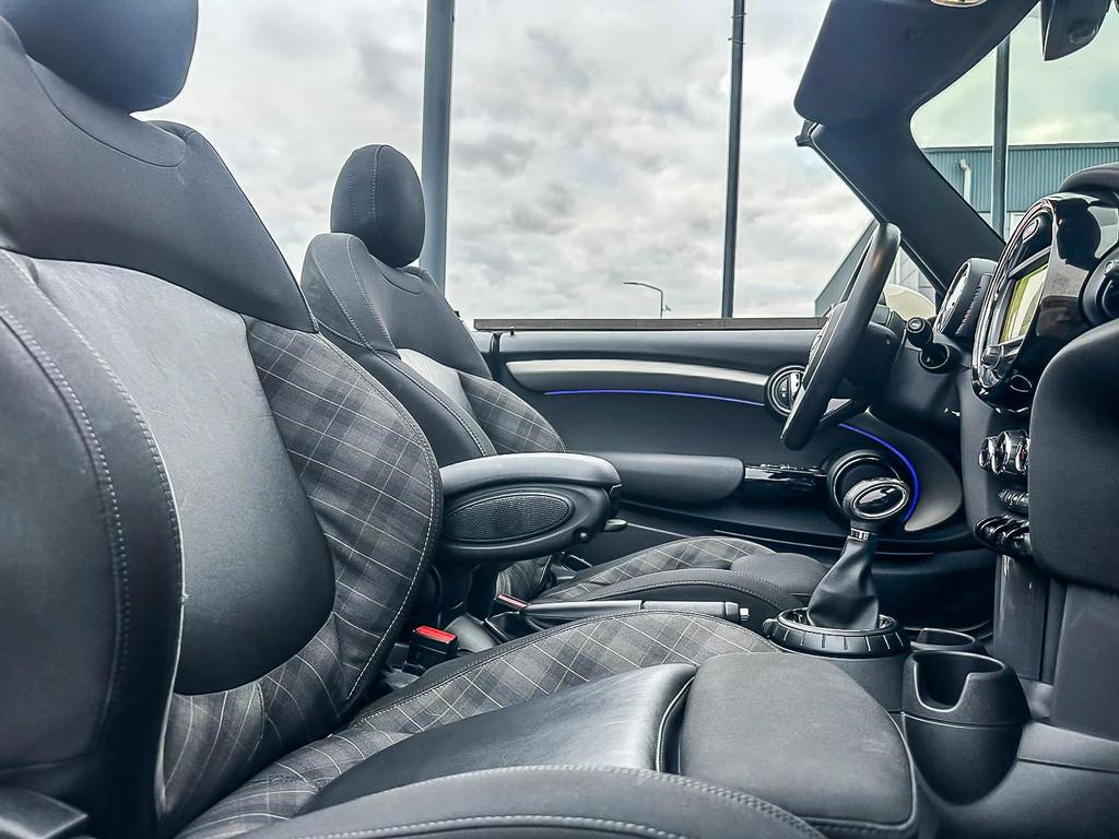 "Lichtmetalen velgen 17""", 17" S velgen, APK, Achterbank in delen neerklapbaar, Airbag(s) hoofd voor, Airbag(s) side voor, Airbag bestuurder, Airbag passagier, Alarm klasse 3, Anti Blokkeer Systeem, Anti Blokkeer Systeem (ABS), Armsteun voor, Audio installatie, Autotelefoonvoorbereiding met Bluetooth, Bandenspanningscontrolesysteem, Bestuurdersstoel in hoogte verstelbaar, Boordcomputer, Buitenspiegels elektrisch verstelbaar, Buitenspiegels verwarmbaar, Climate control, Cruise control, Electronic Brake Distribution, Electronic Stability Program, Electronic Stability Program (ESP), Elektrisch bedienbare kap, Elektrische ramen voor, Half lederen interieur, Hill hold-functie, Keyless entry, LED koplampen, LED mistlampen, Lederen/stoffen bekleding, Lederen stuurwiel, Mini connected, Multimedia-voorbereiding, Navigatie, Navigatie-systeem full map, Navigatie-systeem full map + hard disk, Parkeersensor achter, Parkeersensoren, Passagiersstoel in hoogte verstelbaar, Regensensor, Ruitensproeiers verwarmbaar, Sportstoelen, Sportstuur, Start/stop systeem, Stuur verstelbaar, Stuurwiel multifunctioneel, Verwarmde voorstoelen, actieve voetgangersbeveiliging, black pack, cabriokap elektrisch, dealer onderhouden, donker dakhemel, garantie, ledverlichting, lichtpakket, nieuwstaat, sport button