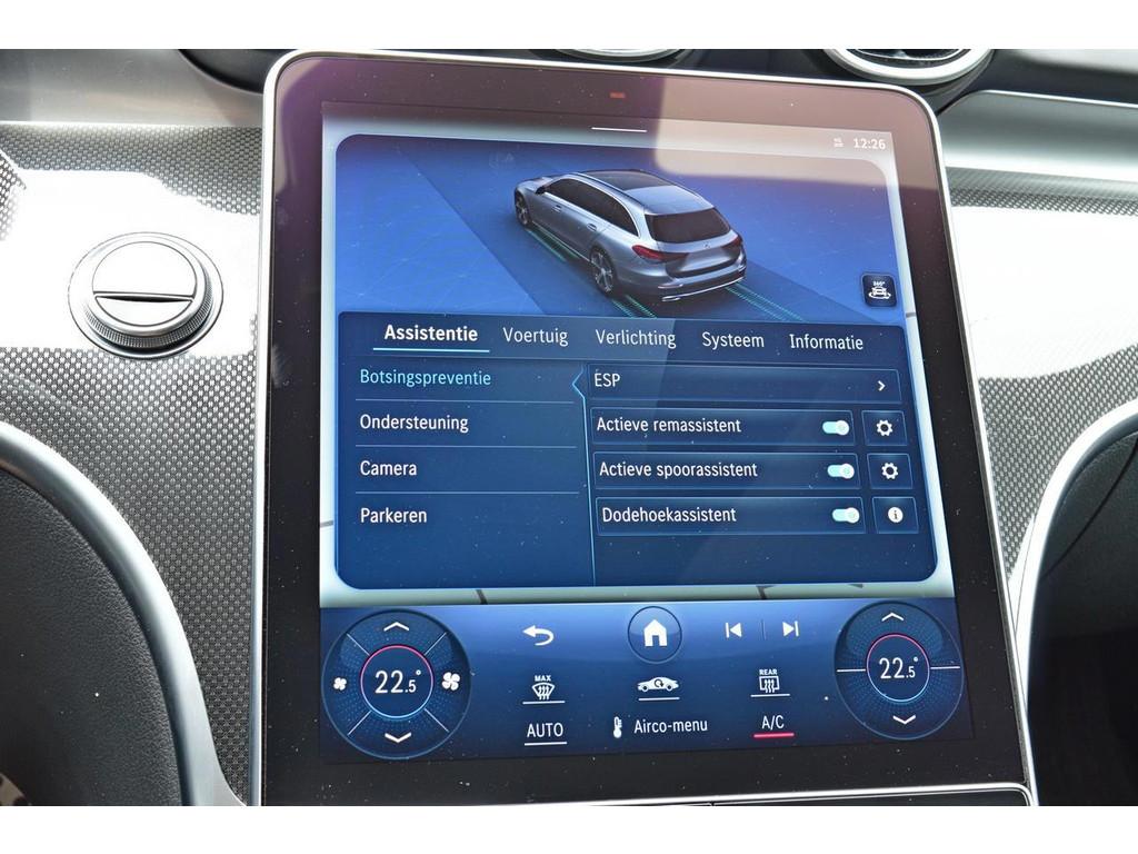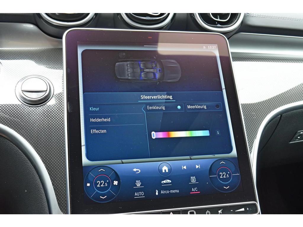 "Lichtmetalen velgen 5-spaaks 18""", AMG-styling, Accident Avoidance System, Achterbank in delen neerklapbaar, Achteruitrijcamera, Actief koolfilter (geurfilter), Airbag(s) hoofd, Airbag(s) side voor, Airco automatisch, Akoestische waarschuwing veiligheidsgordel, Alarmsysteem, Anti Blokkeer Systeem (ABS), Automatische dimmende binnenspiegel, Automatische inschakeling voor rijverlichting, Bandenspanningscontrolesysteem, Binnenspiegel automatisch dimmend, Bots waarschuwing systeem, Buitenspiegel(s) automatisch dimmend, Buitenspiegels elektrisch inklapbaar, Buitenspiegels elektrisch verstelbaar, Buitenspiegels met verlichting, Buitenspiegels verwarmbaar, Centrale deurvergrendeling met afstandsbediening, Chroom delen exterieur, Combi-instrument met aanduiding voor niet-gedragen gordels op de achterzitplaatsen, Connected services, Cruise control, Cruise control adaptief met Stop&Go, DAB+, DAB-ontvanger, DYNAMIC SELECT, Dagrijverlichting, Dakdraagsysteem, Dakrails, Dodehoekassistent, Dodehoekdetectie met correctie, Draadloze telefoonlader, Electronic Stability Program (ESP), Elektrisch bedienbare achterklep, Elektrisch bedienbare ramen voor en achter, Elektrische handrem, Elektrische ramen achter, Elektrische ramen voor, Elektrisch verstelbare rugleuning, Elektronische remkrachtverdeling, Emergency Call, Extra getint glas, Front camera, Grootlicht-assistent, Hemelbekleding Anthrazit, IsoFix, KeylessGo, Keyless start, Kleur zwart, Klimaatbediening, LED dagrijverlichting, LED koplampen, LED koplampen met laser, Lendesteunen (verstelbaar), Luxe lederen bekleding, MP3 audio, Mercedes connect me - Remote Online, Metallic lak, Middenarmsteun voor, Multimedia-voorbereiding, Navigatie full map, Parkeer-assistent, Parkeersensor achter, Parkeersensor voor, Radio, Regensensor, Rijstrooksensor met correctie, Schakelmogelijkheid aan het stuurwiel, Set winterbanden, Sfeerverlichting, Sportonderstel, Sportstuur, Spraakbediening, Startblokkering, Stoelbekleding / bekleding: leer / alcantara, Stoelverwarming voor de bestuurder en voorpassagier, Stuurhulp, Stuurwiel multifunctioneel, Telefoonintegratie premium, Touchscreen, Verkeersbord detectie, Verwarmde voorstoelen, Volledig digitaal instrumentenpaneel
