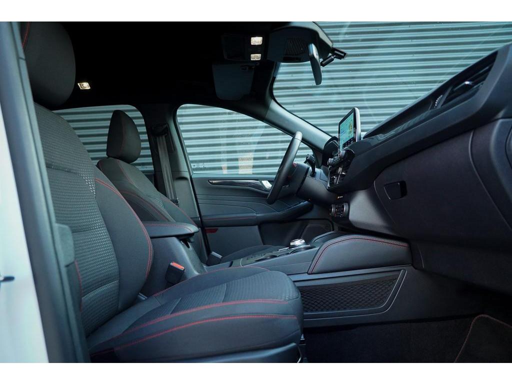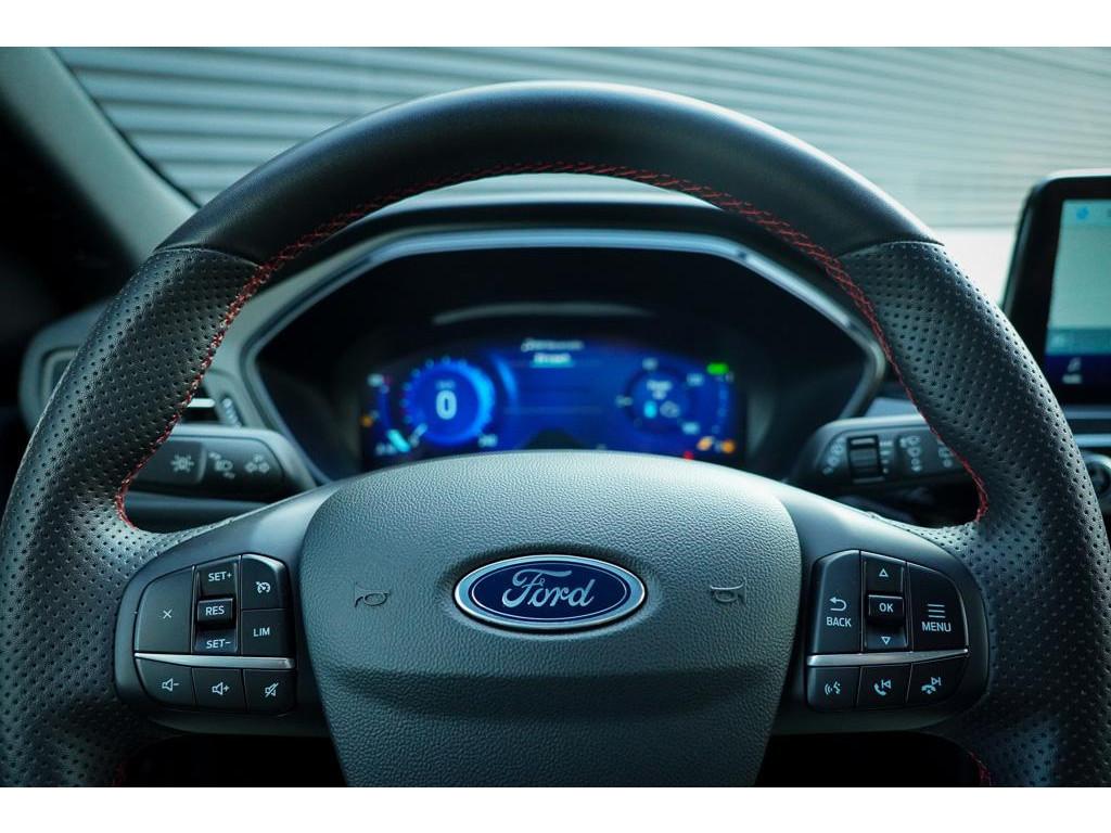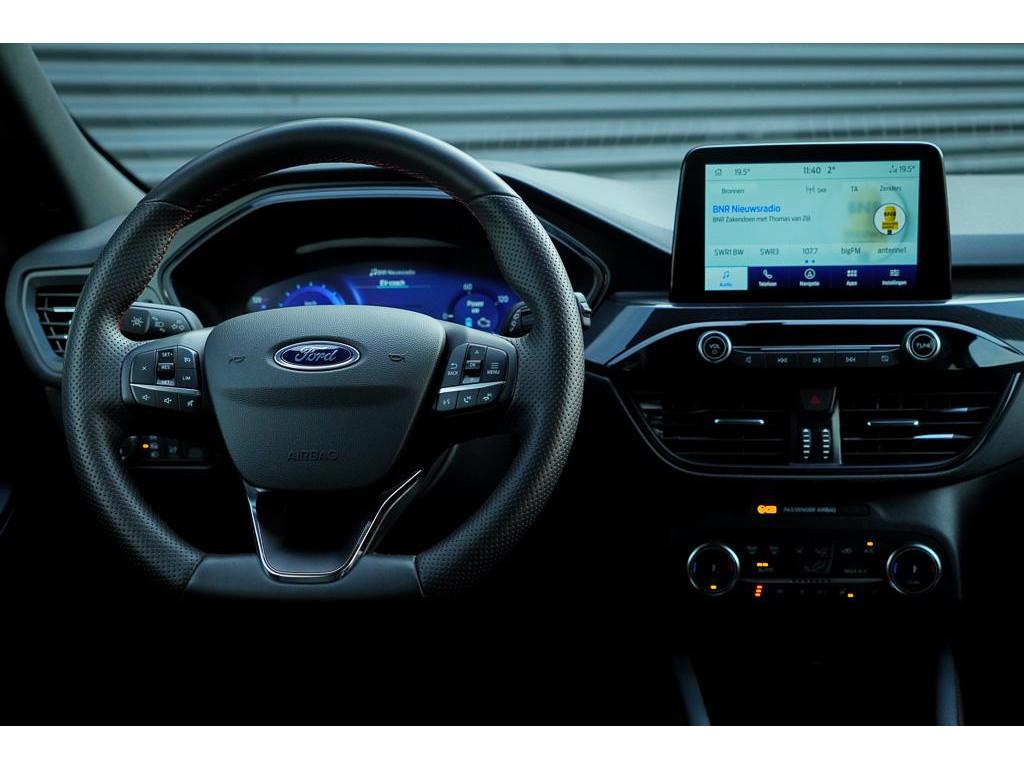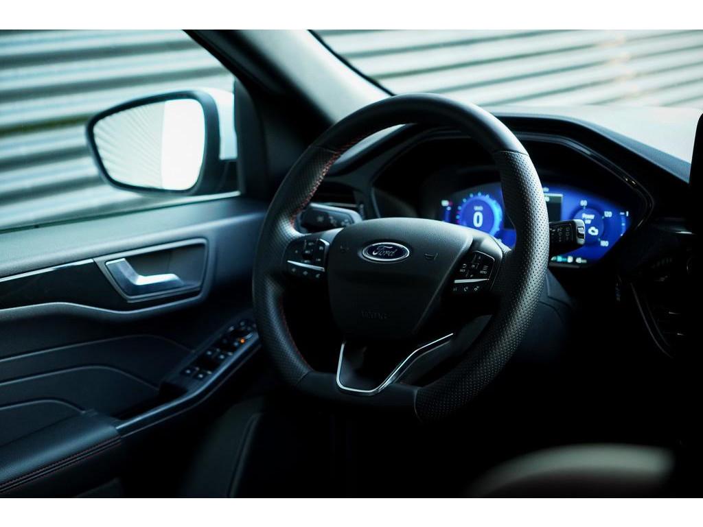 12.3 inch personaliseerbare Digital Cockpit (HCAAV), 18 inch lichtmetalen velgen 5x2-spaaks in Rock Metallic (D2UB3), Achterbank in 2 delen (60/40) neerklapbaar en verschuifbaar in lengte richting (BWGAD), Achterspoiler (BPFAJ), Active Braking/Pre-Collision Assist (voor auto's, voetgangers en fietsers) (FBFAB), Anti Blokkeer Systeem, Anti doorSlip Regeling, Apple Carplay/Android Auto, Automatisch dimmende binnenspiegel (BSBAF), Automatische airco met 3 zones en bediening voor achterpassagiers (AC G), Automatisch inschakelende dimlichten (JEDAC), Bandenspanningscontrole systeem (D19AG), Blazer Blue (PN3JV), Cruise Control incl. Adjustable Speed Limiting Device (ASLD) (GTDAJ), DAB ontvanger, Dakreling Zwart (BLYAZ), Dubbele uitlaat achter - Sportief Design (F2AEJ), Elektrisch bedienbare portierramen rondom (B2CAF), Elektrisch verstelbare, verwarmbare en inklapbare buitenspiegels met instapverlichting (BSHCZ), Elektrisch verwarmbare voorstoelen (BY1AB), Elektronisch Stabiliteits Programma, FordKeyless Entry op de voorportieren (incl. motion sensor in de sleutel) (CBGAL), FordPass Connect - Embedded Modem (HKSAD), FordPower startbutton (CBGAJ), In hoogte verstelbare bestuurdersstoel inclusief lendensteunverstelling (BYPAL), In hoogte verstelbare passagiersstoel (BYQAL), LED achterlichten (JDAAB), LED dagrijverlichting (JBCAB), LED mistlampen voor - uniek design (JBKAN), Lane Departure Warning/Lane Keeping Aid en Road Edge Detection (HLNAB), Lederen stuurwiel in ST-Line design met afgeplatte onderkant (GTACW), Middenconsole met armsteun en 2 USB aansluitpunten op achterzijde (B5WAL), Navigatiesysteem met 8inch touchscreen, SYNC 3 Bluetooth®/Voice Control, DAB+ (ICFAH), Oplaadkabel voor laden aan thuisstopcontact 8-10A 1 fase (HTSAJ), Parkeersensoren voor en achter met achteruitrijcamera (J3KAB), Privacy Glass (B2GAE), Regensensor (CFFAN), Sportieve unieke ST-Line zijskirts (BMDAG), Sportieve wielophanging: 10mm verlaagd (DWAAC), Sportstoelen voor (11UZH), Trekhaak, afneembaar, Uitschakelbare passagiersairbag t.b.v. kinderzitje (CPQAB), WiFi voorbereiding, Winter Pack (BY3AB), achterbank verwarmd, alarm klasse 1(startblokkering), bestuurdersairbag, boordcomputer, chroom delen exterieur, hemelbekleding donker, hill hold functie, hoofd airbag(s) achter, hoofd airbag(s) voor, knie airbag(s), koplampreiniging, lederen stuurwiel, multimedia-voorbereiding, multimedia scherm klein, parkeersensor achter, parkeersensor voor, radio, stuurbekrachtiging snelheidsafhankelijk, stuur verstelbaar, stuurwiel multifunctioneel, stuurwiel verwarmd, vervolgbotsing preventie, verwarmde voorruit, zij airbag(s) voor