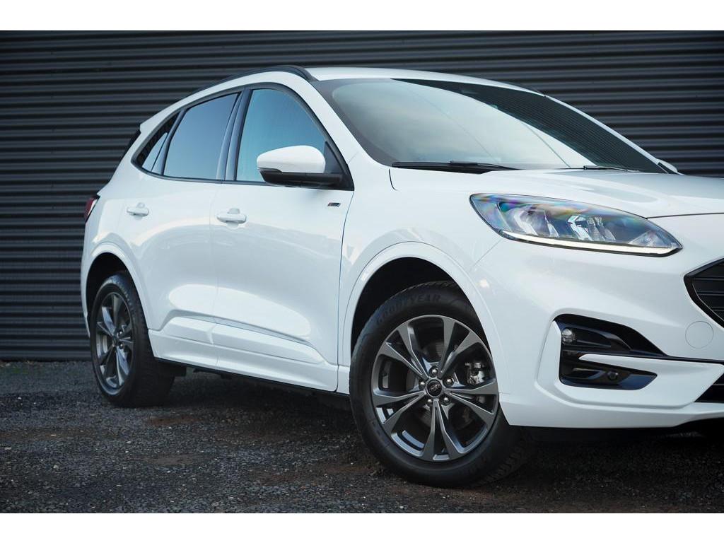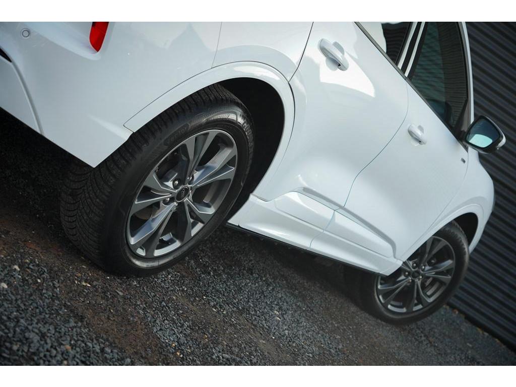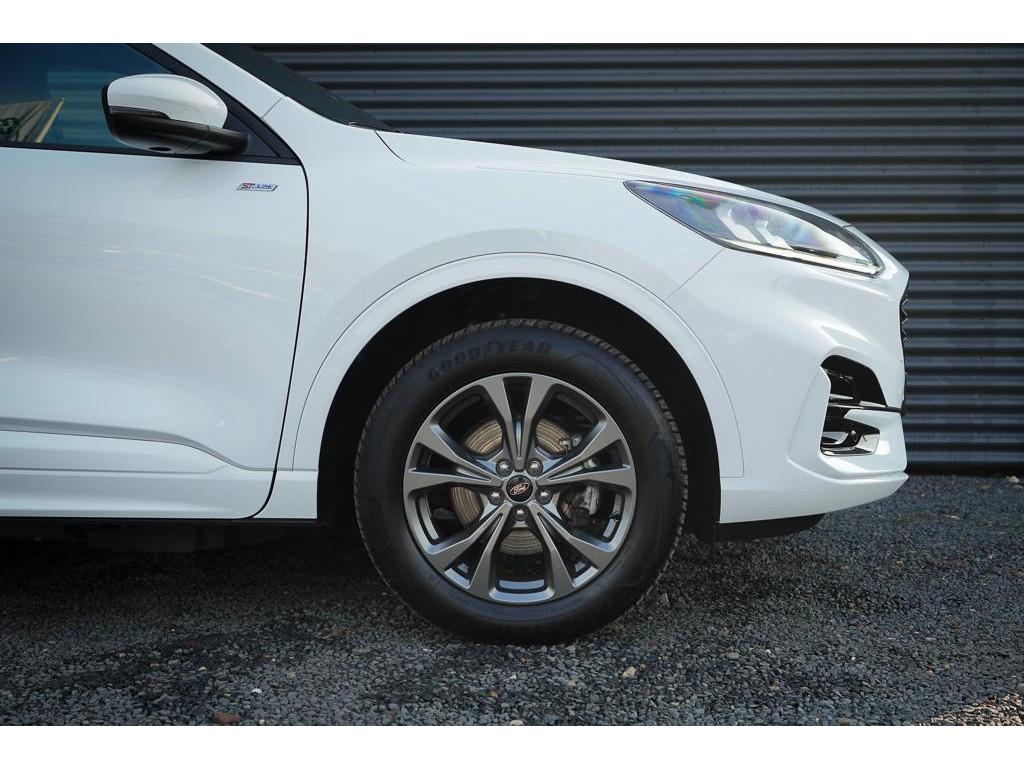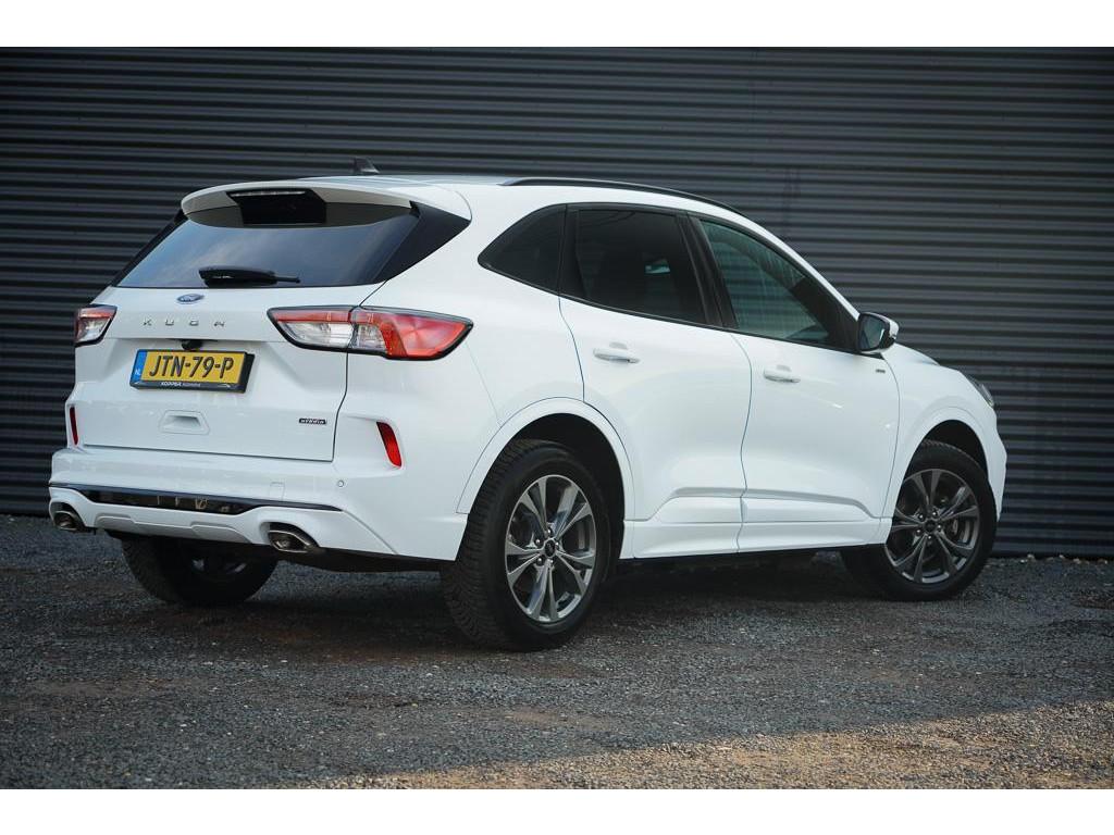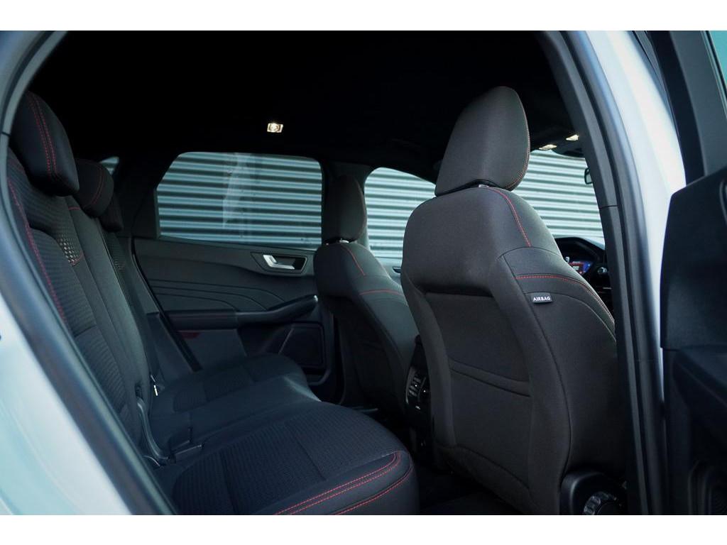 12.3 inch personaliseerbare Digital Cockpit (HCAAV), 18 inch lichtmetalen velgen 5x2-spaaks in Rock Metallic (D2UB3), Achterbank in 2 delen (60/40) neerklapbaar en verschuifbaar in lengte richting (BWGAD), Achterspoiler (BPFAJ), Active Braking/Pre-Collision Assist (voor auto's, voetgangers en fietsers) (FBFAB), Anti Blokkeer Systeem, Anti doorSlip Regeling, Apple Carplay/Android Auto, Automatisch dimmende binnenspiegel (BSBAF), Automatische airco met 3 zones en bediening voor achterpassagiers (AC G), Automatisch inschakelende dimlichten (JEDAC), Bandenspanningscontrole systeem (D19AG), Blazer Blue (PN3JV), Cruise Control incl. Adjustable Speed Limiting Device (ASLD) (GTDAJ), DAB ontvanger, Dakreling Zwart (BLYAZ), Dubbele uitlaat achter - Sportief Design (F2AEJ), Elektrisch bedienbare portierramen rondom (B2CAF), Elektrisch verstelbare, verwarmbare en inklapbare buitenspiegels met instapverlichting (BSHCZ), Elektrisch verwarmbare voorstoelen (BY1AB), Elektronisch Stabiliteits Programma, FordKeyless Entry op de voorportieren (incl. motion sensor in de sleutel) (CBGAL), FordPass Connect - Embedded Modem (HKSAD), FordPower startbutton (CBGAJ), In hoogte verstelbare bestuurdersstoel inclusief lendensteunverstelling (BYPAL), In hoogte verstelbare passagiersstoel (BYQAL), LED achterlichten (JDAAB), LED dagrijverlichting (JBCAB), LED mistlampen voor - uniek design (JBKAN), Lane Departure Warning/Lane Keeping Aid en Road Edge Detection (HLNAB), Lederen stuurwiel in ST-Line design met afgeplatte onderkant (GTACW), Middenconsole met armsteun en 2 USB aansluitpunten op achterzijde (B5WAL), Navigatiesysteem met 8inch touchscreen, SYNC 3 Bluetooth®/Voice Control, DAB+ (ICFAH), Oplaadkabel voor laden aan thuisstopcontact 8-10A 1 fase (HTSAJ), Parkeersensoren voor en achter met achteruitrijcamera (J3KAB), Privacy Glass (B2GAE), Regensensor (CFFAN), Sportieve unieke ST-Line zijskirts (BMDAG), Sportieve wielophanging: 10mm verlaagd (DWAAC), Sportstoelen voor (11UZH), Trekhaak, afneembaar, Uitschakelbare passagiersairbag t.b.v. kinderzitje (CPQAB), WiFi voorbereiding, Winter Pack (BY3AB), achterbank verwarmd, alarm klasse 1(startblokkering), bestuurdersairbag, boordcomputer, chroom delen exterieur, hemelbekleding donker, hill hold functie, hoofd airbag(s) achter, hoofd airbag(s) voor, knie airbag(s), koplampreiniging, lederen stuurwiel, multimedia-voorbereiding, multimedia scherm klein, parkeersensor achter, parkeersensor voor, radio, stuurbekrachtiging snelheidsafhankelijk, stuur verstelbaar, stuurwiel multifunctioneel, stuurwiel verwarmd, vervolgbotsing preventie, verwarmde voorruit, zij airbag(s) voor