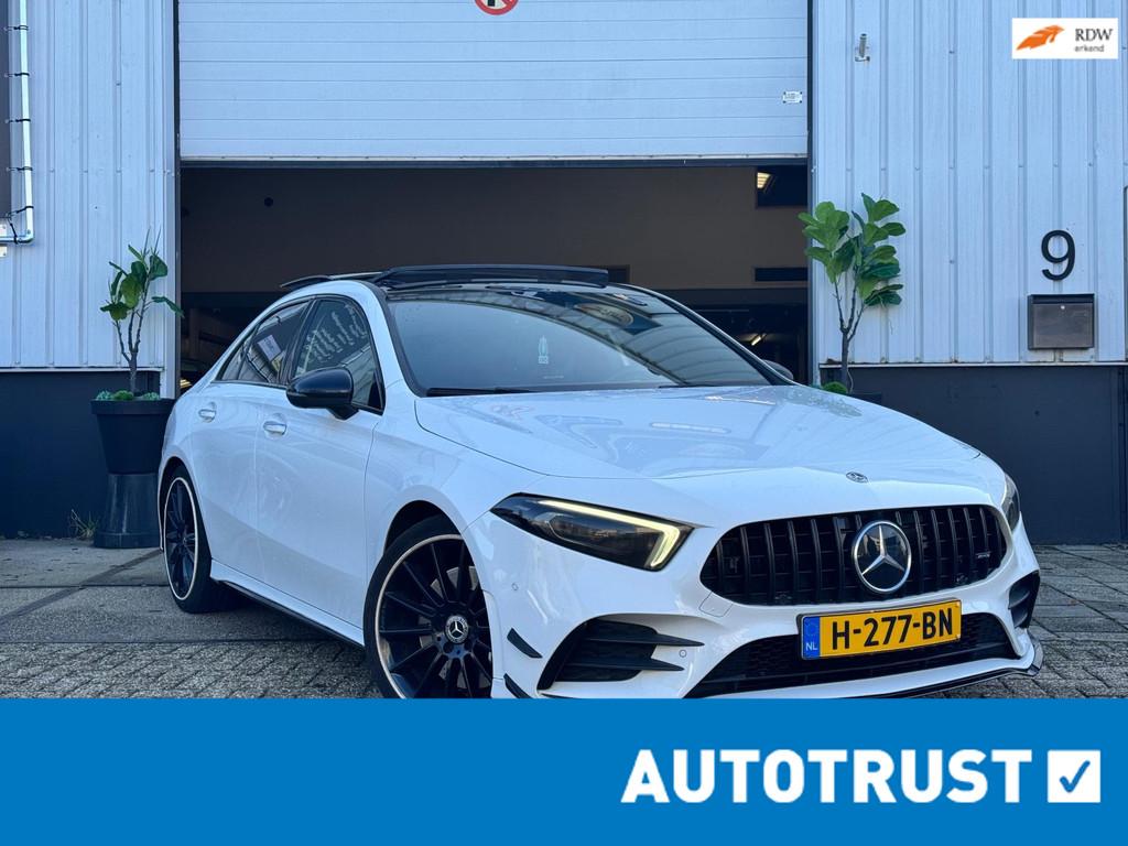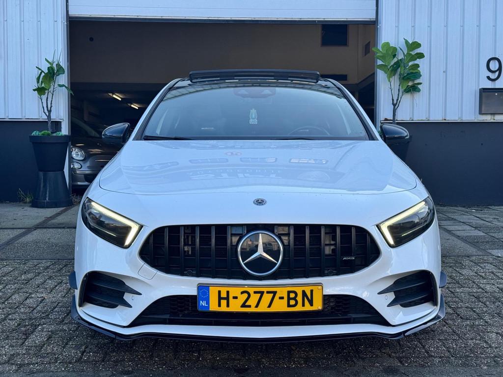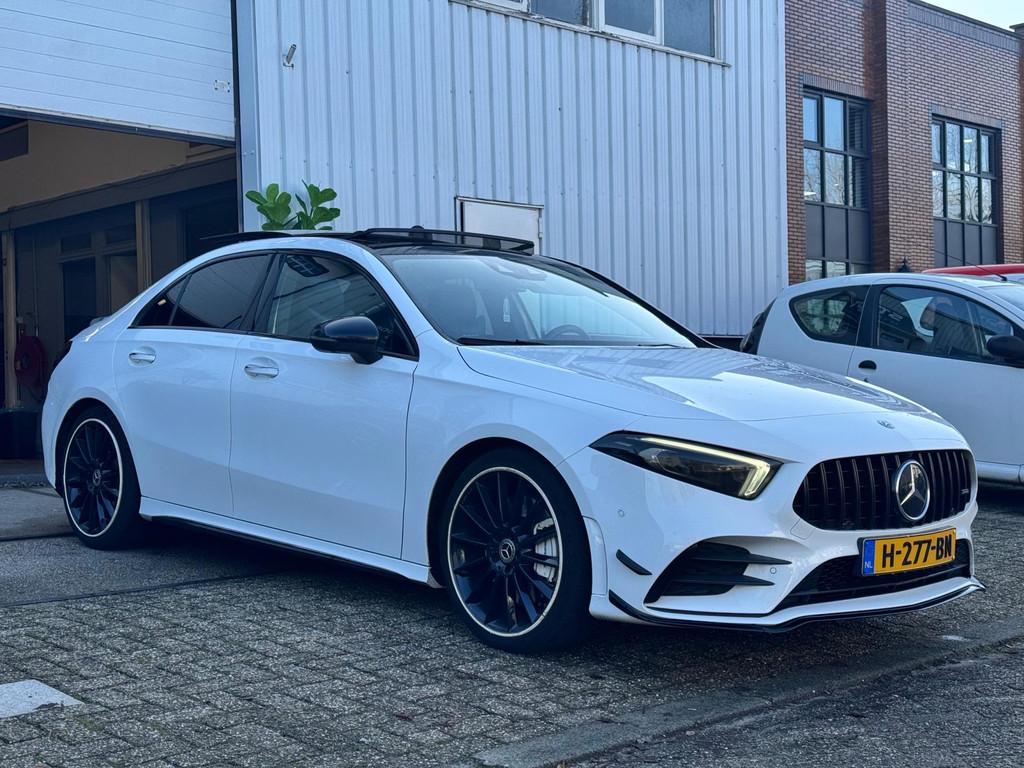 "Lichtmetalen velgen 17""", "Lichtmetalen velgen 18""", AMG-styling, Accident Avoidance System, Achterbank in delen neerklapbaar, Achteruitrij assistent, Achteruitrijcamera, Adaptief Demping Systeem (ADS), Airbag(s) hoofd achter, Airbag(s) hoofd voor, Airbag(s) knie, Airbag(s) side voor, Airbag bestuurder, Airbag passagier, Airco automatisch, Alarm klasse 3, Anti Blokkeer Systeem (ABS), Armsteun achter, Armsteun voor, Audio installatie, Audio installatie premium, Bandenspanningscontrolesysteem, Binnenspiegel automatisch dimmend, Bots herkenning en activatie, Bots waarschuwing systeem, Brake Assist System, Buitenspiegel(s) automatisch dimmend, Buitenspiegels elektrisch inklapbaar, Chroom delen exterieur, Comfortstoel(en), Connected services, Cruise control, Cruise control adaptief met Stop&Go, Dimlichten automatisch, Dodehoekdetectie met correctie, Dodehoek detector, Draadloze telefoonlader, Electronic Stability Program (ESP), Electronic climate controle, Elektrisch glazen panorama-dak, Elektrisch verstelbare stoel(en) met geheugen, Extra getint glas, Grootlicht-assistent, Head-up display, Keyless entry, Keyless start, Kleur wit, Kruisend verkeer detectie, LED dagrijverlichting, Lederen bekleding, Lederen stuurwiel, Lendesteunen (verstelbaar), Matrix LED koplampen, Metallic lak, Multimedia-voorbereiding, Navigatie-systeem full map + hard disk, Parkeer-assistent, Parkeersensor achter, Parkeersensor voor, Premium kleur, Regensensor, Rijstrooksensor met correctie, Rondomzicht camera, Side skirts, Sportstoelen, Sportstuur, Spraakbediening, Start/stop systeem, Startblokkering, Stof/kunstlederen bekleding, Stuurhulp, Stuurwiel multifunctioneel, Telefoonintegratie premium, Uitwijk assistent, Variabele stuuroverbrenging, Verkeersbord detectie, Verwarmde voorstoelen, Volledig digitaal instrumentenpaneel, Warmtewerend glas, WiFi voorbereiding