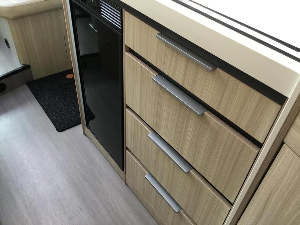Airbag, Airco, Alarm, Anti Blokkeer Systeem (ABS), Autotelefoonvoorbereiding, Boordcomputer, Buitenspiegels elektrisch inklapbaar, Buitenspiegels elektrisch verstelbaar, Centrale deurvergrendeling, Cruise control, Douche, Elektrische ramen, Extra verlichting, Hoofdsteunen voor, Keukenblok, Lederen bekleding, Lederen stuurwiel, Luifel, Navigatiesysteem, Satelliet antenne, Standverwarming, Startblokkering, Stuurbekrachtiging, Toilet, Voortent, Zonnedak
