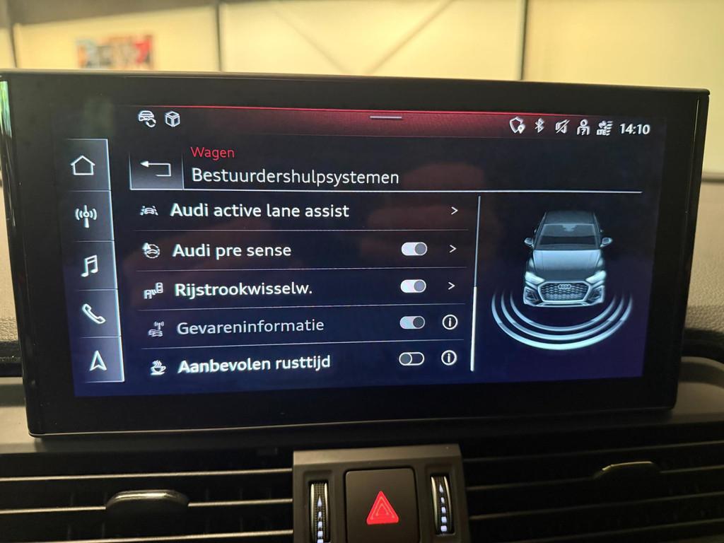 1e eigenaar, Accident Avoidance System, Achterbank in delen neerklapbaar, Achterbank verstelbaar, Achterbank verwarmd, Achteruitrij assistent, Achteruitrijcamera, Airbag(s) hoofd achter, Airbag(s) hoofd voor, Airbag(s) side voor, Airbag bestuurder, Airbag passagier, Airco automatisch, Airco separaat achter, Alarmsysteem, Aluminium delen exterieur, Aluminium interieur afwerking, Anti Blokkeer Systeem (ABS), Apple CarPlay, Armsteun achter, Armsteun voor, Assistentie Pakket, Audio installatie, Autotelefoonvoorbereiding met Bluetooth, B&O SOUNDSYSTEM, Bandenspanningscontrolesysteem, Binnenspiegel automatisch dimmend, Boordcomputer, Bots waarschuwing systeem, Brake Assist System, Buitenspiegel(s) automatisch dimmend, Buitenspiegels elektrisch verstelbaar, Buitenspiegels in carrosseriekleur, Buitenspiegels verwarmbaar, Centrale deurvergrendeling met afstandsbediening, City-pakket, Cruise control adaptief met Stop&Go, DAB-ontvanger, Dimlichten automatisch, Dodehoek detector, Electronic Brake Distribution (EBD), Electronic Stability Program (ESP), Elektrisch bedienbare achterklep, Elektrische ramen achter, Elektrische ramen voor, Elektrisch verstelbare voorstoel(en), Extra getint glas, File-assistent, Hill hold-functie, Interieur voorverwarmingsinstallatie, Koplampreiniging, LED achterlichten, LED dagrijverlichting, Lederen/stoffen bekleding, Lederen stuurwiel, Lederen versnellingspook, Luchtvering, Matrix LED koplampen, Metallic lak, Multimedia-voorbereiding, Navigatie full map, Oplaadmogelijkheid, Parkeer-assistent, Parkeersensor achter, Parkeersensor voor, RADIO MP3, Regensensor, Rijstrooksensor met correctie, Rondomzicht camera, Ruitensproeiers verwarmbaar, Schakelmogelijkheid aan stuurwiel, Sportstoelen, Start/stop systeem, Startblokkering, Stuur verstelbaar, Stuurwiel multifunctioneel, Telefoonintegratie, Telefoonintegratie premium, Tour pakket, Tractie Controle Systeem (TCS), USB AANSLUITING ACHTERBANK, Uitwijk assistent, Verkeersbord detectie, Vervolgbotsing preventie, Verwarmde voorstoelen, Volledig digitaal instrumentenpaneel, Warmtewerend glas, WiFi voorbereiding, achterklep electrisch, adaptive cruiscontrol, afleverkosten 350euro, ambient lighting, android auto, audi-connect, audi drive select, audi hold functie, audi music interface, audi pre-sense, audi smartfone interface, automaat, automatisch inparkeer hulp, black-optiek, dak hemel zwart, dealer onderhouden, digitale cockpit, dimlichten automatisch, isofix, keyless-entry, keyless-go, limit controlle, multimedia-input, nationale autopas, navigatie groot scherm, onderhoud digitaal, ruitenwisser achter, s-line interieur, s-line onderstel, s-line pakket, servostuur, sfeer verlichting, stand kachel, stoel memory links, tft scherm, toerenteller, touchscreen, usb, vierwielaandrijving (4x4)