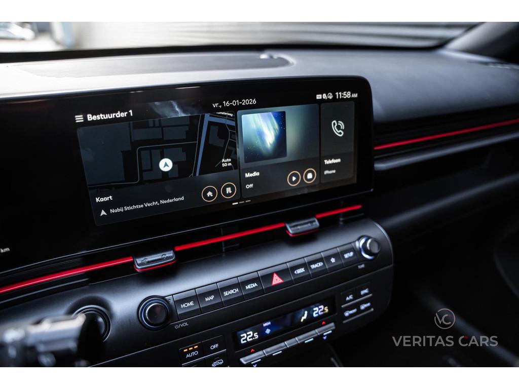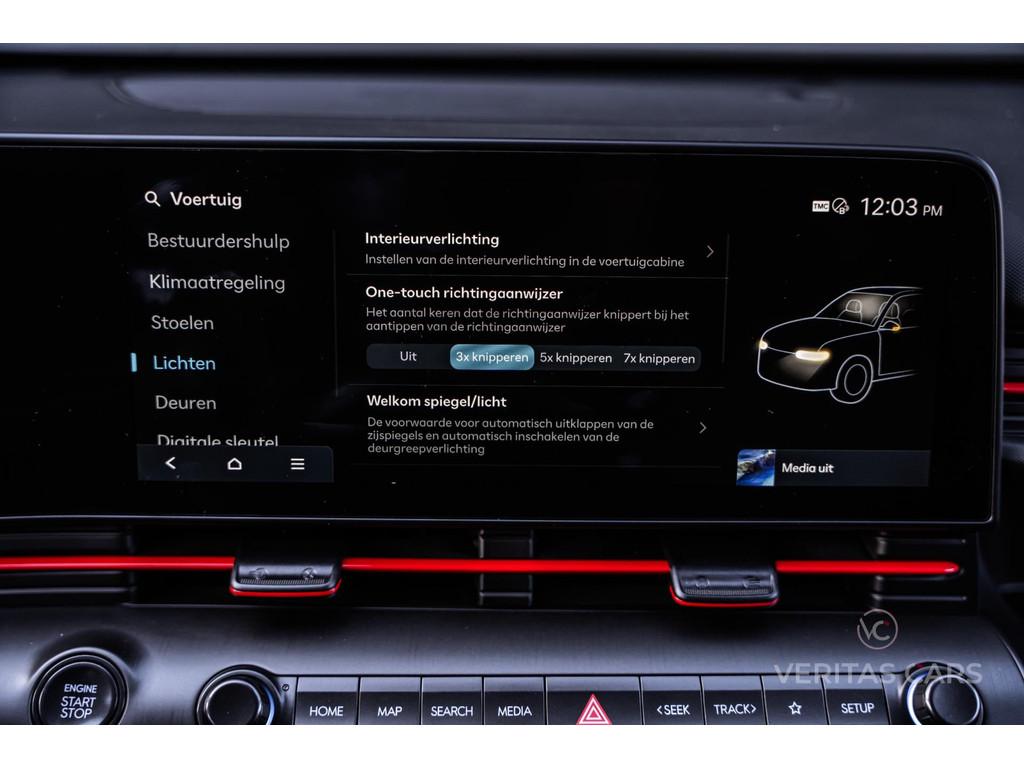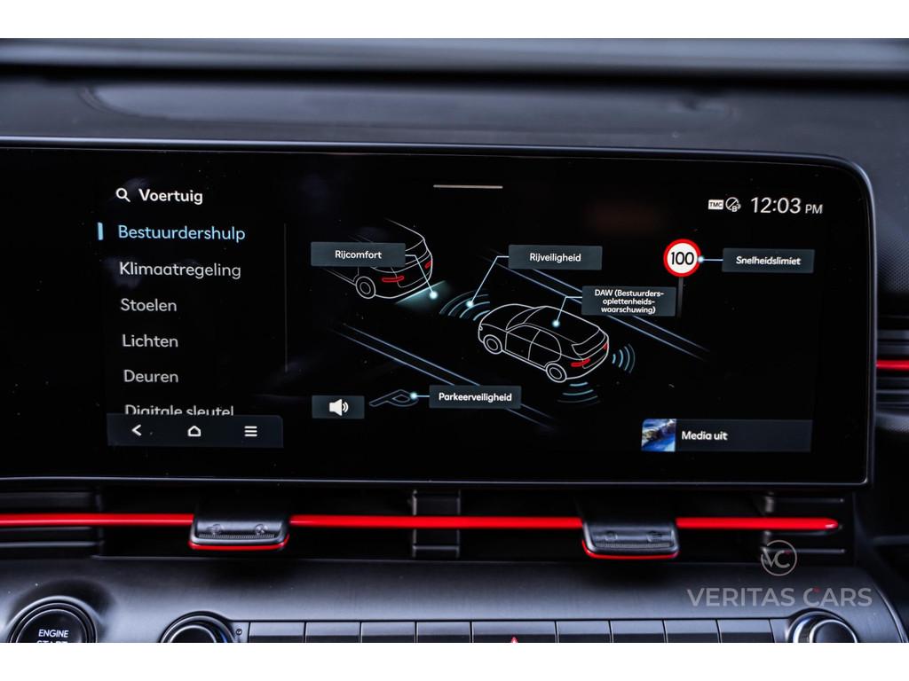 360° Camera, Achterbank in delen neerklapbaar, Achteruitrijcamera, Actieve Spoorassistent, Actieve afstandassistent, Actieve dodehoekassistent, Actieve remassistent, Actieve rijstrookwisselassistent, Actieve stuurassistent, Adaptive Cruise Control, Afstandwaarschuwing, Airbag, Airbag(s) side, Airbag(s) side voor, Airbag bestuurder, Airbag passagier, Airco automatisch, Alarmsysteem, Alcantara bekleding, Anti Blokkeer Systeem (ABS), Apple Carplay/Android Auto, Armsteun achter, Armsteun voor, Audio-navigatie full map, Audioinstallatie met CD-speler, Autotelefoonvoorbereiding, Autotelefoonvoorbereiding met Bluetooth, Binnenspiegel automatisch dimmend, Bluelink, Boordcomputer, Buitenspiegels elektrisch inklapbaar, Buitenspiegels elektrisch verstelbaar, Buitenspiegels in carrosseriekleur, Buitenspiegels verwarmbaar, Bumpers in carrosseriekleur, Camera intereur, Centrale deurvergrendeling, Centrale deurvergrendeling met afstandsbediening, Climate Control, Cruise control, DAW ( Driver Attention Warning ), Dakrails, Digital Key, Dodehoek Detectie, Draadloos Laadsysteem, Drive Mode, Dubbele airbag, Easy access stoel, Electronic Brake Distribution (EBD), Electronic Stability Program (ESP), Elektrische Achterklep, Elektrische Stoelen, Elektrische ramen, Elektronische climate control, Full Led koplampen, Getint glas, HDA ( Highway Driving Assist ), Hoofdsteunen achter, Hoofdsteunen voor, Keyless Start, Keyless entry, LED dagrijverlichting, Lederen bekleding, Lederen stuurwiel, Lichtmetalen velgen, Lichtmetalen velgen 18", Memory Stoelen, Metallic lak, Mistlampen, Mistlampen voor, Multimedia-voorbereiding, My Drive Mode, My Smartphone Key, N Line uitvoering, Navigatiesysteem, Offroad, Panoramadak, Parkeerhulp, Parkeersensor achter, Parkeersensor voor, Precrash-systeem, Radio CD-speler, Regensensor, Rijbaan alarm, Rijstrookveiligheid, SCC-reactue ( Smart Cruise Control ), Sfeerverlichting, Snelheidsassistent, Snelheidswaarschuwing, Sportstoelen, Stoelverwarming/-ventilatie, Stuurbekrachtiging, Stuurverwarming, Stuurwiel multifunctioneel, Toerenteller, Tractie Controle Systeem (TCS), Verkeerstekenherkenning, Verstelbare (in hoogte) bestuurders stoel, Verstelbare stuurkolom, Verwarmde voorstoelen, Waarschuwing frontale botsing, Waarschuwing verlaten rijstrook, Weergave adviessnelheid