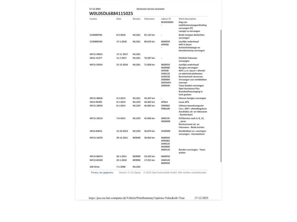VIN number W0L0SDL6884******