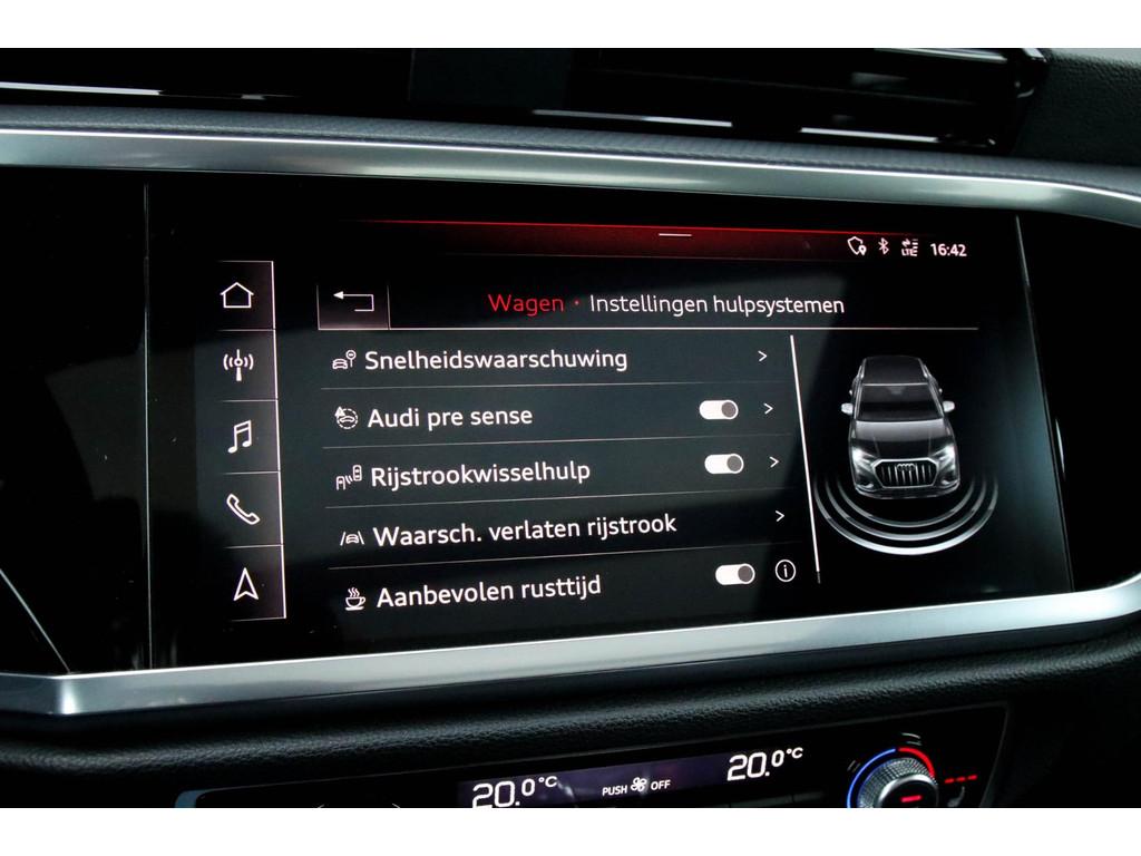 8 inch Navigatiesysteem, 18inch S-Line velgen, 18inch lichtmetalen velgen, 20inch RS velgen, 20inch S-line velgen, Accident Avoidance System, Achterbank in delen neerklapbaar, Active Info Display, Adaptieve verlichting, Airbag(s) hoofd achter, Airbag(s) hoofd voor, Airbag(s) side voor, Airbag bestuurder, Airbag passagier, Airconditioning, Aluminium delen exterieur, Aluminium interieur afwerking, Ambiance verlichting, Android Auto, Anti Blokkeer Systeem, Anti Blokkeer Systeem (ABS), App connect, Apple CarPlay, Armsteun voor, Assistentie Pakket, Attention Assist, Audi Drive Select, Audi Soundsystem, Audi active lane assist, Audio installatie, Audio installatie premium, Audi pre sense, Audi side assist, Automaat, Automatisch dimmende binnenspiegel, Automatische airconditioning, Autotelefoonvoorbereiding met Bluetooth, Bandenspanningscontrolesysteem, Bestuurdersstoel in hoogte verstelbaar, Binnenspiegel automatisch dimmend, Blind Spot Detection, Bluetooth, Boordcomputer, Bots herkenning en activatie, Bots waarschuwing systeem, Buitenspiegels elektrisch inklapbaar, Buitenspiegels elektrisch verstelbaar, Buitenspiegels verwarmbaar, Centrale deurvergrendeling met afstandsbediening, City Safe Drive, Climate Control, Climate Control Dual-Zone, Coming- / Leaving Home functie, Connected services, Cruise control, DAB+, DAB-ontvanger, Dakrails, Dealeronderhouden, Digitaal instrumentenpaneel, Dimlichten automatisch, Dodehoek detector, Dodehoeksensor, Draadloze telefoonlader, Dynamic Light Assist, Electronic Stability Program, Electronic Stability Program (ESP), Electronic climate controle, Elektrisch bedienbare achterklep, Elektrisch bedienbare achterklep met sensorsturing, Elektrische achterklep, Elektrische ramen, Elektrische ramen achter, Elektrische ramen voor, Elektrische ramen voor- & achterzijde, Elektrisch glazen panorama-dak, Elektrisch panoramisch schuif-/kanteldak, Elektrisch schuif-/kanteldak, Elektrisch verstelbare bestuurdersstoel, Elektrisch verstelbare voorstoel(en), Elektrisch verstelbare voorstoelen, Extra getint glas, File-assistent, Filehulp, Front Assist (Pre-Crash), Hill hold-functie, Inductief opladen telefoon QI, Klein lederpakket, Koplampen adaptief, LED-lichtpakket, LED dagrijverlichting, LED koplampen, LED koplampverlichting, LED mistlampen, LED verlichting interieur & exterieur, Lane Assist (Rijstrookbegeleiding), Lederen bekleding, Lederen interieur, Lederen stuur, Lederen stuurwiel, Lendesteunen (verstelbaar), Licht- & Regensensor, Lichtmetalen 20inch velgen, Lichtmetalen velgen, Lichtmetalen velgen 18", Lichtmetalen velgen 20", Metallic lak, Metallic zwart, Middenarmsteun, Multimedia-voorbereiding, Navigatie-systeem full map + hard disk, Navigatiesysteem, Night pakket, Panoramadak, Parkeer-assistent, Parkeer pakket, Parkeersensor achter, Parkeersensoren achterzijde, Parkeersensor voor, Passagiersstoel in hoogte verstelbaar, Privacy glas, RVS Instaplijsten, Radio-/CD-/USB-speler, Regensensor, Remassistent, Rijstrooksensor, S Line exterieur, Sfeerverlichting interieur, Side Assist, Soundsystem, Spiegelpakket - Elektrisch inklapbaar, Sportonderstel, Sportstuur, Stoelverwarming, Stuurbekrachtiging, Stuurhulp, Stuur verstelbaar, Stuurwielbediening, Stuurwiel multifunctioneel, Subwoofer, Telefoonintegratie, Variabele stuuroverbrenging, Verkeersbord detectie, Verkeersborden herkenning, Verkeersbordenherkenning, Virtual Cockpit, Volledig digitaal instrumentenpaneel, Voorstoelen verwarmd, Warmtewerend glas, Widescreen Cockpit, Xenon verlichting, Zwarte hemelbekleding, parkeer sensoren v+a