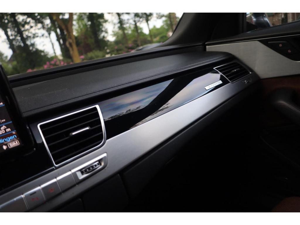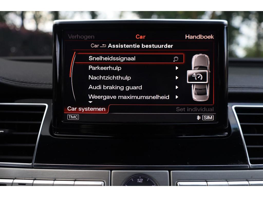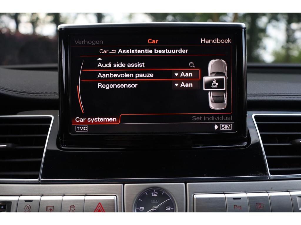 "Lichtmetalen velgen 21""", Achterbank verwarmd, Achteruitrijcamera, Airbag(s) hoofd achter, Airbag(s) hoofd voor, Airbag(s) side achter, Airbag(s) side voor, Airbag bestuurder, Airbag passagier, Airco automatisch, Alarm klasse 3, Aluminium interieur afwerking, Anti Blokkeer Systeem, Anti Blokkeer Systeem (ABS), Anti Slip Control, Audi Design Selection, Audio-navigatie full map, Audio installatie premium, Automatisch Sper Differentieel, Automatische niveauregeling, Autotelefoonvoorbereiding, Binnenspiegel automatisch dimmend, Boordcomputer, Brilliant kleur, Buitenspiegel(s) automatisch dimmend, Buitenspiegels elektrisch inklapbaar, Buitenspiegels elektrisch verstelbaar, Buitenspiegels verwarmbaar, Carbonafwerking interieur, Cruise control, Cruise control adaptief, DAB-ontvanger, DVD-wisselaar, Dimlichten automatisch, Dodehoek detector, Electronic Brake Distribution, Electronic Stability Program, Electronic Stability Program (ESP), Electronic climate controle, Elektrisch bedienbare achterklep, Elektrische ramen voor, Elektrisch glazen schuif-/kanteldak, Elektrisch schuif-/kanteldak met zonnepanelen, Elektrisch verstelbare stoel(en) met geheugen, Elektrisch zonnescherm achterruit, Elektronisch sperdifferentieel, Geluidsisolerend glas, Grootlicht-assistent, Halogeen mistlampen, Hoofdsteunen actief, Keyless entry, LED koplampen, Lederen bekleding, Lederen stuurwiel, Lendesteunen (verstelbaar), Luchtvering, Luxe lederen bekleding, Luxe lederen interieur, Metallic lak, Nachtzicht-assistent, Parkeersensor voor en achter, Regensensor, Rijstrooksensor, Rondomzicht camera, S Line exterieur, Schakelmogelijkheid aan stuurwiel, Speciale kleur, Sperdifferentieel, Start/stop systeem, Stoel ventilatie voor, Stuurwiel multifunctioneel, Tractie Controle Systeem (TCS), Variabele stuuroverbrenging, Veersysteem actief, Verkeersbord detectie, Voorstoel(en) met massagefunctie, Voorstoelen