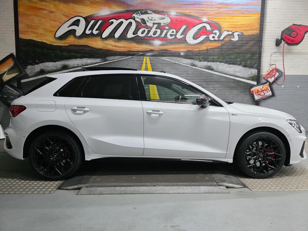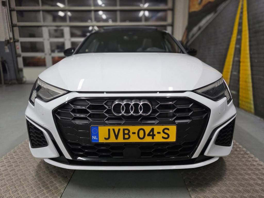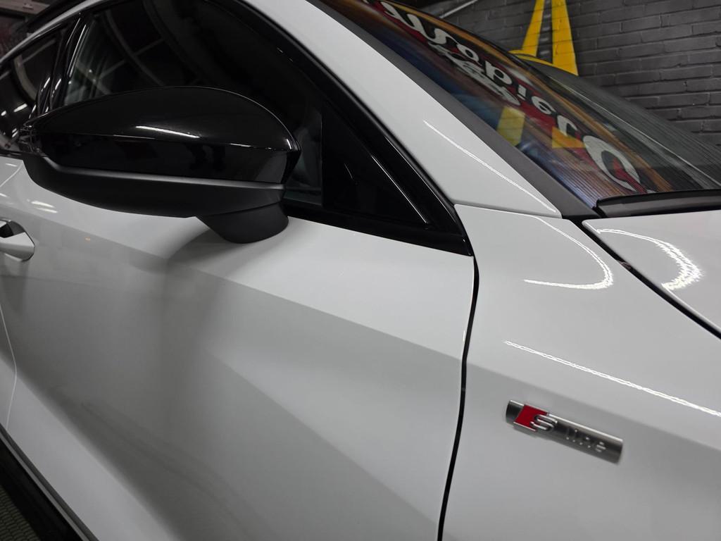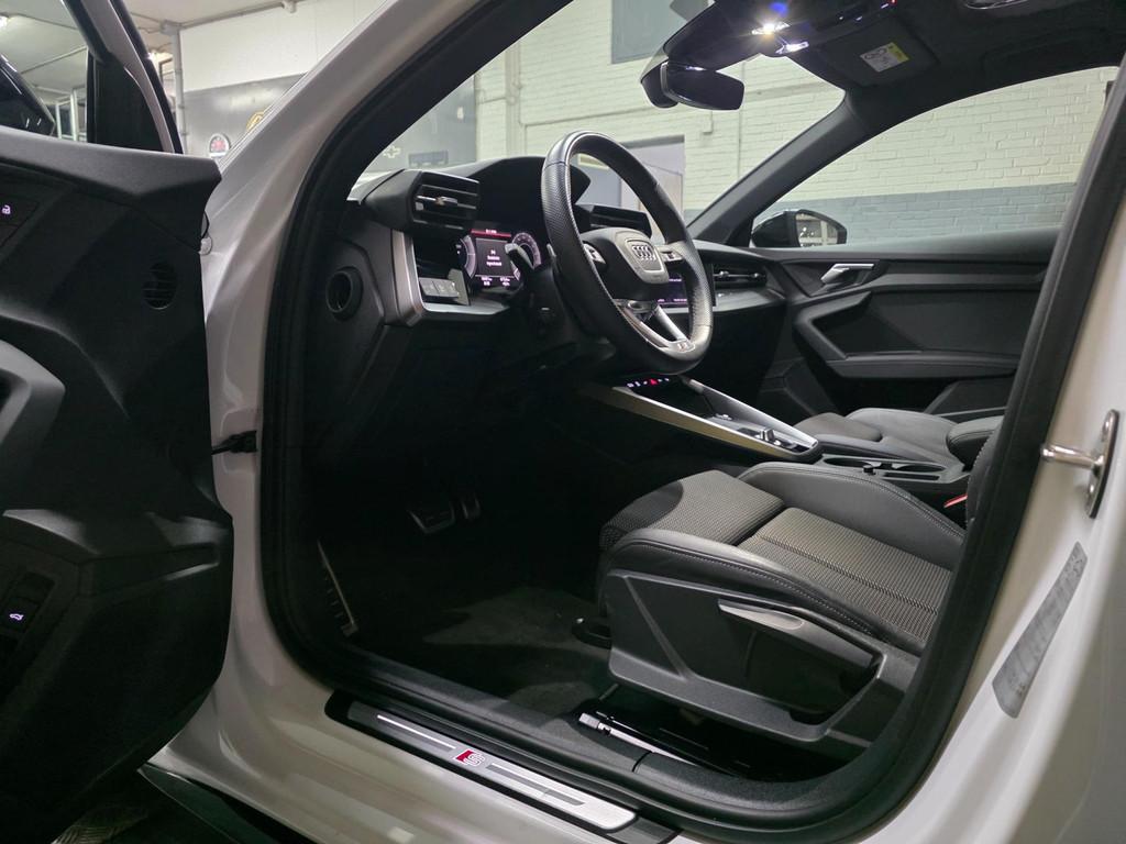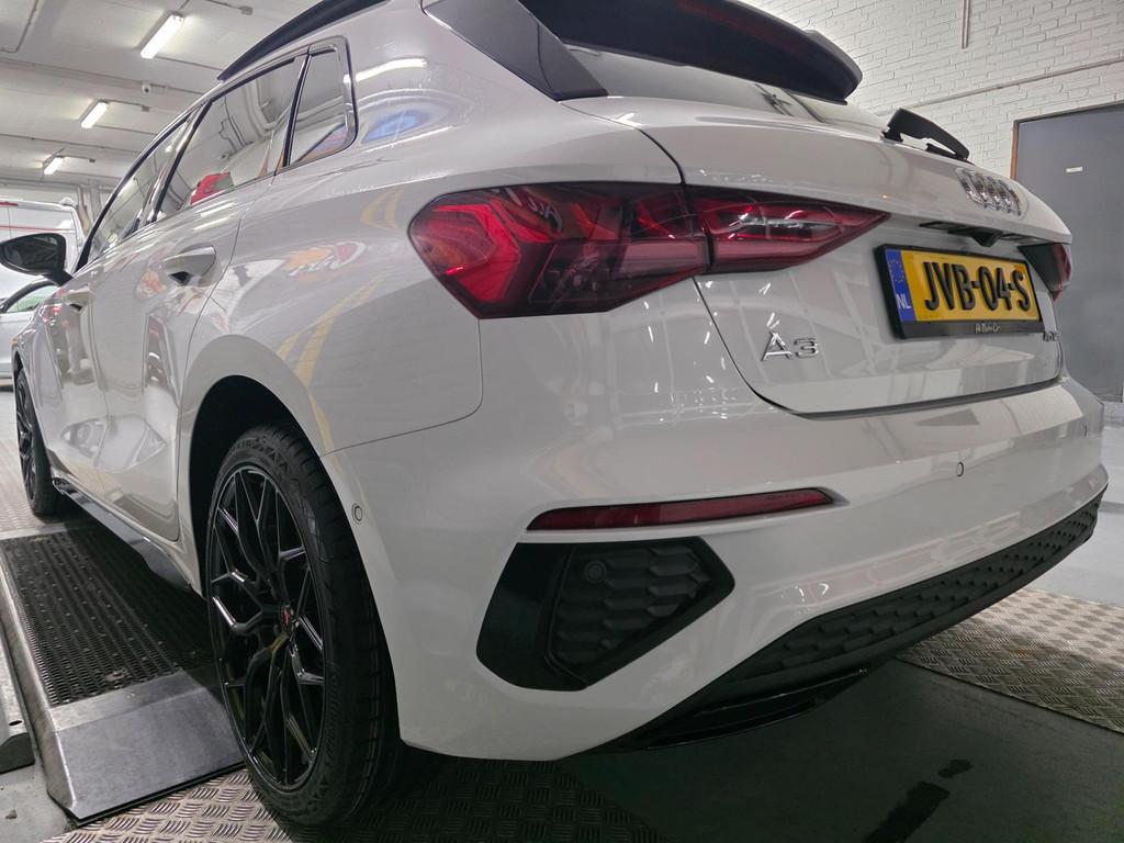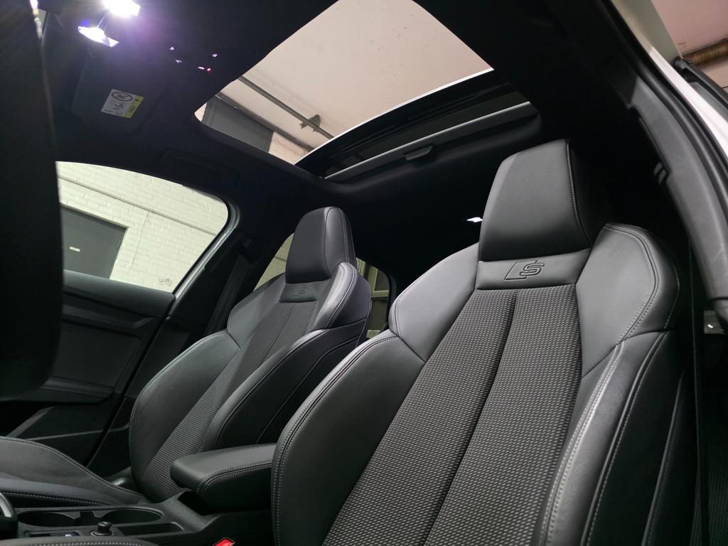 "Lichtmetalen velgen 18""", Accident Avoidance System, Achterbank in delen neerklapbaar, Achteruitrijcamera, Airbag(s) hoofd achter, Airbag(s) hoofd voor, Airbag(s) side voor, Airbag bestuurder, Airbag passagier, Aluminium interieur afwerking, Anti Blokkeer Systeem (ABS), Armsteun voor, Bandenspanningscontrolesysteem, Bestuurdersstoel in hoogte verstelbaar, Bots herkenning en activatie, Brake Assist System, Buitenspiegels elektrisch inklapbaar, Buitenspiegels elektrisch verstelbaar, Buitenspiegels verwarmbaar, Centrale deurvergrendeling met afstandsbediening, Connected services, Cruise control, Cruise control adaptief met Stop&Go, DAB-ontvanger, Dakspoiler, Dimlichten automatisch, Dodehoek detector, Draadloze telefoonlader, Electronic Brake Distribution (EBD), Electronic Stability Program (ESP), Electronic climate controle, Elektrisch glazen panorama-dak, Extra getint glas, Keyless entry, Keyless start, Kleur parelmoer, Kleur wit, Koplampen adaptief, Koplampreiniging, LED-lichtpakket, LED achterlichten, LED dagrijverlichting, Lederen stuurwiel, Matrix LED koplampen, Multimedia-voorbereiding, Navigatie full map, Oplaadmogelijkheid, Parkeer-assistent, Parkeer pakket, Parkeersensor achter, Parkeersensor voor, Passagiersstoel in hoogte verstelbaar, Radio, Regensensor, Rijstrooksensor, Rijstrooksensor met correctie, Ruitensproeiers verwarmbaar, S Line exterieur, Sportstoelen, Sportstuur, Start/stop systeem, Startblokkering, Stof/kunstlederen bekleding, Stuurbekrachtiging, Stuurhulp, Stuurwiel multifunctioneel, Telefoonintegratie premium, Tractie Controle Systeem (TCS), Uitwijk assistent, Verkeersbord detectie, Verwarmde voorstoelen, Volledig digitaal instrumentenpaneel, Warmtewerende voorruit, WiFi voorbereiding, Wis-/was installatie voor koplampen