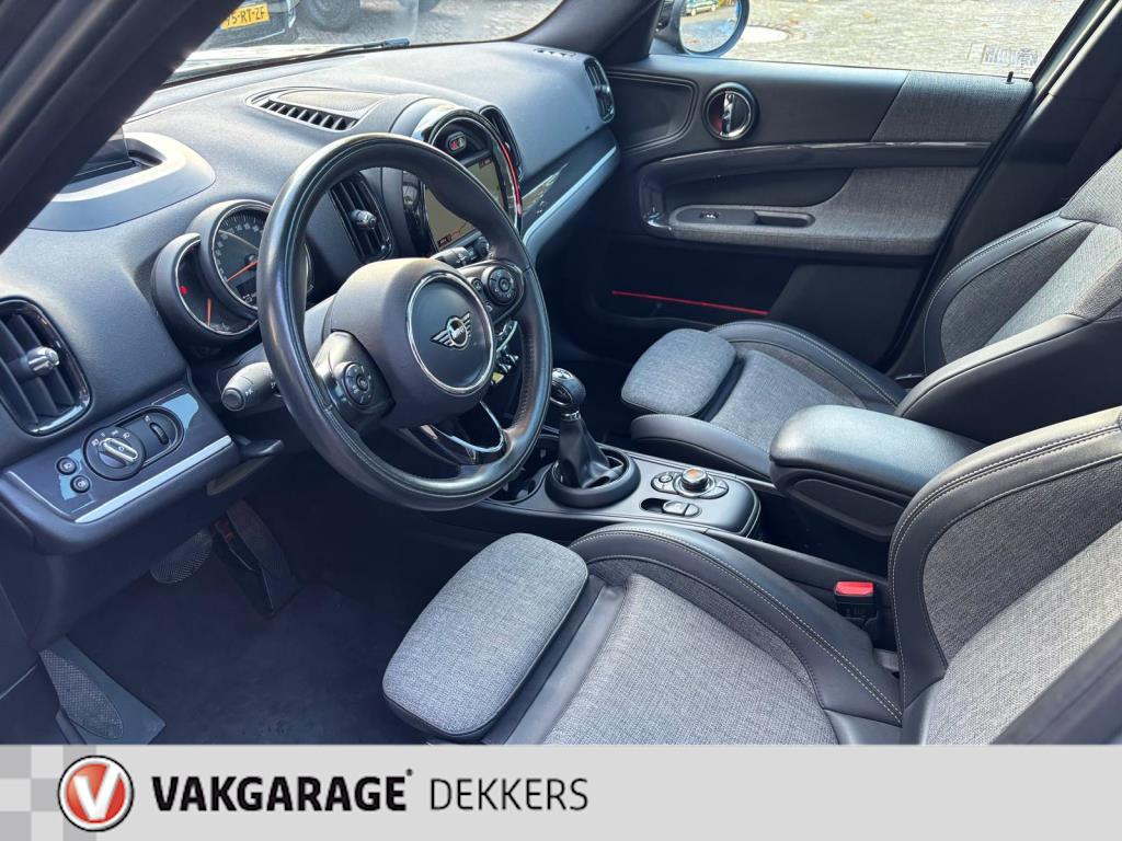 "Lichtmetalen velgen 18""", Achterbank in delen neerklapbaar, Achteropkomend verkeer waarschuwing, Achteruitrijcamera, Afwijkende dakkleur, Airbag(s) hoofd achter, Airbag(s) hoofd voor, Airbag(s) side voor, Airbag bestuurder, Airbag passagier, Airco automatisch, Alarm klasse 3, Anti Blokkeer Systeem (ABS), Apple Carplay, Armsteun voor, Audio installatie, Audio installatie premium, Autotelefoonvoorbereiding met Bluetooth, Bandenspanningscontrolesysteem, Bestuurdersstoel in hoogte verstelbaar, Binnenspiegel automatisch dimmend, Blow-By verwarmer, Boordcomputer, Buitenspiegel(s) automatisch dimmend, Buitenspiegels elektrisch inklapbaar, Buitenspiegels elektrisch verstelbaar, Buitenspiegels in carrosseriekleur, Buitenspiegels verwarmbaar, Business Plus-pakket, Chroom delen exterieur, Colour line Carbon Black, Connected services, Cruise control, Dakrails, Dakspoiler, Dimlichten automatisch, Draadloze telefoonlader, Electronic Brake Distribution (EBD), Electronic Stability Program (ESP), Elektrische ramen voor, Elektrisch glazen panorama-dak, Head-up display, Hill hold-functie, Hoogteverstelling bijrijdersstoel, Interieuroppervlak Hazy Grey, Keyless entry, Koplampen adaptief, LED koplampen, LED mistlampen, Lederen/stoffen bekleding, Lederen stuurwiel, Luxe kentekenplaten met opgelegde letters., MINI Excitement-pakket, Metallic lak, Mini Driving Modes, Multimedia-voorbereiding, Navigatie-systeem full map, Navigatie full map, Parkeer-assistent, Parkeersensor achter, Parkeersensor voor, Regensensor, Ruitensproeiers verwarmbaar, Sportstuur, Startblokkering, Stuurwiel multifunctioneel, Telefoonintegratie premium, Vermoeidheids herkenning, Verwarmde voorstoelen, sportstoelen