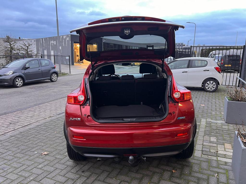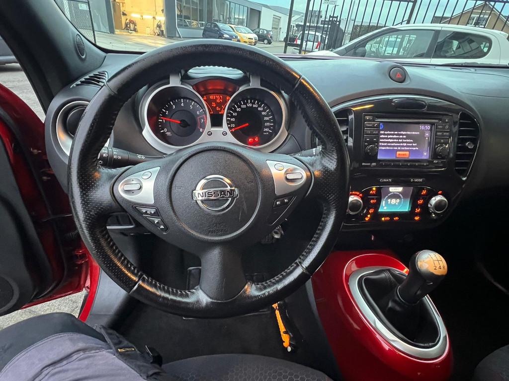 Bijzonderheden: Met een auto als deze Nissan Juke komt u absoluut goed voor de dag. De aandrijving van deze Nissan wordt verzorgd door een viercilinder motor en een handgeschakelde versnellingsbak. 'Boem is ho'? Niet met deze achteruitrijcamera. U ziet achter net zo goed als voor en krijgt een duidelijk geluidssignaal! Als u regelmatig met een aanhanger of een fietsendrager op pad bent, is de afneembare trekhaak een praktische extra. Een belangrijke veiligheidsvoorziening is de bediening van het audiosysteem en het navigatiesysteem via knoppen op het stuur. De automatische airconditioning zorgt voor een prettige binnentemperatuur. De cruise control zorgt voor een prettige, gelijkmatige koers en minder brandstofgebruik. De uitrusting van deze auto is met lederen stuur, centrale deurvergrendeling met afstandsbediening, boordcomputer en lederen versnellingspook behoorlijk compleet. Zoals u mag verwachten van deze Nissan Juke is hij uitgerust met een reeks aan actieve veiligheidssystemen. Brake assist herkent een noodsituatie en voert de remdruk op om de remweg te verkorten. Hebben we u nieuwsgierig gemaakt? Grijp dan uw kans en plan direct online een proefrit.