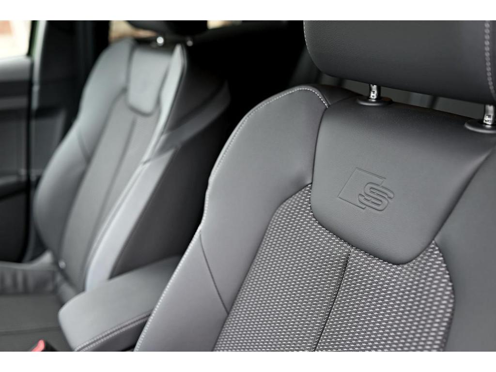 "Lichtmetalen velgen multi-spaaks 17""", Accident Avoidance System, Achterbank in delen neerklapbaar, Achteruitrijcamera, Actief koolfilter (geurfilter), Adaptief Demping Systeem (ADS), Afwijkende dakkleur, Airbag(s) hoofd voor, Airbag(s) side voor, Airbag bestuurder, Airbag passagier, Airco, Airco automatisch, Akoestische waarschuwing veiligheidsgordel, Anti Blokkeer Systeem (ABS), AppleCar play, Armsteun voor, Audi Drive Select, Audi Pre sense, Audio installatie, Automatische dimmende binnenspiegel, Automatische inschakeling voor rijverlichting, Automatische snelheidsbegrenzing, Autotelefoonvoorbereiding met Bluetooth, Bandenspanningscontrolesysteem, Binnenspiegel automatisch dimmend, Bots herkenning en activatie, Bots waarschuwing systeem, Brake Assist System, Buitenspiegels elektrisch inklapbaar, Buitenspiegels elektrisch verstelbaar, Buitenspiegels verwarmbaar, Buitenspiegels zwart, Centrale deurvergrendeling met afstandsbediening, Chroomdelen zwart, Connected drive, Connected services, Cruise control, DAB+, DAB-ontvanger, DYNAMIC SELECT, Dagrijverlichting, Dakspoiler, Dimlichten automatisch, Dodehoek detector, Dynamic-pakket, Electronic Brake Distribution (EBD), Electronic Stability Program (ESP), Elektrisch bedienbare ramen voor en achter, Elektrische ramen achter, Elektrische ramen voor, Elektronische remkrachtverdeling, Emergency Call, Extra getint glas, Grootlicht-assistent, Handleiding frans, Interieurhemel stof zwart, IsoFix, Keyless entry, Keyless start, Klimaatbediening, LED achterlichten, LED koplampen, LET OP: Navigatiesysteem dient nog te worden vrij geschakeld!, Lane Assist, Lederen sportstuur, Lederen stuurwiel, Lederen versnellingspook, Lichtassistent, MP3 audio, Metallic lak, Mistlamp achter, Multifunctioneel stuurwiel, Multimedia-voorbereiding, My Audi, Navigatiesysteem, Parkeer-assistent, Parkeersensor achter, Parkeersensor voor, Pianolak interieur afwerking, Radio, Regensensor, Rijstrooksensor met correctie, S Line exterieur, Sportonderstel, Sportstoelen, Sportstuur, Spraakbediening (LET OP: dient nog vrij geschakeld te worden), Start/stop, Start/stop systeem, Startblokkering, Stof/kunstlederen bekleding, Stuurbekrachtiging snelheidsafhankelijk, Stuurhulp, Stuur verstelbaar, Stuurwiel multifunctioneel, Telefoonintegratie, Telefoonintegratie premium, Touchscreen, Tractie Controle Systeem (TCS), Verkeersbord detectie, Verkeerstekenassistent, Vermoeidheids herkenning, Volledig digitaal instrumentenpaneel, Voorstoelen in hoogte verstelbaar, Warmtewerende voorruit, Zithoogteverstelling passagierzetel
