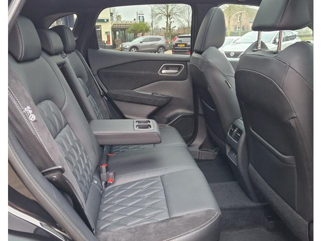 2x USB laadpoorten achter (1x type A, 1x type C), 2x USB laadpoorten voor, 3-punts veiligheidsgordels voor en achter, 9" NissanConnect Navigatie- en infotainmentsysteem, 12,3'' TFT digitaal instrumentenpaneel, 12V aansluitingen voor en in de bagageruimte, 20" diamant-geslepen lichtmetalen velgen met multi-Link ophanging, A-IVC Navigatie services, A-IVI NissanConnect Navigatiesysteem (9'' TFT touchscreen), ABS (Anti-blokkeersysteem), Achterbankleuning in delen neerklapbaar (60/40), Achteruitrijcamera met dynamische afstandsmarkering, Adaptive Front Lighting System (AFS), Alarmsysteem, Around View Monitor (AVM), Auto Speed Control Device (ASCD), Auto Speed Limit (ASL), Automatisch dimmende binnenspiegel, Automatische achterklep met voetsensor, Automatisch in- / uitschakelende koplampen, Back-up Collission intervention (BCI), Bandenreparatieset, Bandenspanningscontrolesysteem (TPMS), Bekerhouder achter (2x), Bekerhouder voor (2x), Blind Junction View (BJV), Blind Spot Warning & Intervention (BSW + BSI), Bluetooth® (telefoon en audio), Breakdown call, Buitenspiegelbehuizing en deurgrepen in carrosseriekleur, Buitenspiegels elektrisch inklapbaar, Buitenspiegels elektrisch verstelbaar en verwarmbaar, Centrale deurvergrendeling met afstandsbediening, Chromen raamomlijsting, Cross Traffic Alert (CTA), DRIVE ASSIST, Dakrails, Dakspoiler achter, Dashboard en deurpanelen leder (blauw), Digitale radio-ontvangst (DAB+), Draadloos Apple Carplay®, Draadloze smartphone oplader (15w), Drive modus functie (3 modi), Driver Attention Alert (DAA), EBD (Elektronische Remkrachtverdeler), ESP (Electronic Stability Program), Elektrische lendensteunverstelling voorstoelen (4-way), Elektrisch verstelbare bestuurdersstoel, Elektrisch verstelbare passagierstoel, Elektronische handrem, Elektronische stuurbekrachtiging, Emergency Stop Signal (Autohazard), Extra getint glas (achterste zijruiten en achterruit), Flexibele bagageruimte indeling (2 scheidingsplanken), Frontal Collision Warning (FCW), Gescheiden automatische airconditioning (2 zones), Gordelspanners en melding voor veiligheidsgordels, Haaienvin-antenne, Haken in de bagageruimte (4 op de bodem, 2 aan de zijkanten), Head-up display (10.8'' projectie), High Beam Assist (HBA), Hill Start Assist (HSA), Hill Start Assist + AutoHold functie, Hoedenplank, ISOFIX-bevestigingspunten achter (2x), In hoogte en diepte verstelbaar stuurwiel, Intelligent Cruise Control (ICC), Interieur ambianceverlichting uitgebreid (middenconsole en deuren), Interieurlijsten metaallook, LED achterlichten, LED achteruitrijlicht en knipperlicht achter, LED matrix koplampen met LED dagrijverlichting en geintegreerd knipperlicht, LED mistlampen voor, Lane Departure Warning & Prevention (LDW + LDP), Lane Side Support (LSS), Lichtsensor, Limited Slip Differential (LSD), Matzilver decoratiepaneel achterbumper, Metallic lak, Middenarmsteun achter met 2 bekerhouders, Middenarmsteun vóór met opbergvak, Middenconsole en armsteunen in PVC, Moving Object Detection (MOD), NBAS (Nissan Brake Assist System), Nappa volleder, gewatteerde stoelbekleding (zwart), Panoramisch glazen dak met elektrisch bedienbare zonwering, Parkeersensoren voor- en achterzijde, Portiergrepen met ontgrendelknop (Easy Access), Predictive Forward Collision Warning (PFCW), Predictive Front Emergency Braking met voetgangers- en fietsersherkenning (P-FEB), Premium BOSE® audiosysteem met 10 luidsprekers, Acoustimass® subwoofer en Apple Carplay® & Android, ProPILOT, Regensensor, START/STOP-systeem, Schakelflippers achter stuurwiel, Stuurwielbediening, Stuurwiel en versnellingspookknop met leder bekleed, Tankdeksel zonder dop, Traffic Sign Recognition (TSR), Vehicle Dynamic Control (VDC), Verlichting aan beide kanten in de bagageruimte, Verwarmbaar stuurwiel, Verwarmbare voorruit, Verwarmbare voorstoelen, Volledig automatische ruiten voor en achter met i-Key link, Voor-, zij- en gordijnairbags (uitschakelbare passagiersairbag), Voorstoelen met geheugenfunctie, Voorstoelen met massagefunctie, Zachte kniesteun (PVC), Zonnebrillenhouder in hemelbekleding, Zonnekleppen met make-up spiegel, Zonnekleppen met make-up spiegel, verlicht, Zwarte Hemelbekleding, eCall, i-Key (openen en sluiten zonder sleutel)