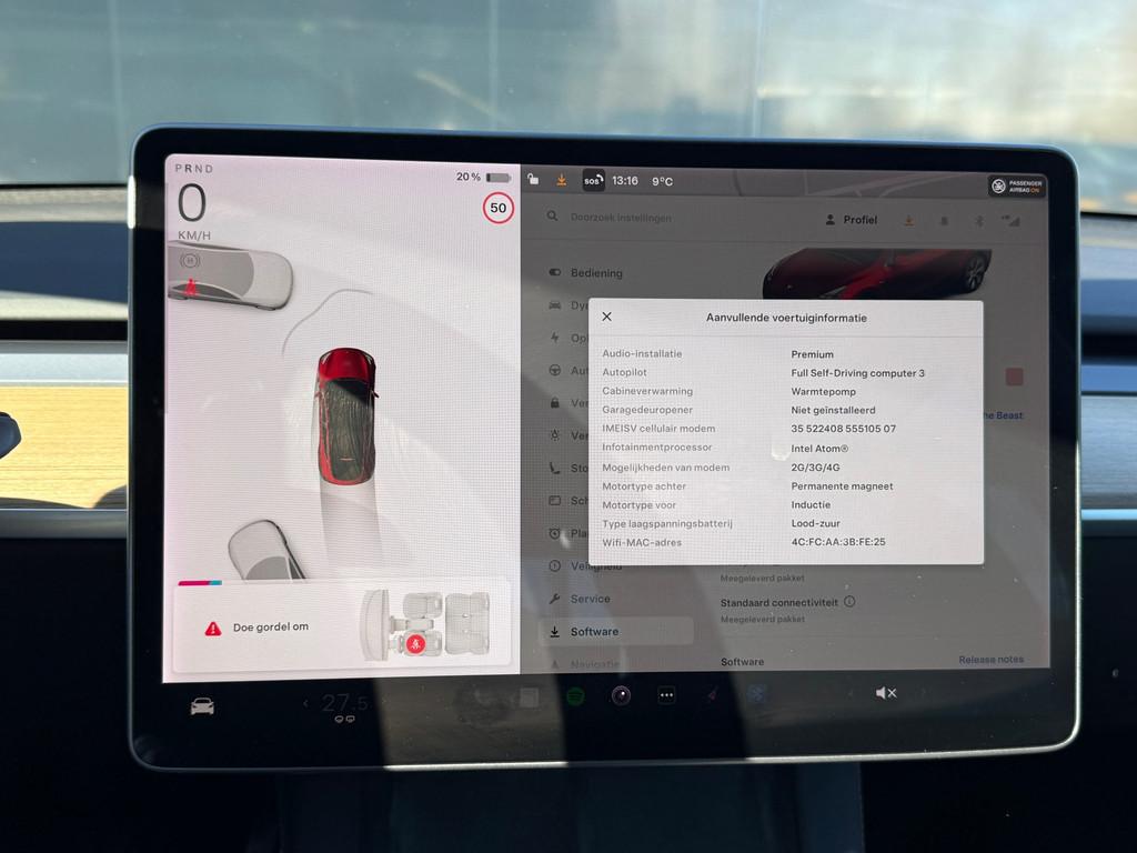 "Lichtmetalen velgen 19""", "Lichtmetalen velgen 20""", Accident Avoidance System, Achterbank verwarmd, Airbag(s) hoofd achter, Airbag(s) hoofd voor, Airbag(s) side voor, Airbag bestuurder, Airbag passagier, Anti Blokkeer Systeem (ABS), Audio installatie premium, Autonome parkeerfunctie, Autopilot, Autotelefoonvoorbereiding met Bluetooth, Buitenspiegel(s) automatisch dimmend, Buitenspiegels elektrisch inklapbaar, Buitenspiegels elektrisch met geheugen, Buitenspiegels verwarmbaar, Connected services, Cruise control adaptief met Stop&Go, Dodehoek detector, Electronic Stability Program (ESP), Electronic climate controle, Elektrisch verstelbare stoel(en) met geheugen, Elektrisch verstelbare stuurkolom met geheugen, Full Self-Driving Capability, Houtafwerking interieur, Keyless entry, Keyless start, LED mistlampen, Metaal-/micakleur, Metallic lak, Multimedia-voorbereiding, Navigatie, Navigatie full map, Navigatie via Apple Carplay, Oplaadmogelijkheid, Panoramadak, Parkeersensoren, Spraakbediening, Startblokkering, Tractie Controle Systeem (TCS), Verwarmde voorstoelen, Zelfstandige rijstrookwissel