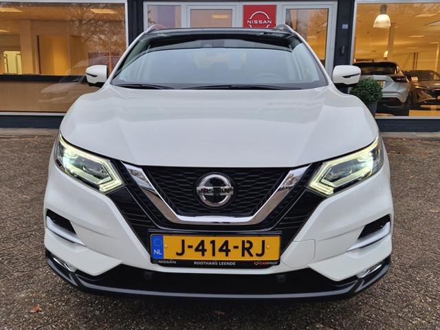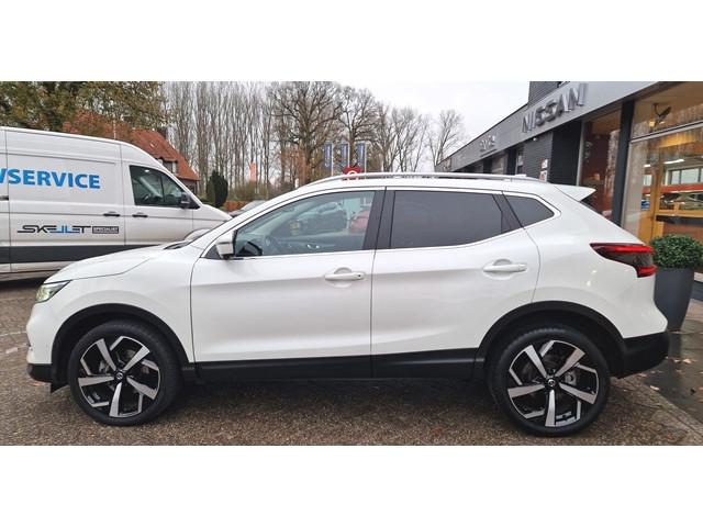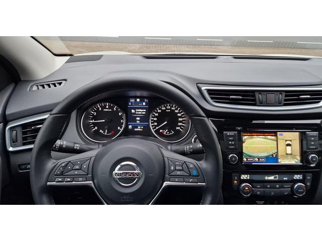 2 bekerhouders achter, 2 bekerhouders voor, 3-punts veiligheidsgordels achter, 3-punts veiligheidsgordels voor, 5'' Kleuren TFT instrumentenpaneel, 12V aansluiting, 19'' lichtmetalen velgen, ABS (Anti-blokkeersysteem), Achterbankleuning in delen neerklapbaar (60/40), Actieve hoofdsteunen voor, Adaptive Front Lighting System, Audiosysteem met CD-speler, USB-aansluiting, stuurwielbediening en 6 luidsprekers, Autohold functie, Automatisch dimmende binnenspiegel, Automatisch in-/uitschakelende koplampen, Automatisch inklapbare buitenspiegels, Bandenspanningscontrolesysteem, Bi LED koplampen, Bluetooth, Buitenspiegelkappen in carrosseriekleur, Centrale deurvergrendeling met afstandsbediening, Chassis Control Systeem (Active Trace Control, Active Ride Control, Xtronic Active Engine Brake), Chromen raam omlijsting, Cruise control en speedlimiter met stuurwielbediening, Detectie van bewegende objecten, Digital audio broadcasting (DAB+), Dynamische bochtenverlichting, EBD (elektronische remkrachtverdeler), ESP (Electronic Stability Program), Elektrisch bedienbare ramen voor en achter met sneltoetsen, Elektrisch verstelbare bestuurdersstoel, Elektrisch verstelbare en verwarmbare buitenspiegels, Elektronische parkeerrem, Elektronische stuurbekrachtiging, Extra getint glas (achterste zijramen en achterruit), Flexibele bagageruimte indeling, Gescheiden automatische airconditioning (2 zones), Gordijn airbags, Haaienvin-antenne, Half lederen bekleding, Hoofdsteunen achter, ISOFIX-bevestigingspunten achter (2), In hoogte en diepte verstelbaar stuurwiel, In hoogte verstelbare bestuurdersstoel, In hoogte verstelbare passagiersstoel, Intelligent Key met startknop, Intelligente parkeerassistent, Interieur ambiance verlichting, LED dagrijverlichting, LED dagrijverlichting met geïntegreerde knipperlichten, LED verlichting achter, Lederen stuurwiel en versnellingspookknop, Lendensteunverstelling voorstoelen, Metallic lak, Middenarmsteun achter, Middenarmsteun voor, Mistlampen voor, NBAS (Nissan Brake Assist), New NissanConnect infotainmentsysteem met navigatiesysteem, Nissan Around View Monitor, NissanConnect navigatie, Nissan safety shield, Panoramisch glazen dak, Parkeersensoren (voor/achter), Portiergrepen in carrosseriekleur, Pro-PILOT Adap-Cruise, ProPILOT Intelligent Parking System, Regensensor, Reparatiekit voor de banden, Startonderbreking, Uitschakelbare passagiersairbag, Verwarmbare voorstoelen, Verwarmde voorruit, Voor- en zijairbags, Voorstoelen met sportdesign en geïntegreerde hoofdsteunen, Zilverkleurige dakrails, Zilverkleurige stylingplaten achterbumper