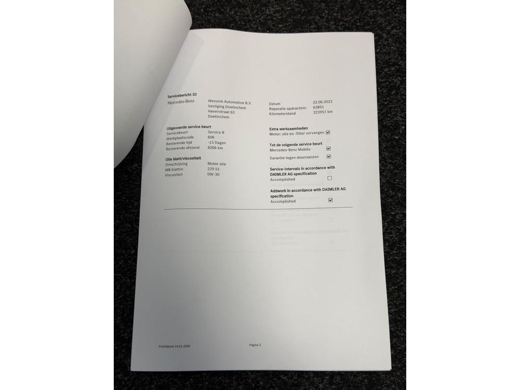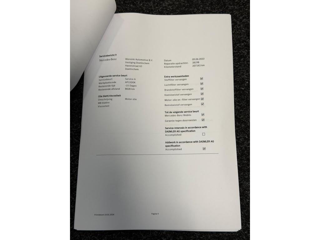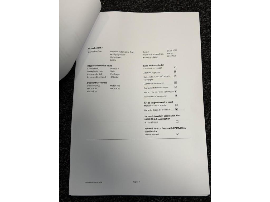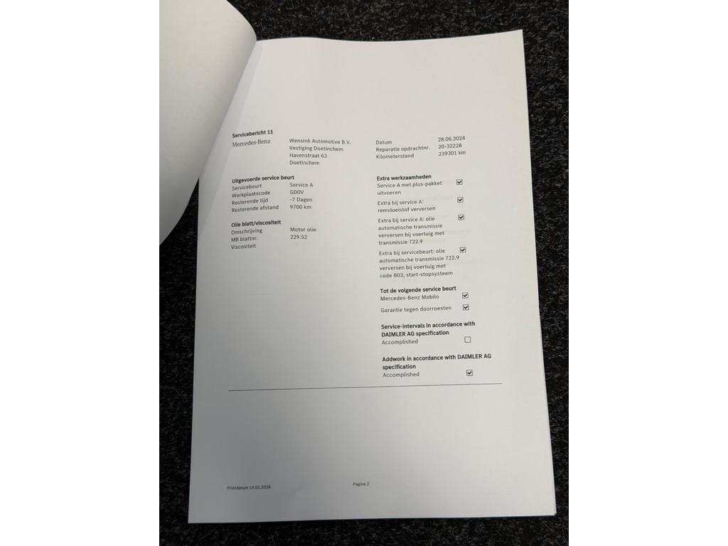 "Lichtmetalen velgen 16""", "Lichtmetalen velgen 18""", AMG-styling, Accident Avoidance System, Achteropkomend verkeer waarschuwing, Airbag(s) hoofd achter, Airbag(s) hoofd voor, Airbag(s) knie, Airbag(s) side voor, Airbag bestuurder, Airbag passagier, Airbags, Airco automatisch, Alarm, Alarm klasse 3, Anti Blokkeer Systeem, Anti Blokkeer Systeem (ABS), Armsteun voor, Assyst plus, Attention Assist, Audio installatie, Autotelefoonvoorbereiding met Bluetooth, Bandenspanningscontrolesysteem, Binnen/buitenspiegel automatisch dimmend, Buitenspiegels elektrisch inklapbaar, Buitenspiegels elektrisch verstelbaar, Buitenspiegels verwarmbaar, Centrale deurvergrendeling met afstandsbediening, Chroom delen exterieur, Comfortstoel(en), Connected services, Cruise control, Dakrails, Dimlichten automatisch, Dodehoek sensor, Electronic Stability Program, Electronic Stability Program (ESP), Electronic climate controle, Elektrisch bedienbare ramen, Elektrische ramen voor, Elektrisch verstelbare voorstoel(en), Grootlicht-assistent, Koplampen adaptief, LED dagrijverlichting, LED koplampen, Lederen bekleding, Metallic lak, Mistlampen, Multifunctioneel lederen stuurwiel, Multimedia-voorbereiding, Navigatie-systeem full map, Navigatie-systeem full map + hard disk, Navigatie full map + hard disk + DVD-wisselaar, Parkeer-assistent, Parkeersensor, Parkeersensor voor en achter, Regensensor, Rijstrooksensor, Spraaksysteem, Start/stop systeem, Stuurbekrachtiging snelheidsafhankelijk, Vermoeidheids herkenning, Voorstoelen verwarmd, Warmtewerend glas, aux, centrale deurvergrendeling, flippers, full-LED koplampen, isofix, multifunctioneel stuurwiel, parkeersensor achter, parkeersensor voor, stoelverwarming