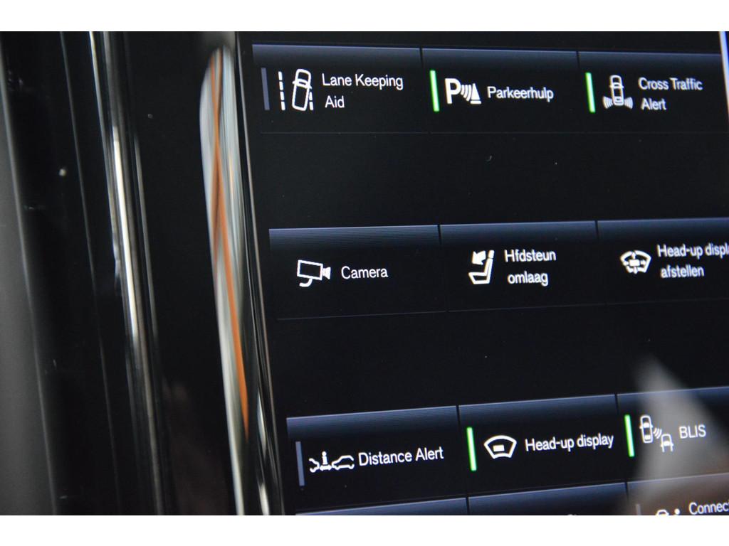 "Lichtmetalen velgen 19""", "Lichtmetalen velgen 22""", 360 gr Camera, Accident Avoidance System, Accukoeling, Accuverwarming, Achterbank in delen neerklapbaar, Achterbank verwarmd, Achteropkomend verkeer waarschuwing, Achteruitrij assistent, Achteruitrijcamera, Adaptive cruise control, Afdaal assistent, Airbag(s) hoofd achter, Airbag(s) hoofd voor, Airbag(s) knie, Airbag(s) side voor, Airbag bestuurder, Airbag passagier, Alarmsysteem, Aluminium interieur afwerking, Anti Blokkeer Systeem (ABS), Apple CarPlay, Armsteun achter, Armsteun voor, Audio & Park Assist Pack, Audio installatie, Audio installatie premium, Autotelefoonvoorbereiding met Bluetooth, Bagage-scheidingsnet, Bandenspanningscontrolesysteem, Binnenspiegel automatisch dimmend, Boordcomputer, Bots herkenning en activatie, Bots waarschuwing systeem, Brake Assist System, Buitenspiegel(s) automatisch dimmend, Buitenspiegels elektrisch inklapbaar, Buitenspiegels elektrisch verstelbaar, Buitenspiegels met verlichting, Buitenspiegels verwarmbaar, Chroom delen exterieur, Climate Pack, Climate Pro Pack, Connected services, Cruise control adaptief met Stop&Go, DAB-ontvanger, Dakrails, Dimlichten automatisch, Dodehoekdetectie met correctie, Draadloze telefoonlader, Electronic Brake Distribution (EBD), Electronic Stability Program (ESP), Electronic climate controle, Elektrisch bedienbare achterklep met sensorsturing, Elektrische ramen voor, Elektrisch glazen panorama-dak, Elektrisch verstelb. passagiersstoel met geheugen, Elektrisch verstelbare bestuurdersstoel met geheugen, Extra getint glas, Grootlicht-assistent, Head-up display, Hill hold-functie, Hoofdsteunen actief, Interieur voorverwarmingsinstallatie, Keyless Entry, Keyless entry, Keyless start, Koplampen adaptief, Koplampreiniging, Kruisend verkeer detectie, LED achterlichten, LED dagrijverlichting, LED koplampen, Lederen/stoffen bekleding, Lederen stuurwiel, Lederen versnellingspook, Lendesteunen (verstelbaar), Lighting Pack, Lounge Pack, Luxe lederen bekleding, Massage stoelen, Metallic lak, Multimedia-voorbereiding, Navigatie-systeem full map + hard disk, Oplaadmogelijkheid, Panoramadak, Park Assist Pack, Parkeersensor achter, Parkeersensoren voor, Parkeersensor voor, Premium kleur, R-Design exterieur, Regensensor, Rijstrooksensor met correctie, Rondomzicht camera, Side Impact Protection System, Sportonderstel, Sportstuur, Spraakbediening, Start/stop systeem, Startblokkering, Stoelen-pakket, Stoel ventilatie voor, Stuurhulp, Stuurverwarming, Stuurwiel multifunctioneel, Stuurwiel verwarmd, Telefoonintegratie premium, Tractie Controle Systeem (TCS), Trekhaak elektrisch uitklapbaar, Uitwijk assistent, Verkeersbord detectie, Vermoeidheids herkenning, Verwarmde voorstoelen, Volledig digitaal instrumentenpaneel, Volvo on Call, Voorstoelen in hoogte verstelbaar, Voorstoelen verwarmd, WiFi voorbereiding, Wis-/was installatie voor koplampen, achteruitrij camera, elektrisch verstelbare bestuurdersstoel, standkachel, stoelverwarming, trekhaak, verwarmbaar stuurwiel