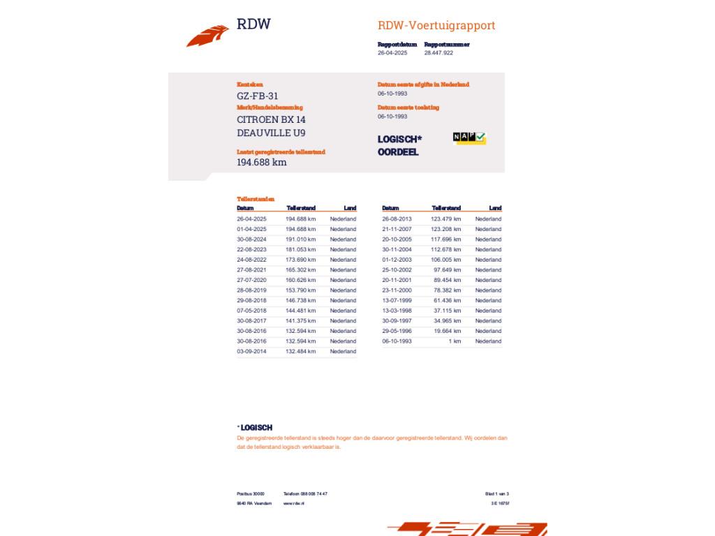 Mileage 194.688 NAP checked