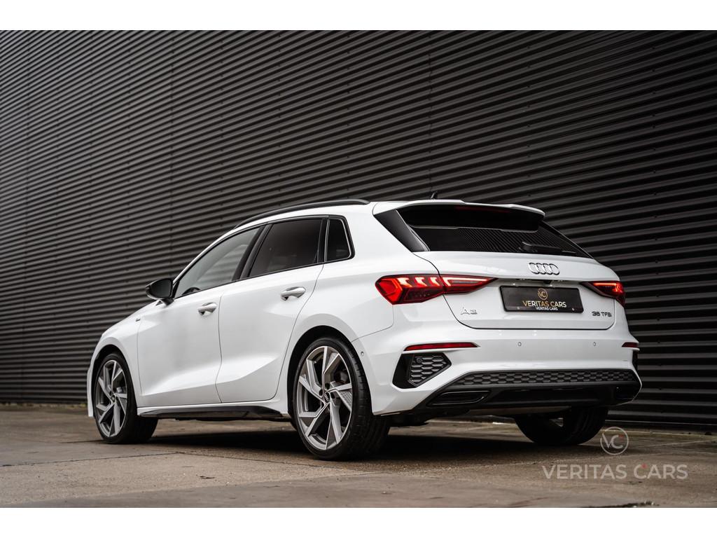 "Lichtmetalen velgen 16""", Accident Avoidance System, Achterbank in delen neerklapbaar, Achteruitrijcamera, Actieve Spoorassistent, Actieve afstandassistent, Actieve dodehoekassistent, Actieve remassistent, Actieve rijstrookwisselassistent, Adaptieve LEd koplampen, Afstandwaarschuwing, Airbag(s) hoofd achter, Airbag(s) hoofd voor, Airbag(s) side achter, Airbag(s) side voor, Airbag bestuurder, Airbag passagier, Alarmsysteem, Aluminium interieur afwerking, Anti Blokkeer Systeem (ABS), Armsteun achter, Armsteun voor, Audio installatie, Audi pre sense, Bandenspanningscontrolesysteem, Bestuurdersstoel in hoogte verstelbaar, Binnenspiegel automatisch dimmend, Bluetooth telefoonvoorbereiding, Bots herkenning en activatie, Brake Assist System, Buitenspiegel(s) automatisch dimmend, Buitenspiegels elektrisch inklapbaar, Buitenspiegels elektrisch verstelbaar, Buitenspiegels in carrosseriekleur, Buitenspiegels verwarmbaar, CarPlay, Centrale deurvergrendeling met afstandsbediening, Climate Control, Connected services, Cruise control, Cruise control adaptief met Stop&Go, DAB-ontvanger, Dakrails, Dakspoiler, Dimlichten automatisch, Dodehoek Detectie, Dodehoek detector, Draadloos opladen, Draadloze telefoonlader, Electronic Brake Distribution (EBD), Electronic Stability Program (ESP), Electronic climate controle, Elektrisch bedienbare achterklep met sensorsturing, Elektrische Achterklep, Extra getint glas, Full Led koplampen, Geluidwerend glas, Grootlicht-assistent, Keyless Start, Keyless entry, Keyless start, Kleur wit, Koplampen adaptief, LED achterlichten, LED dagrijverlichting, LED koplampen, Lederen bekleding, Lederen stuurwiel, Lendesteunen (verstelbaar), Lichtmetalen velgen 19", Metallic lak, Multimedia-voorbereiding, NAP, Navigatie full map, Park assist, Parkeer-assistent, Parkeersensor achter, Parkeersensor voor, Passagiersstoel in hoogte verstelbaar, Radio, Regensensor, Rijbaan alarm, Rijstrooksensor, Ruitensproeiers verwarmbaar, S-Line, Snelheidswaarschuwing, Sportstuur, Start/stop systeem, Startblokkering, Stoelverwarming, Stuurbekrachtiging, Stuurhulp, Stuurwiel multifunctioneel, Telefoonintegratie premium, Tractie Controle Systeem (TCS), Uitwijk assistent, Verkeersbord detectie, Vermoeidheidsherkenning, Verwarmde voorstoelen, Virtual Cockpit, Waarschuwing verlaten rijstrook, Warmtewerende voorruit