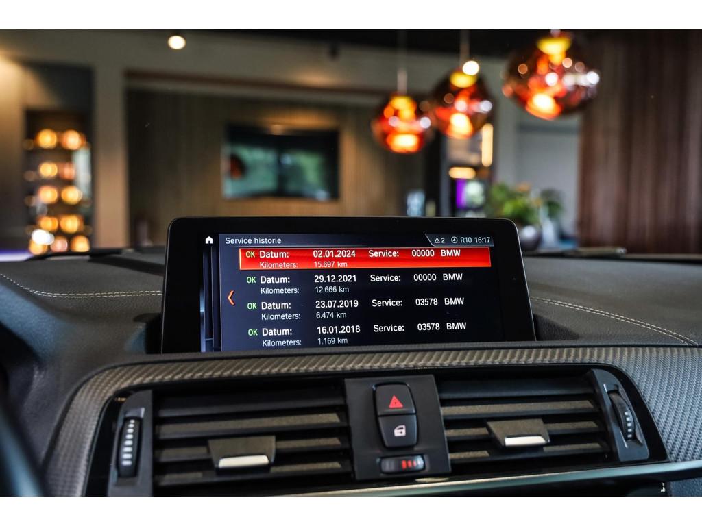 19 Inch BMW LA wheel M Double Spoke 437 jet black, Achterbank in delen neerklapbaar, Achteropkomend verkeer waarschuwing, Achteruitrijcamera, Adaptive LED Koplampen, Airbag(s) hoofd achter, Airbag(s) hoofd voor, Airbag(s) side voor, Airbag bestuurder, Airbag passagier, Alarm klasse 3, Anti Blokkeer Systeem (ABS), Audiobediening op het stuurwiel, Audio installatie premium, Automatische koplampactivering / Lichtsensor, Autotelefoonvoorbereiding met Bluetooth, BMW Intelligent Emergency SOS Call, BMW Teleservices, Bandenspanningscontrolesysteem, Beglazing achter verduisterd, Bekerhouders, Bestuurdersinformatiesysteem, Binnenspiegel automatisch dimmend, Blow-By heater, Bots herkenning en activatie, Bots waarschuwing systeem, Brake Assist System, Buitenspiegel(s) automatisch dimmend, Buitenspiegels elektrisch verstelbaar, Buitenspiegels inklapbaar, Buitenspiegels verwarmbaar, CD-/DVD player, Carbon inlegstukken interieur, Centrale deurvergrendeling met afstandsbediening, Comfort Access (openen en starten zonder sleutel), Comfort middenarmsteun met opbergmogelijkheid, Connected Drive Services, Connected services, Contrast Stitching, Cruise control, DAB-ontvanger, Diefstalbeveiligingspakket - Alarm klasse 3, Doorlaadsysteem, Draadloze telefoonlader, Driving Assistant, Electronic Stability Program (ESP), Electronic climate controle, Elektrische ramen voor, Elektrisch glazen schuif-/kanteldak, Elektrisch verstelbare lendesteunen, Elektrisch verstelbare stoel(en) met geheugen, Extra getint glas, Grootlicht-assistent, Harman/Kardon Surround Sound System, Hill hold-functie, Hogedruk koplampreinigingssysteem, Hoogglans Shadow Line, Instaplijsten met "M" opschrift, LED achterlichten, LED dagrijverlichting, Lederen bekleding, Lichtpakket, Logo projectie d.m.v. spiegels, M-DCT Drivelogic, M-Veiligheidsgordels, M Sport lederen stuurwiel, Metallic lak, Mist achterlicht, Multimedia-voorbereiding, Navigatie-systeem full map + hard disk, Navigation systeem Professional, Niet-Rokers-Uitvoering, Opberg Pakket, Parkeersensor achter, Portierarmsteunen in leder met stiksels, Radio-CD/MP3 speler, Real Time Traffic Information, Regelbare dashboardverlichting, Regensensor, Rijstrooksensor, Ruitensproeiers verwarmbaar, Sportonderstel, Sportstoelen, Sportstoelen met verlengbaar zitvlak, Spraakbediening, Stability en Traction Control, Start/stop systeem, Stuurbekrachtiging snelheidsafhankelijk, Telefoonintegratie premium, Variabele stuuroverbrenging, Verkeersbord detectie, Verstelbaar stuurwiel met F1-schakeling, Verwarmde voorstoelen, Vloermatten - Velours, Volautomatische comfort airconditioning, Voorstoelen in hoogte verstelbaar, WiFi voorbereiding, Zilveren armaturen verwerkt in het dashboard, Zonnenkleppen met spiegel (verlicht), Zwart stoffen hemelbekleding